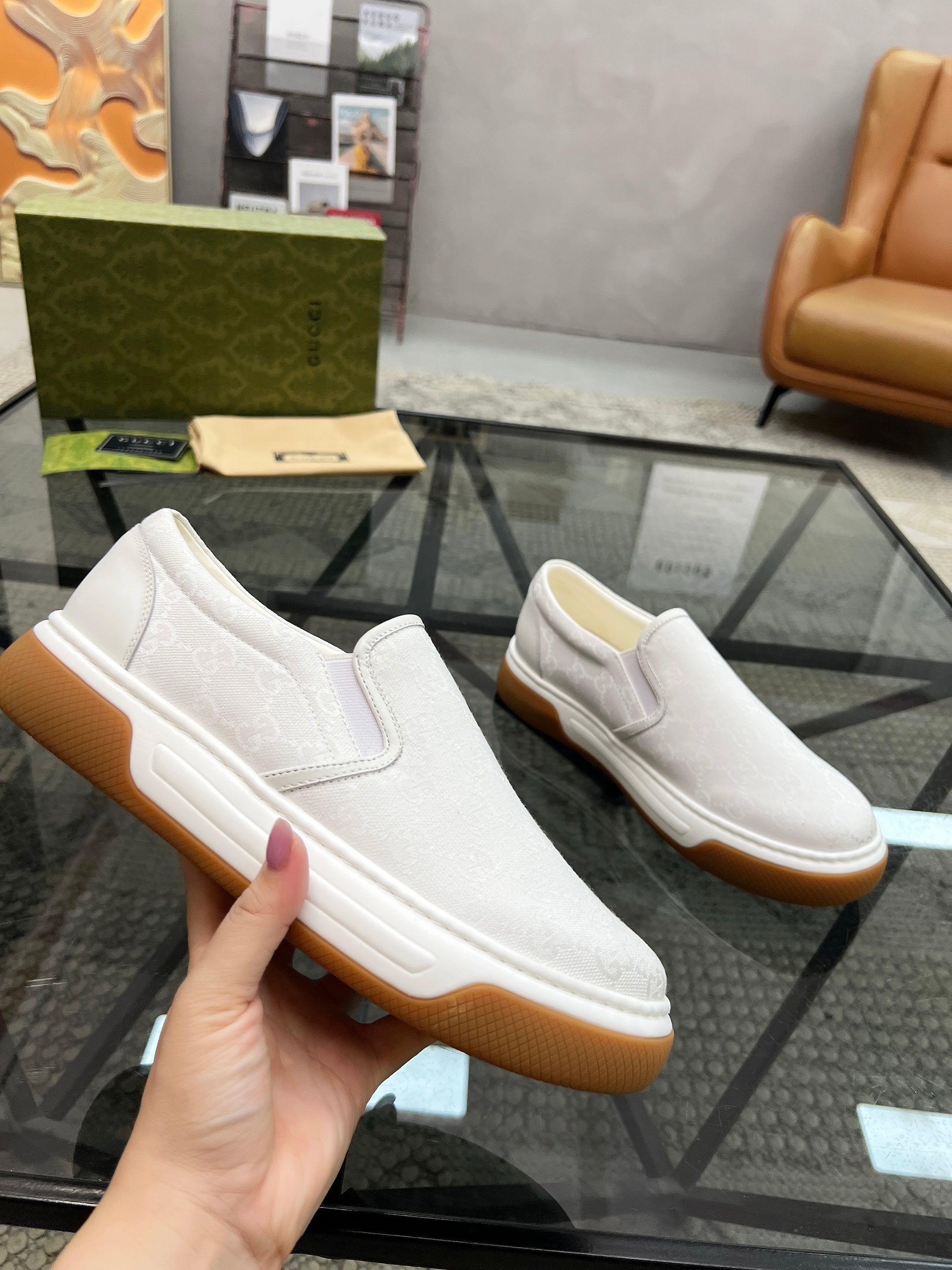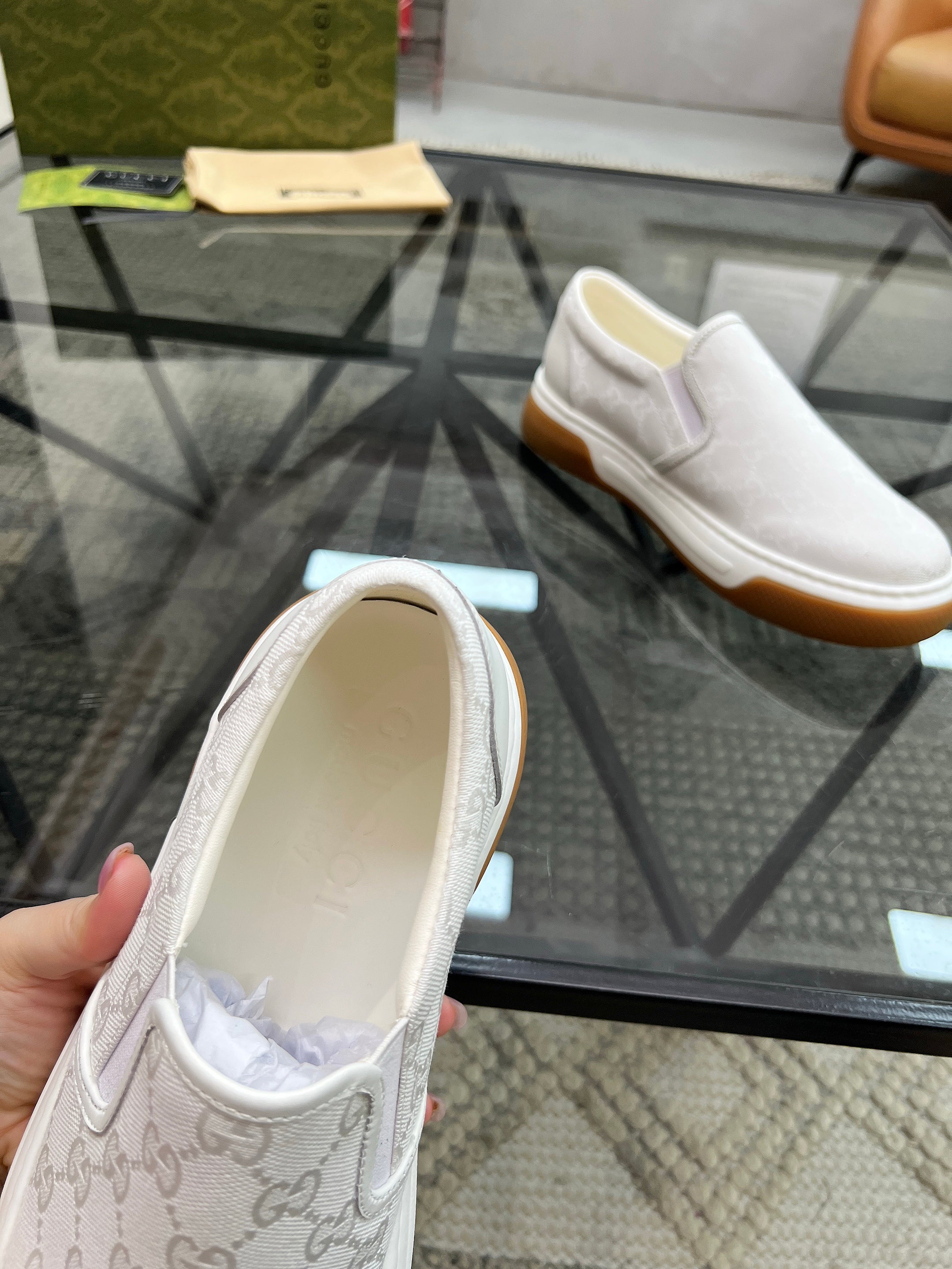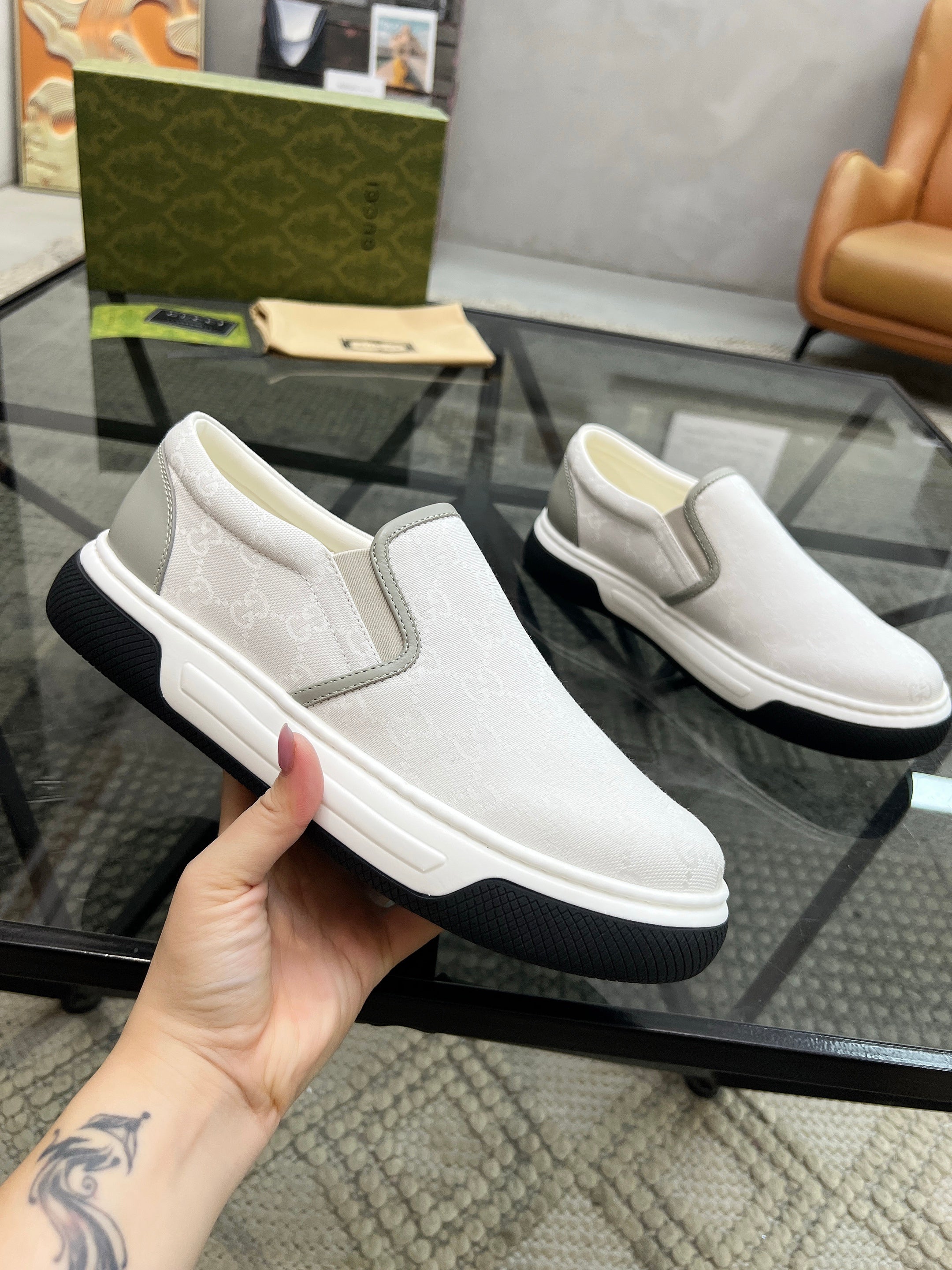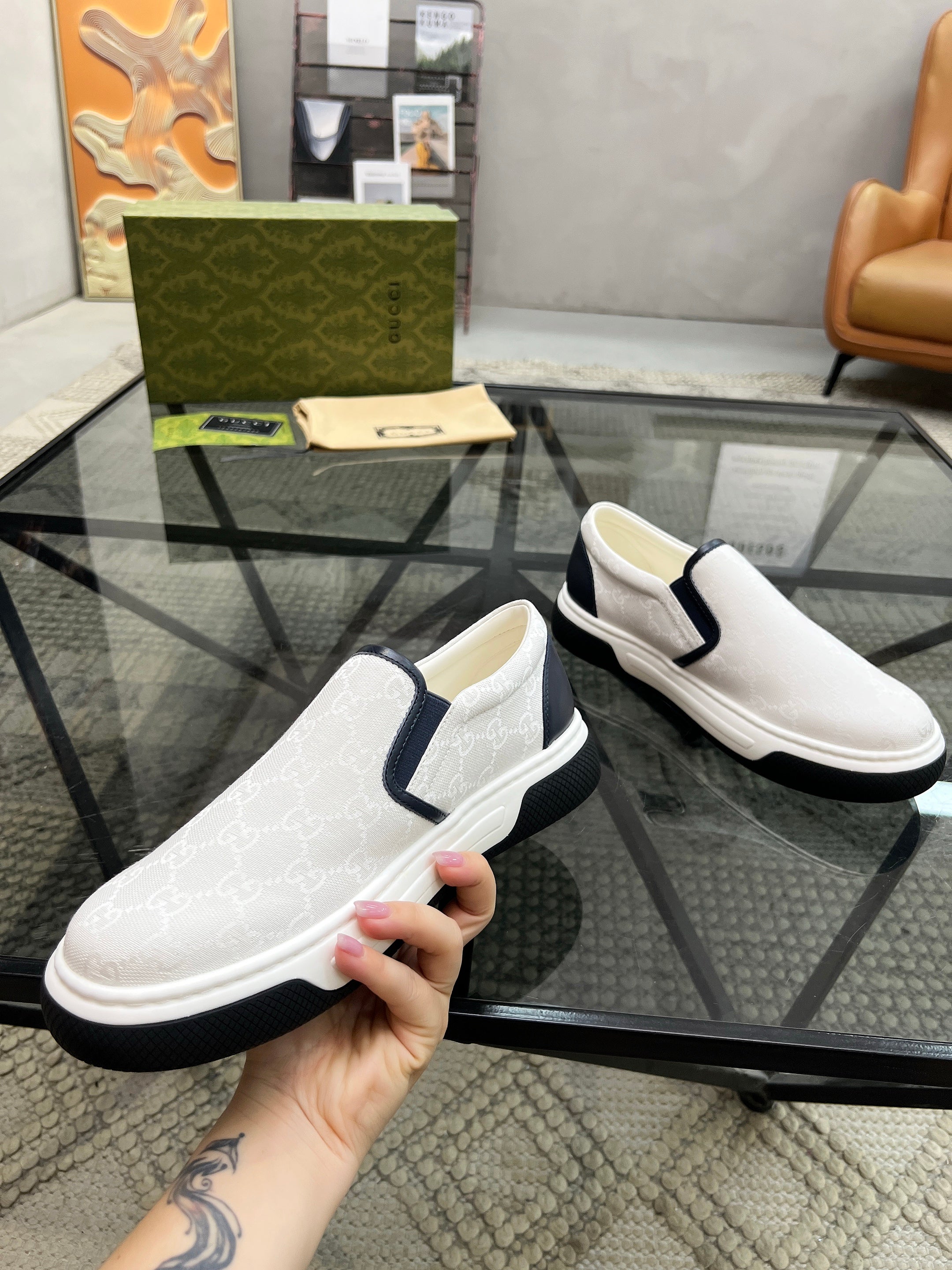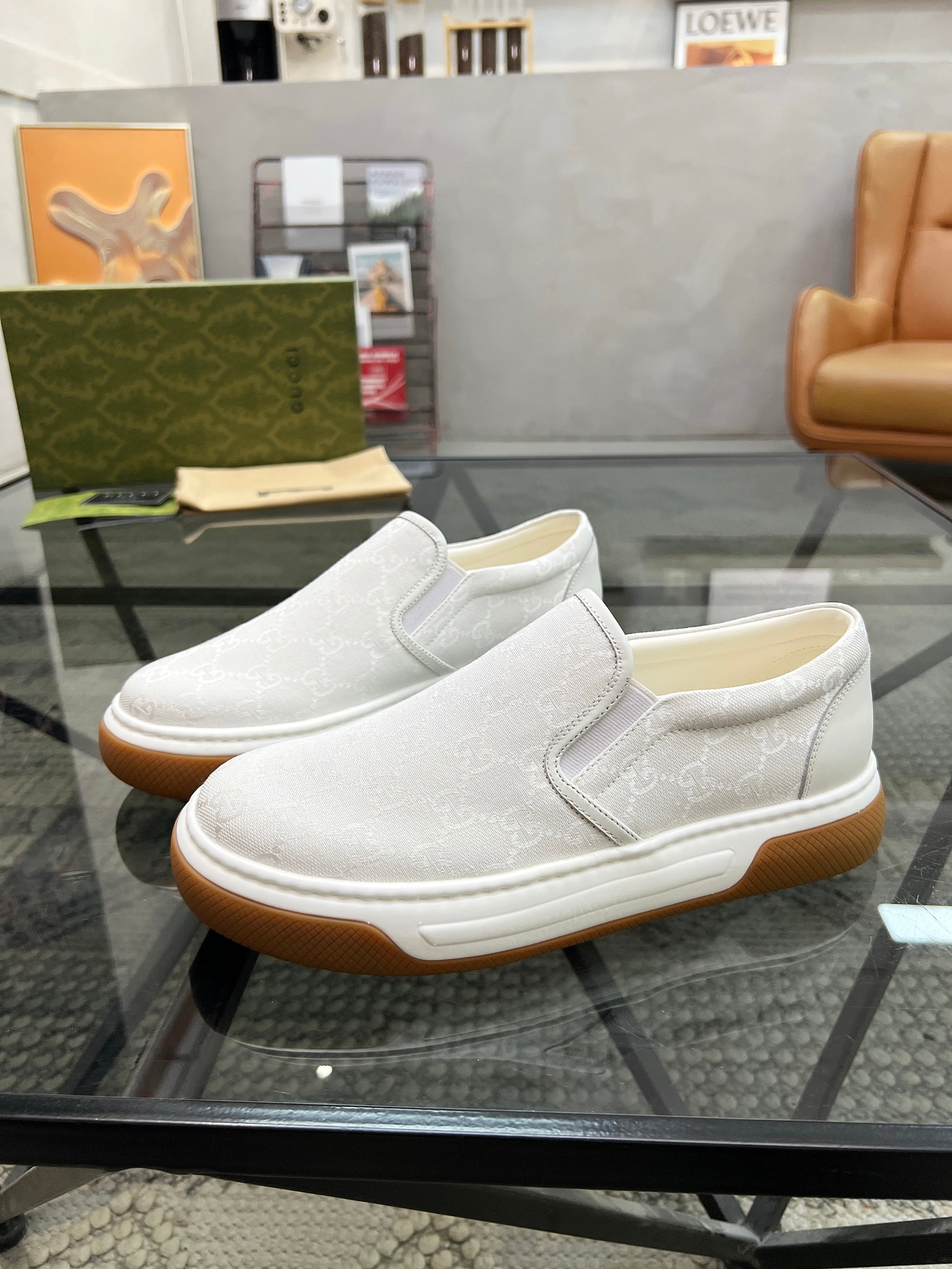 GG Men's Slip on Loafer White Printed Fabric 721530