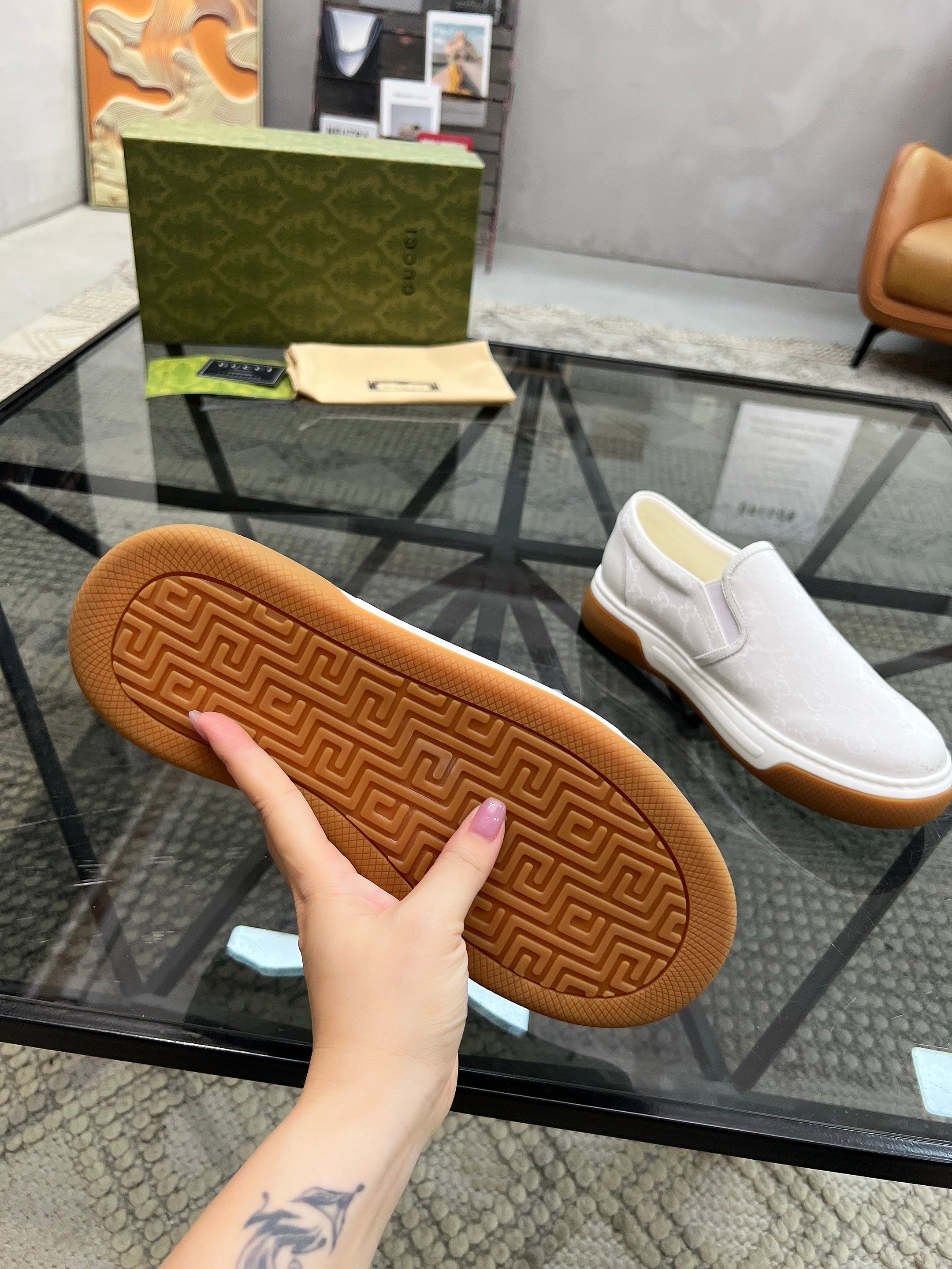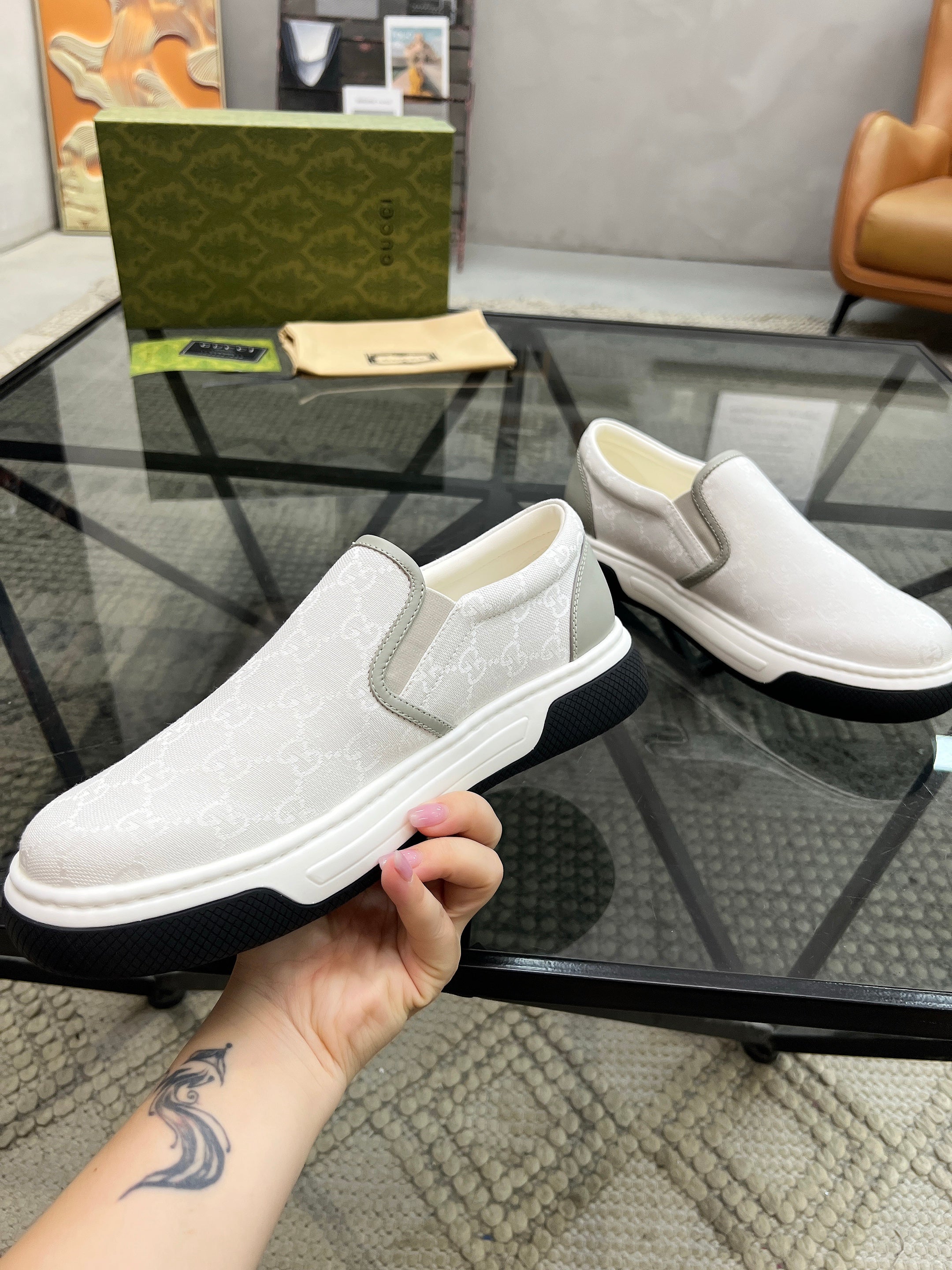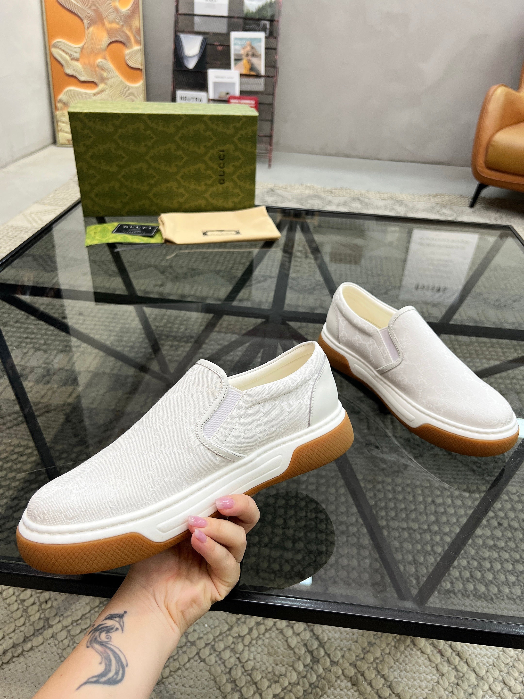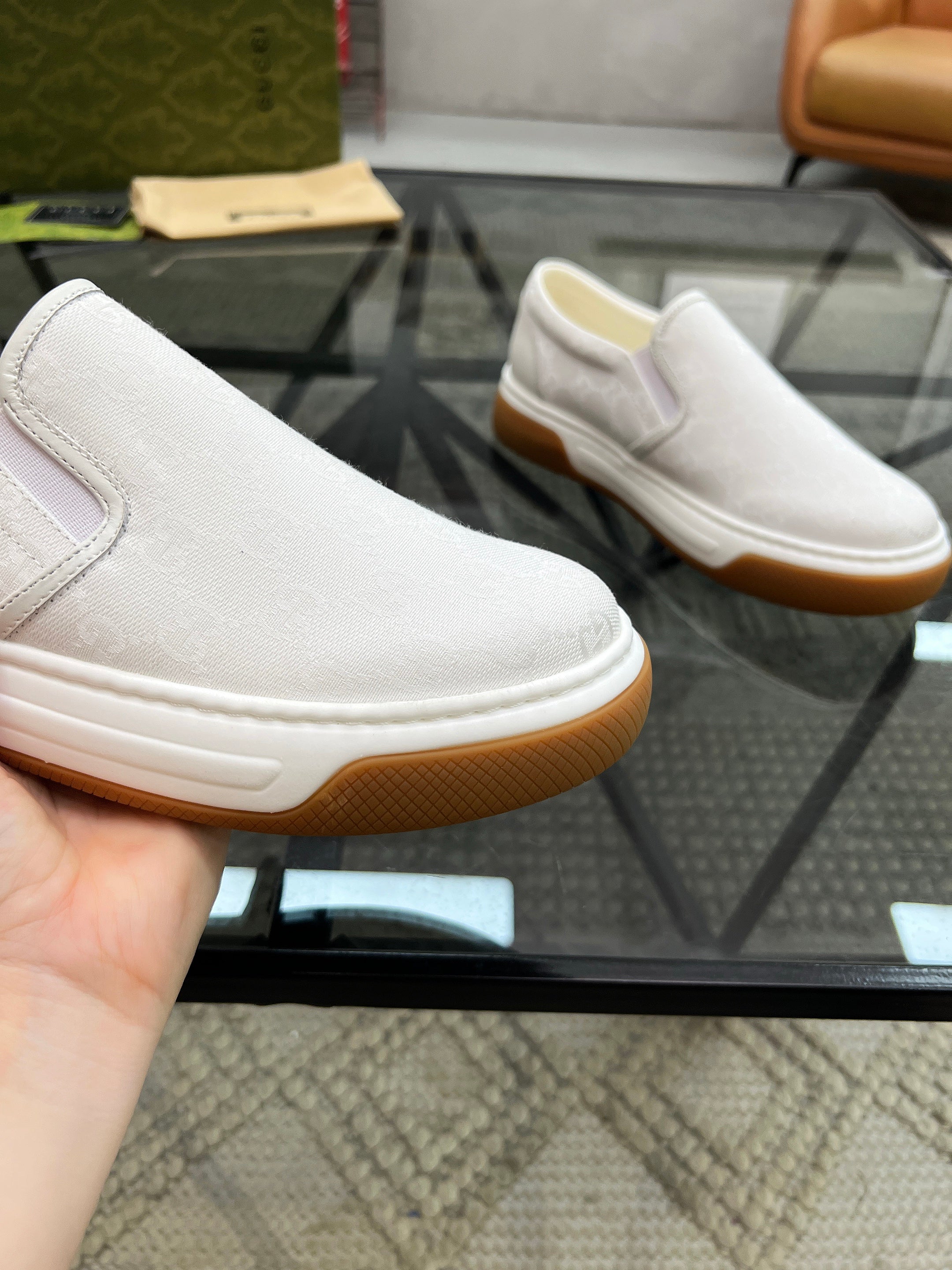 GG Men's Slip on Loafer White Printed Fabric 721530