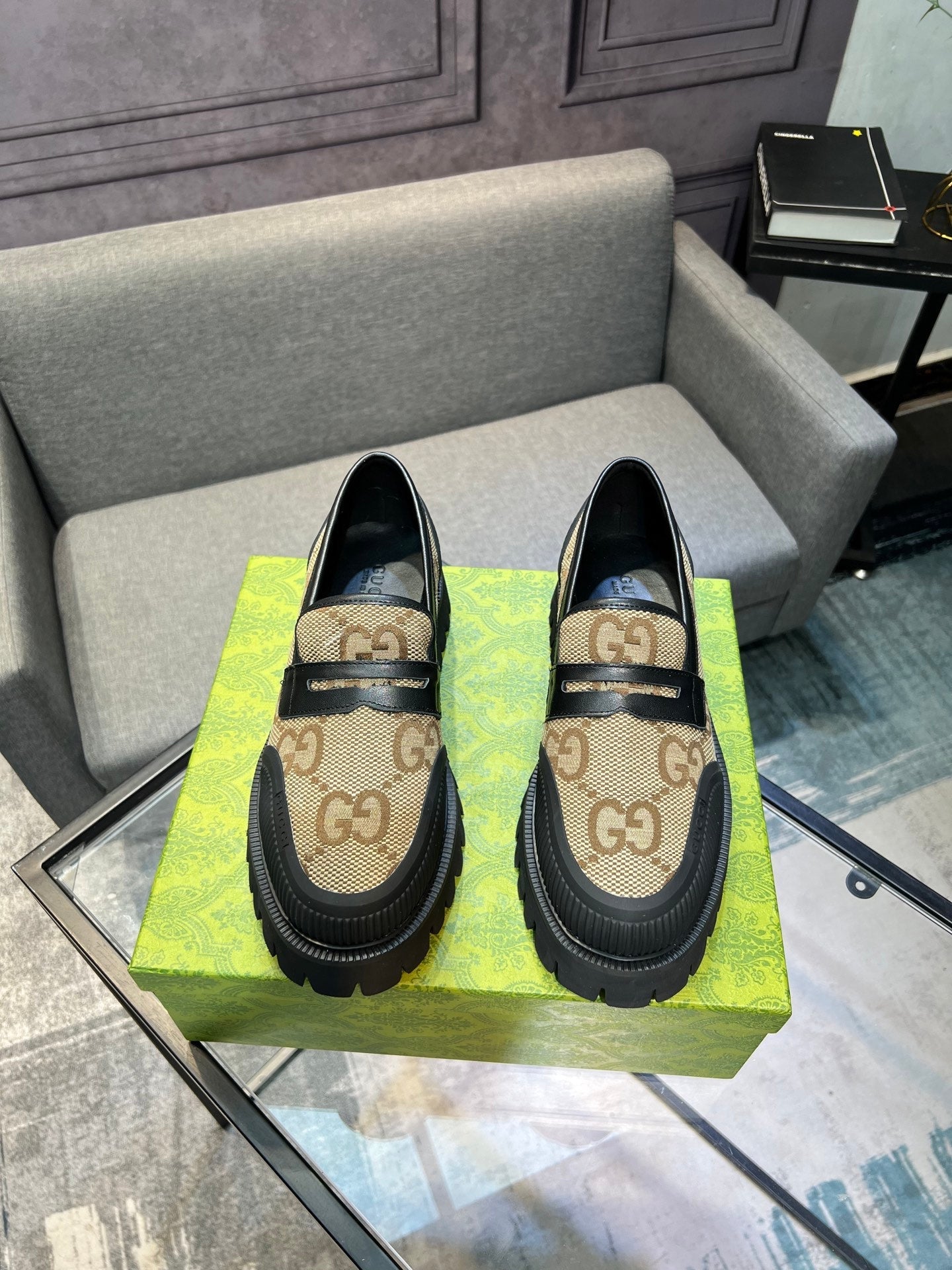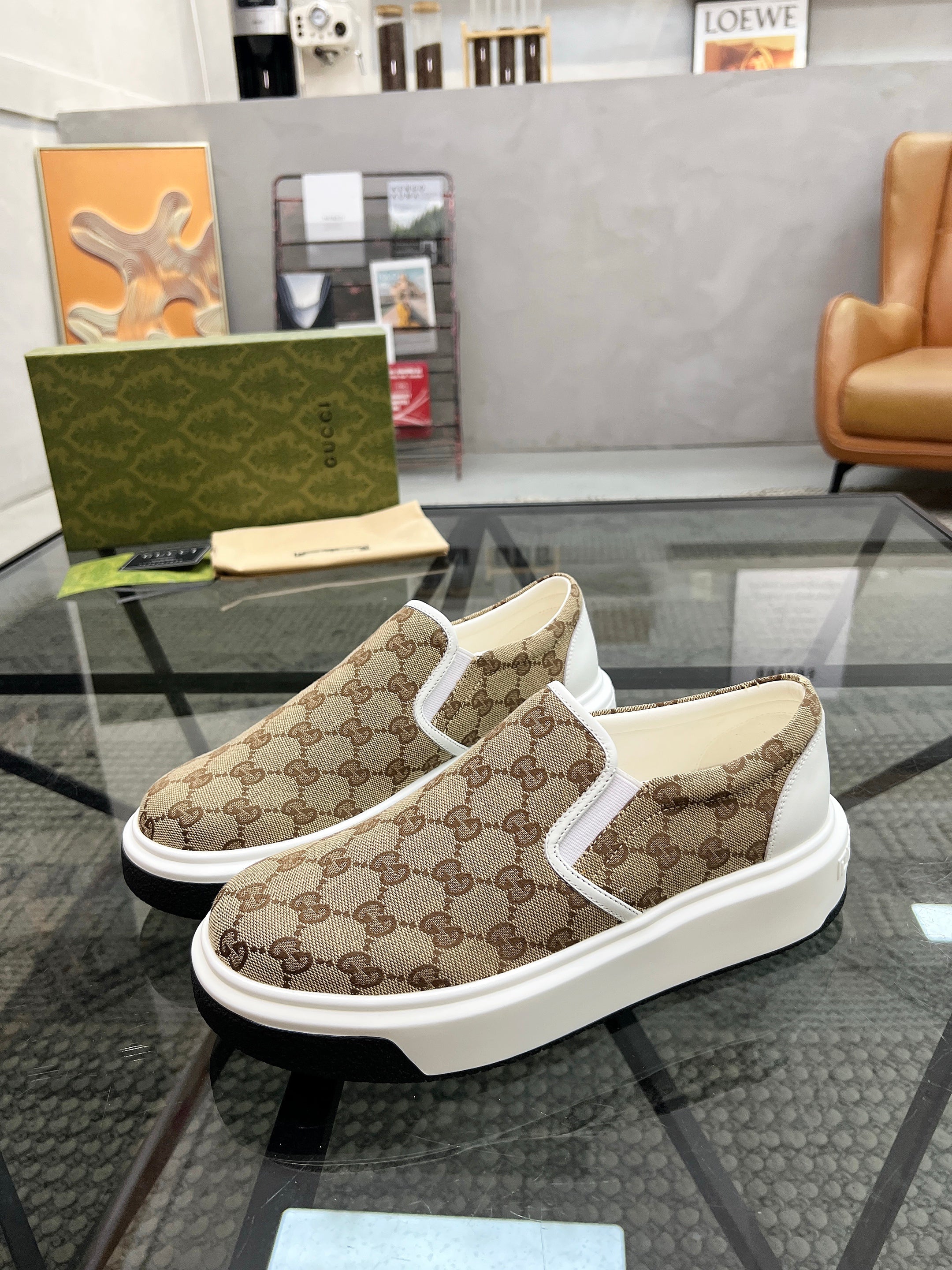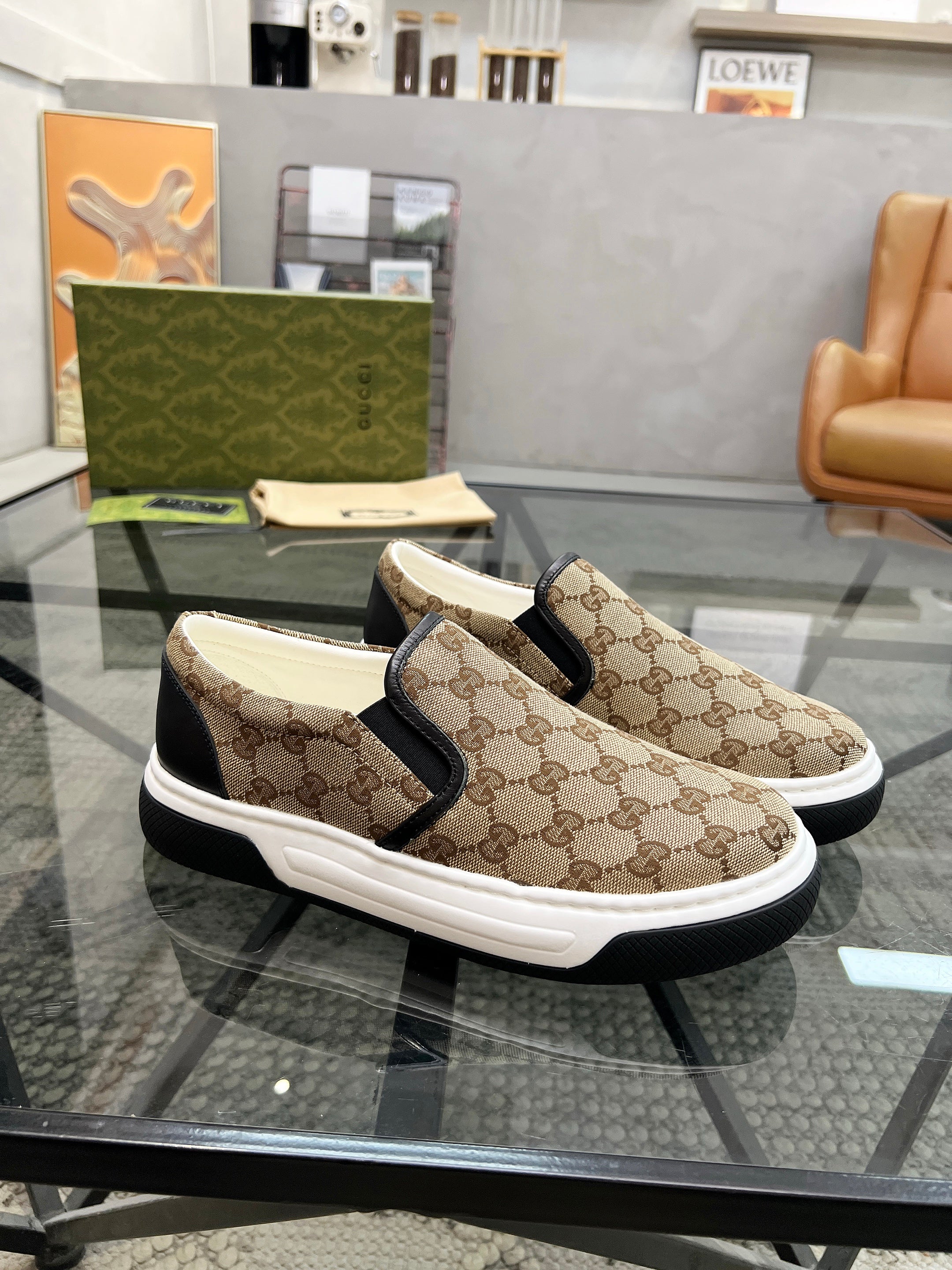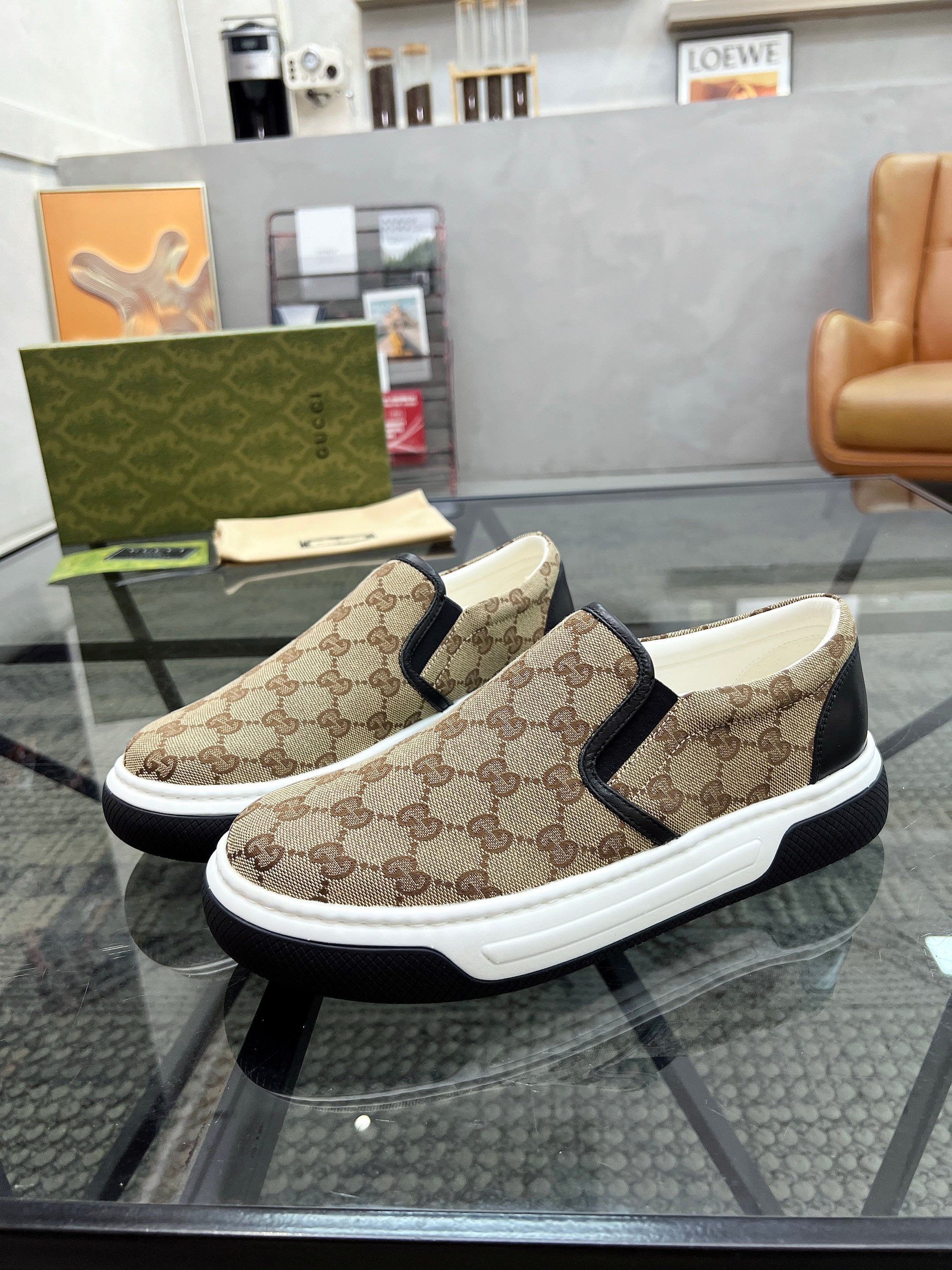 GG Men's 25 Maxi GG Loafer Brown Black Canvas 720786