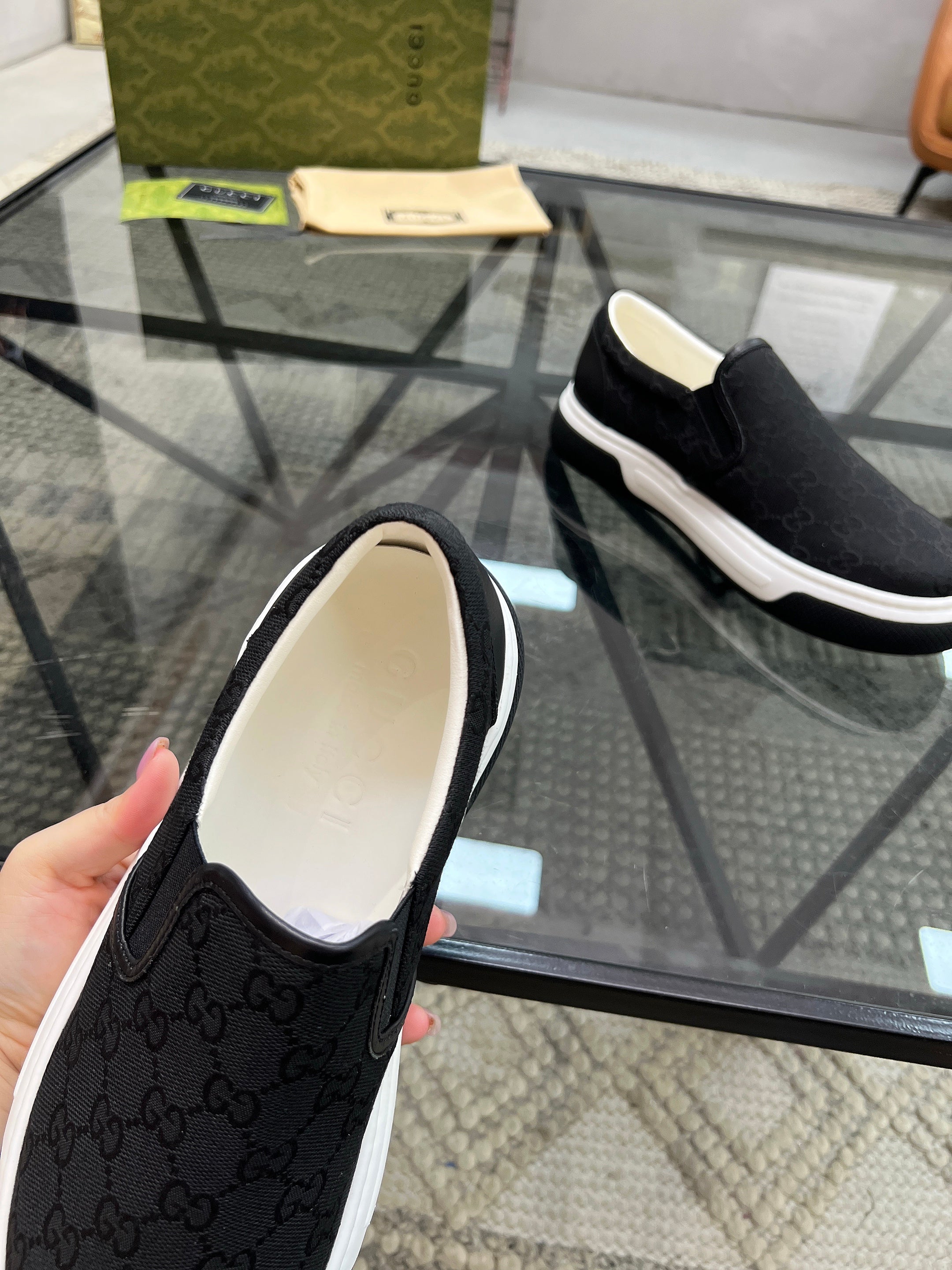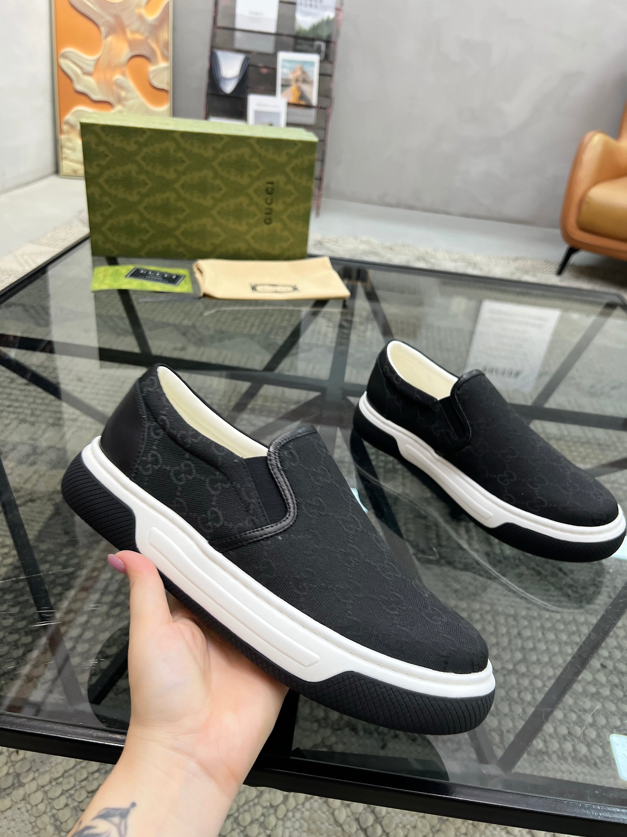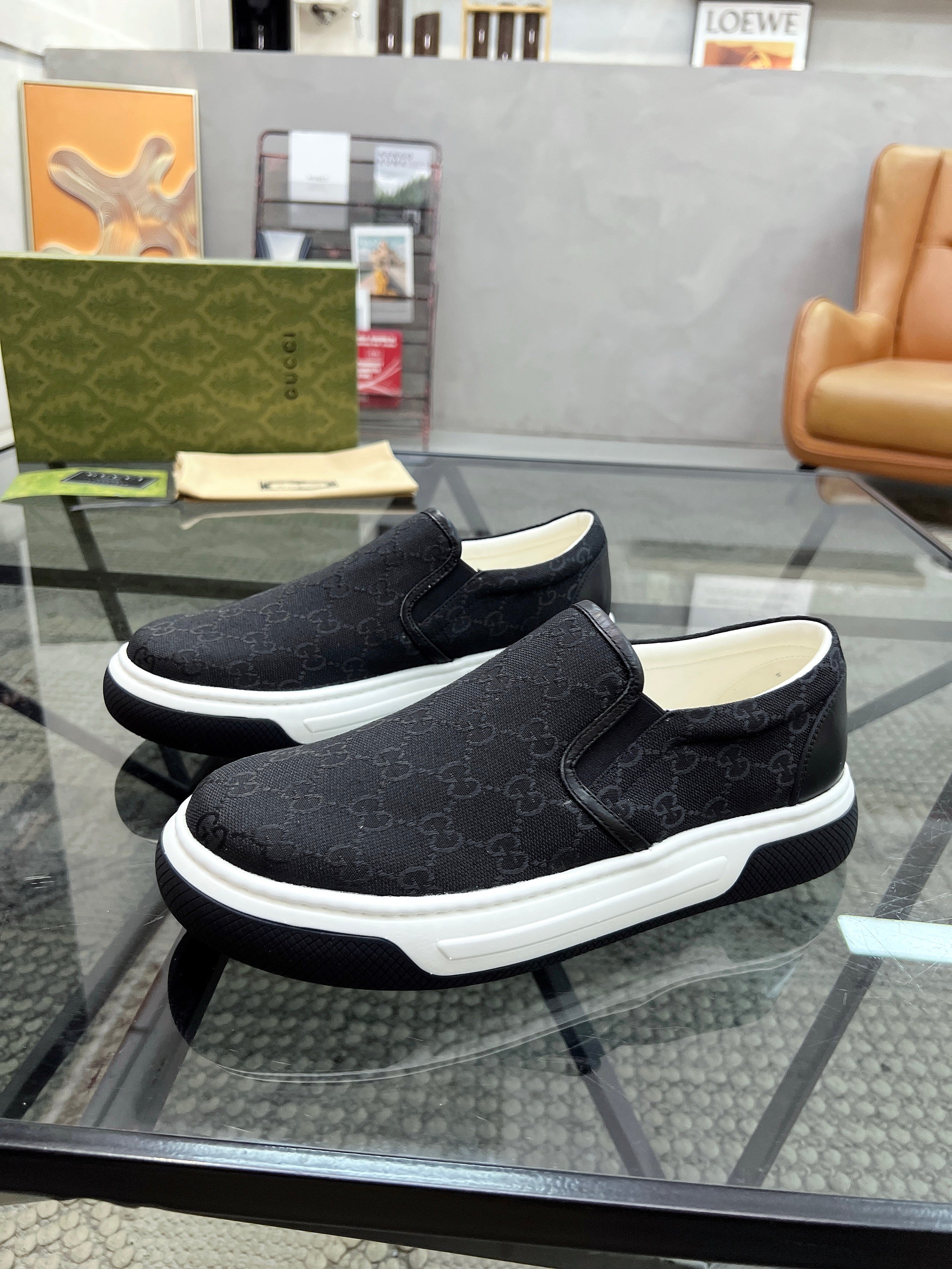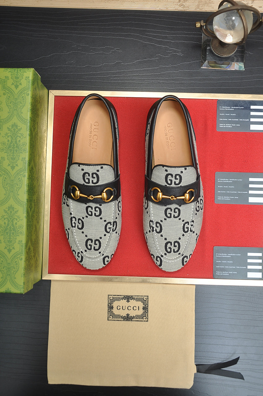 GG Men's Slip on Loafer Black Printed Fabric 721527