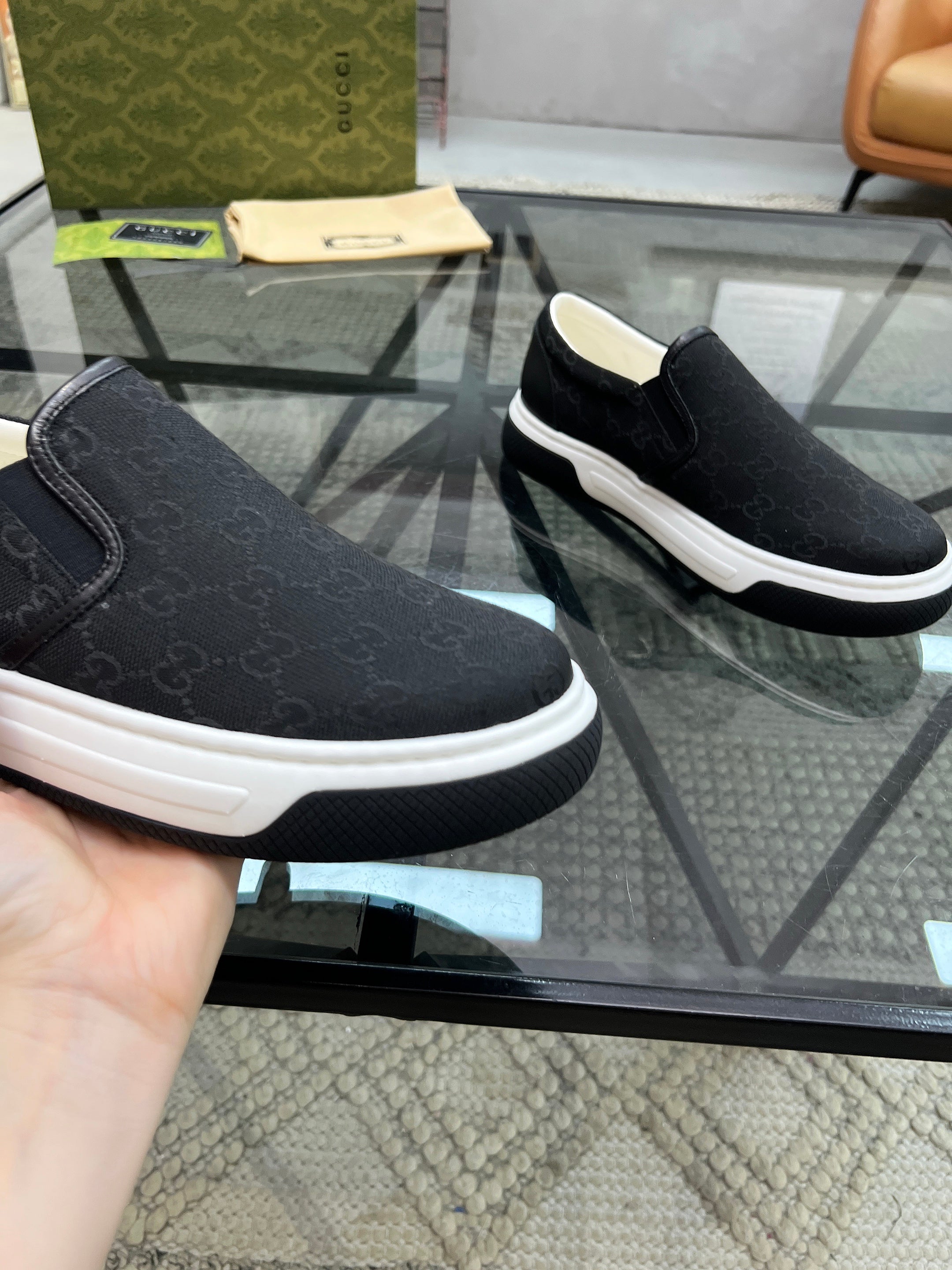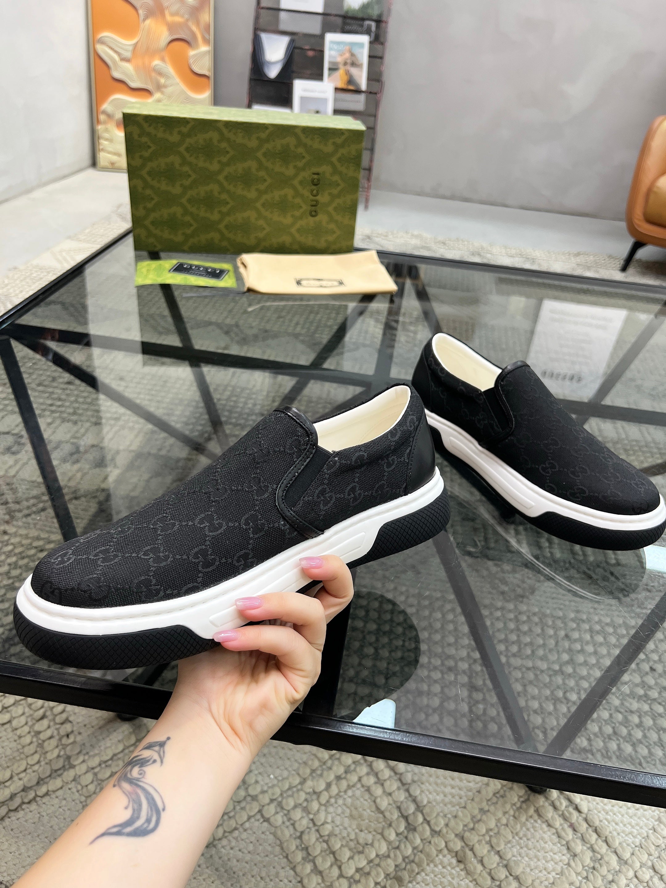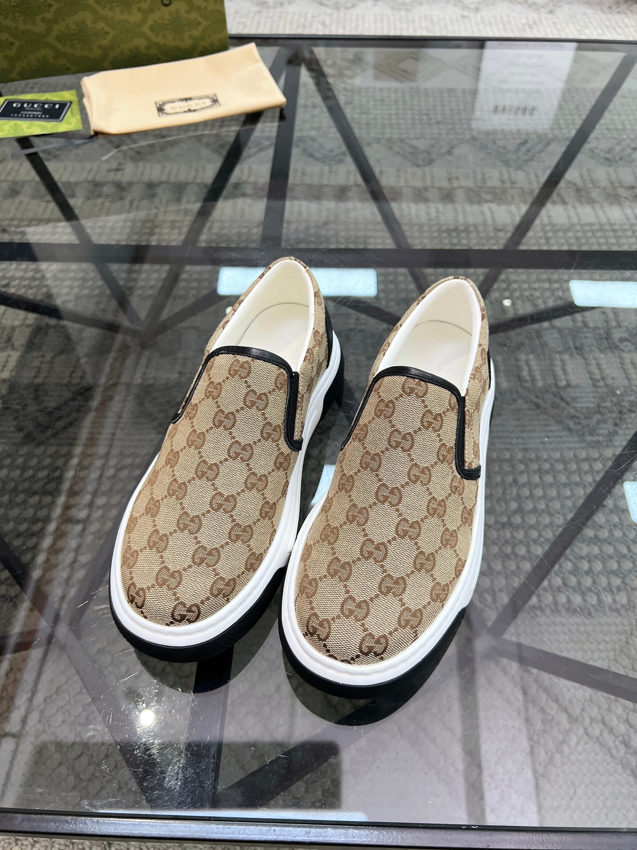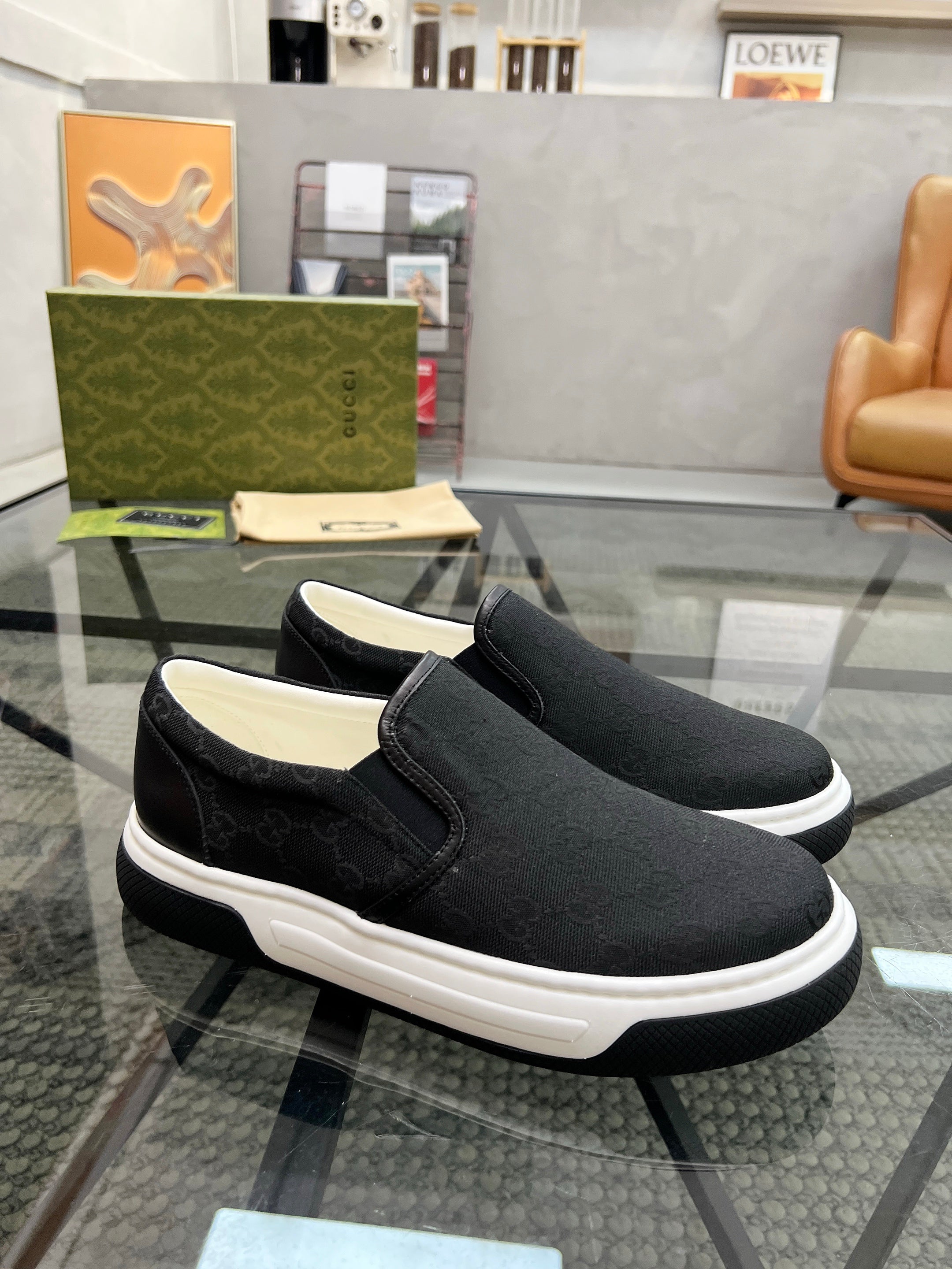 GG Men's Slip on Loafer Black Printed Fabric 721527