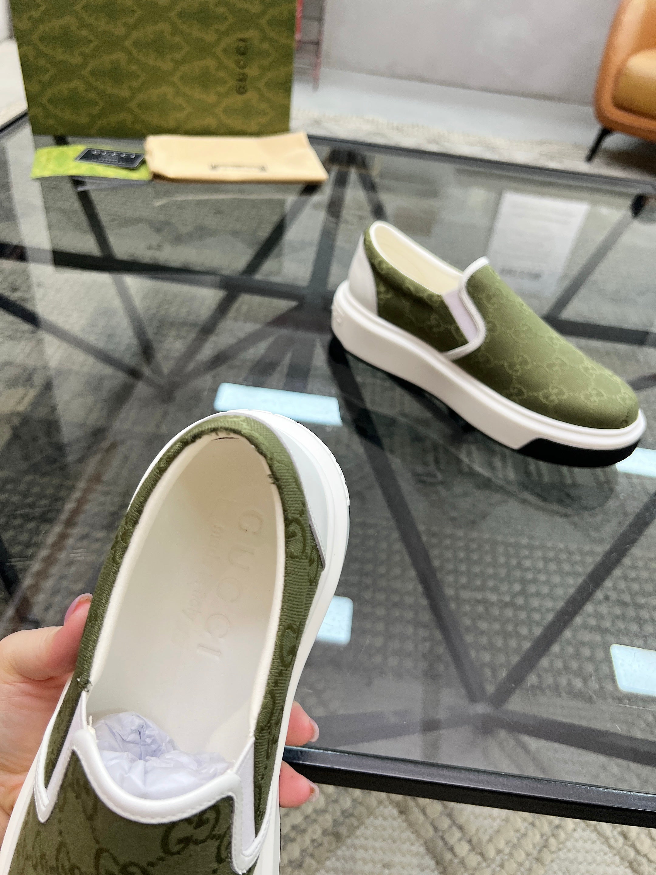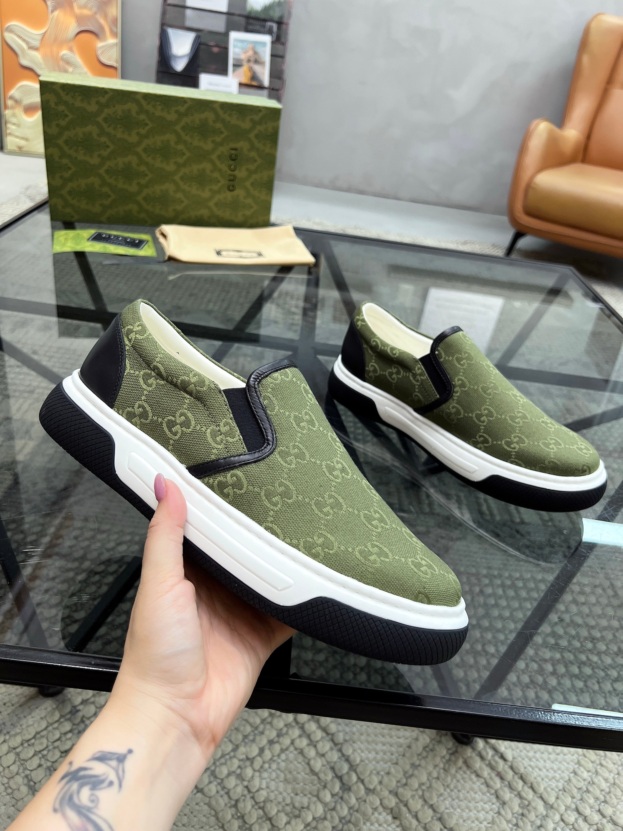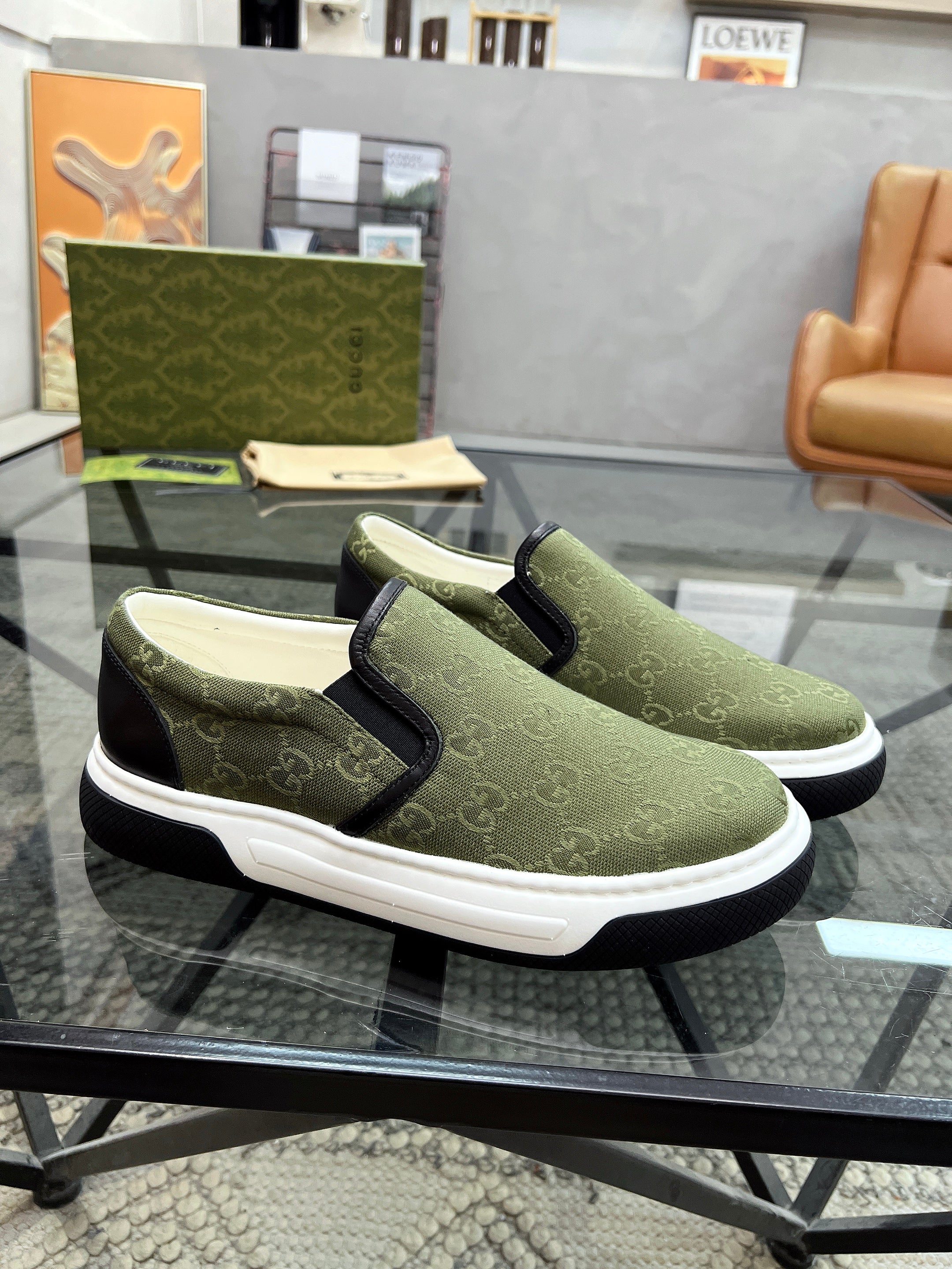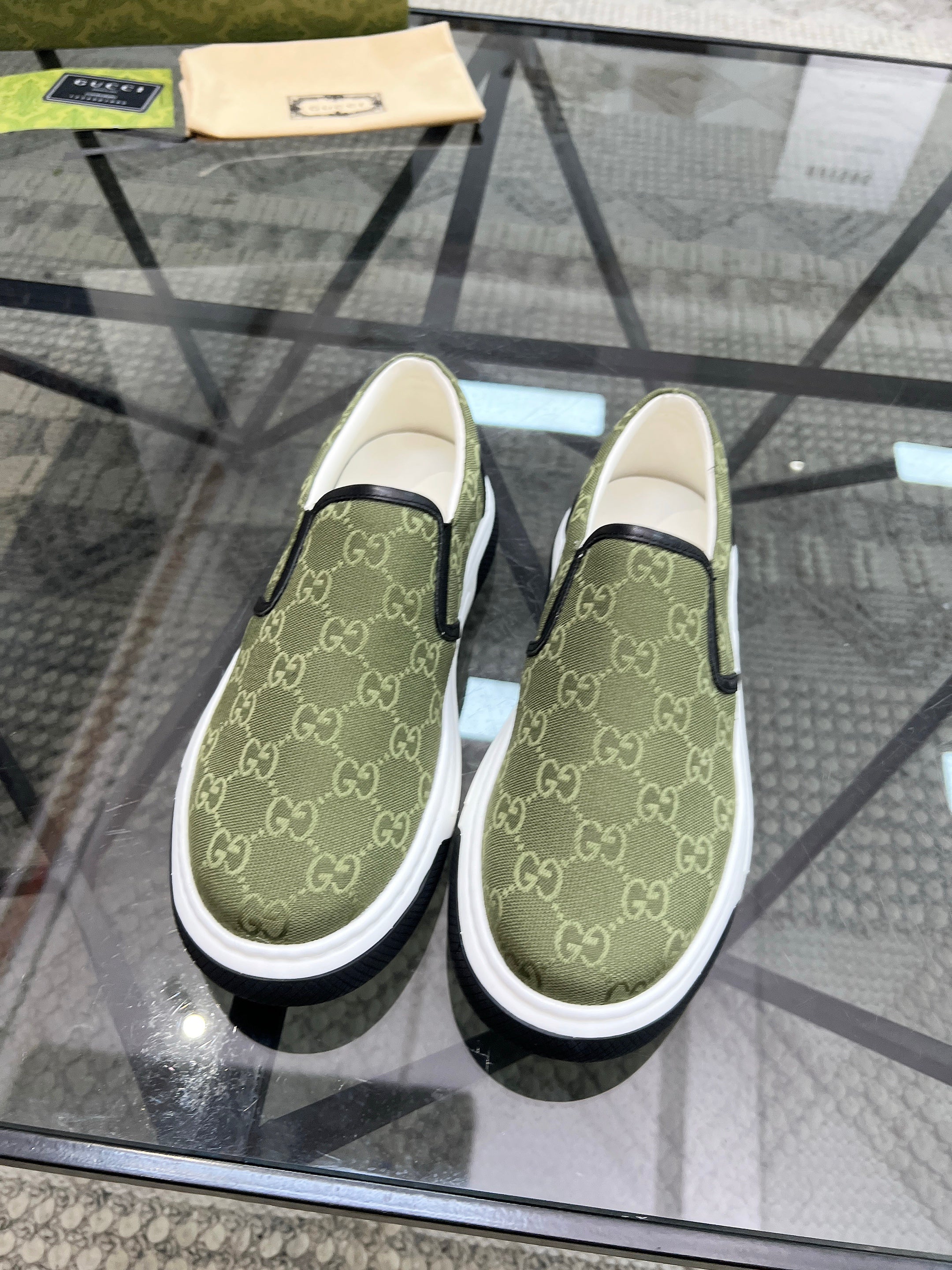GG Men's Slip on Loafer Olive Green Printed Fabric 721525