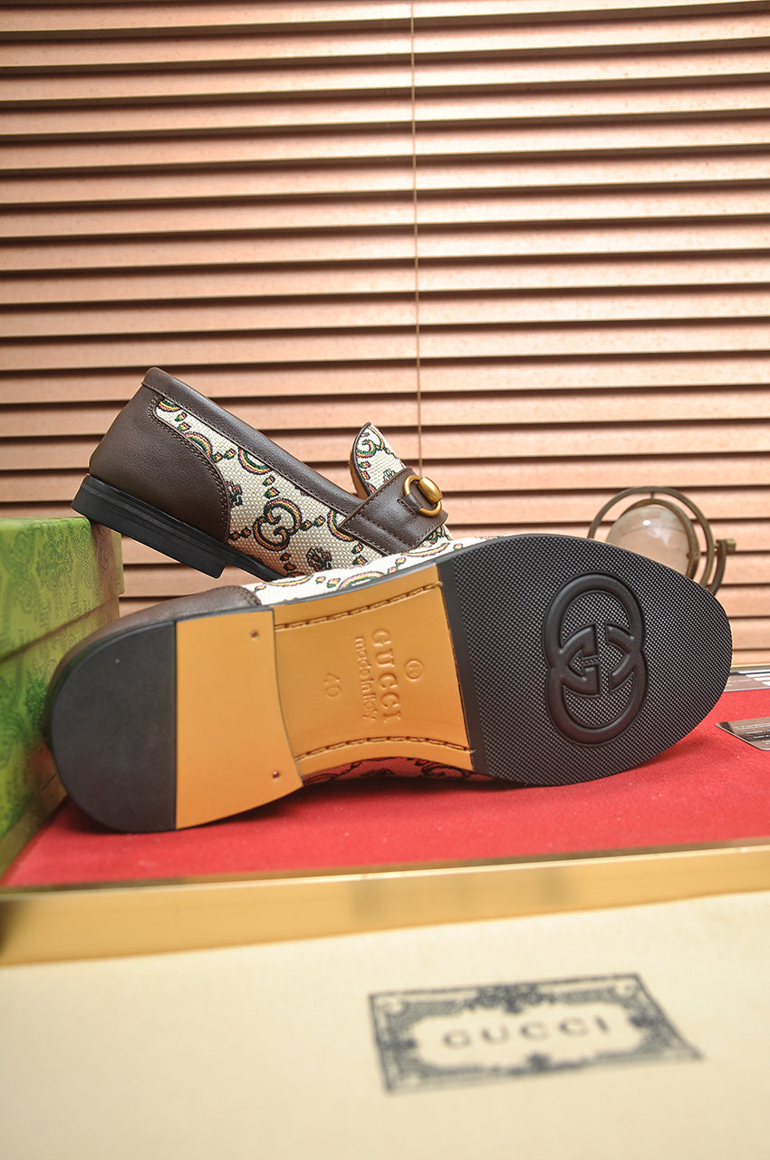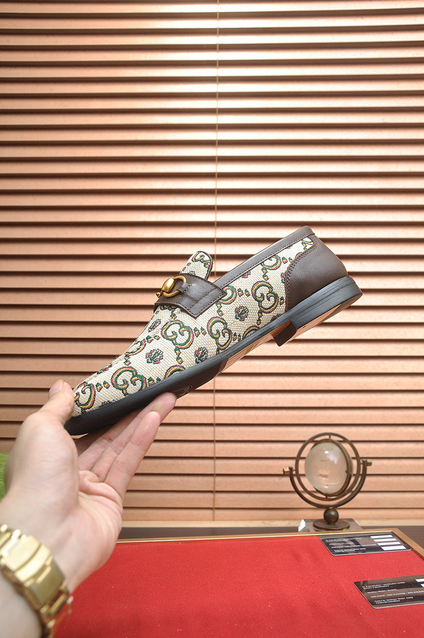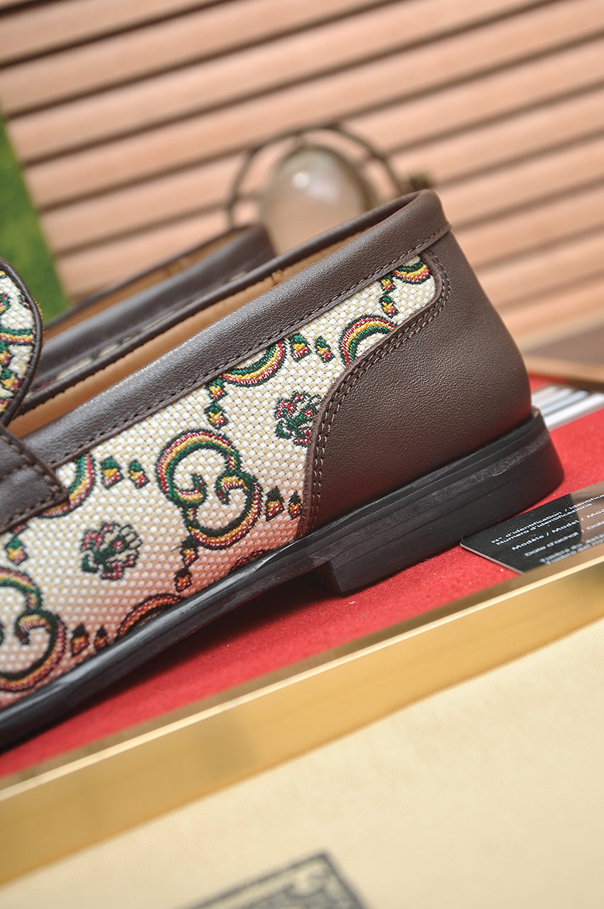 GG Men's Slip on Loafer Brown Printed Fabric 721584