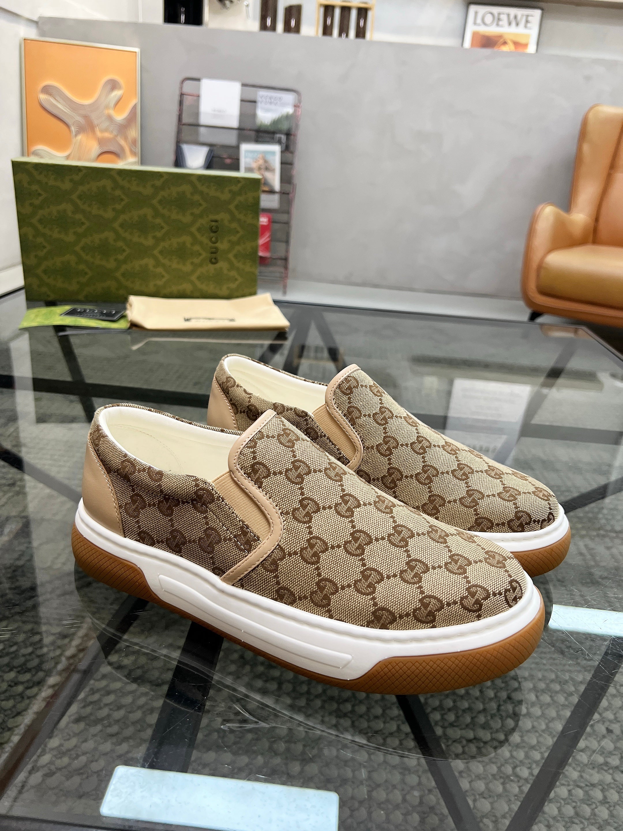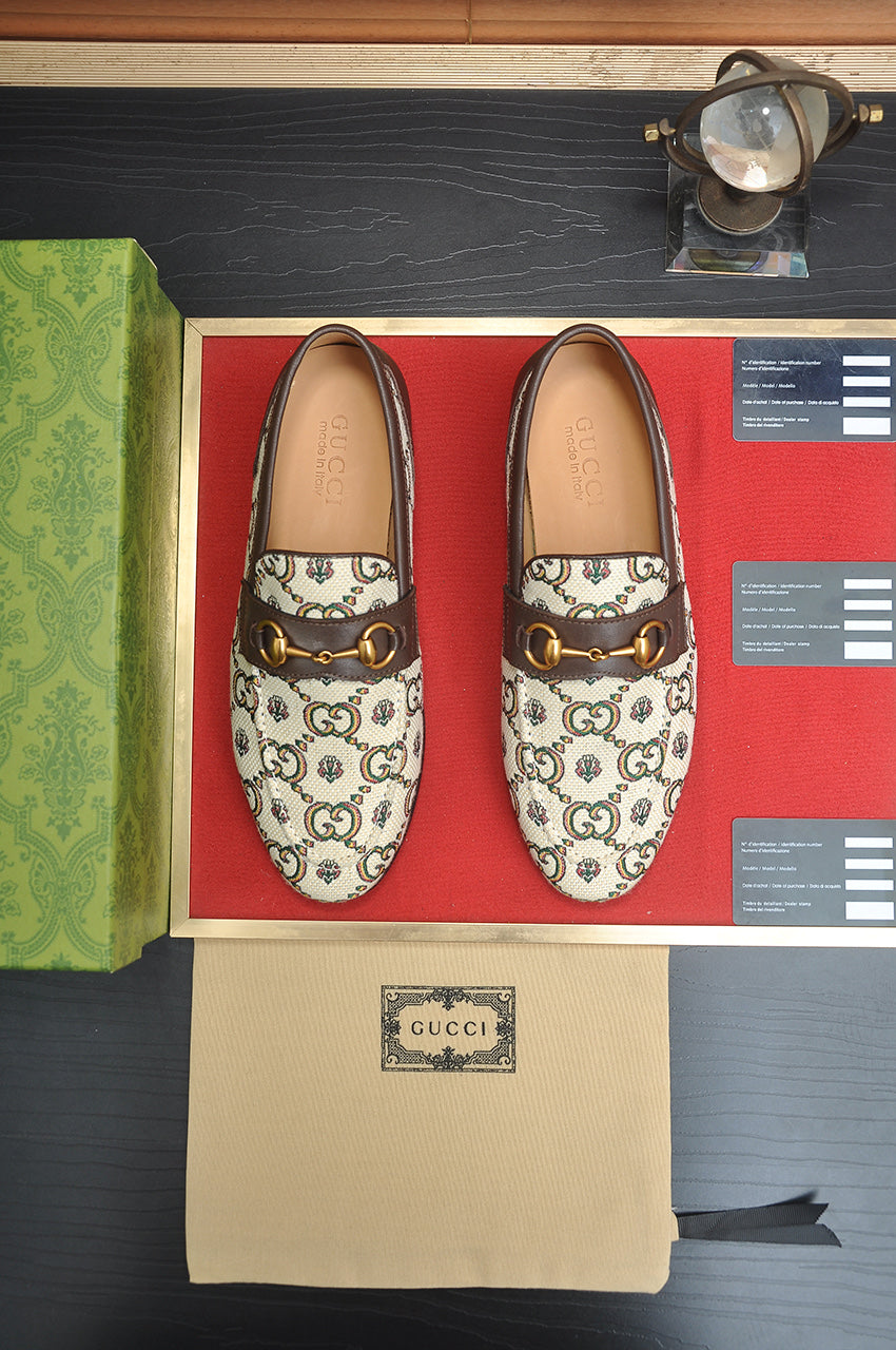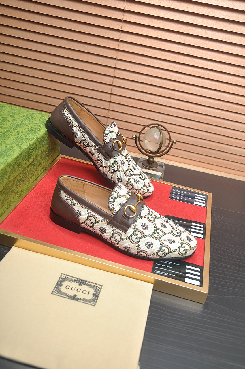 GG Men's Slip on Loafer Brown Printed Fabric 721584