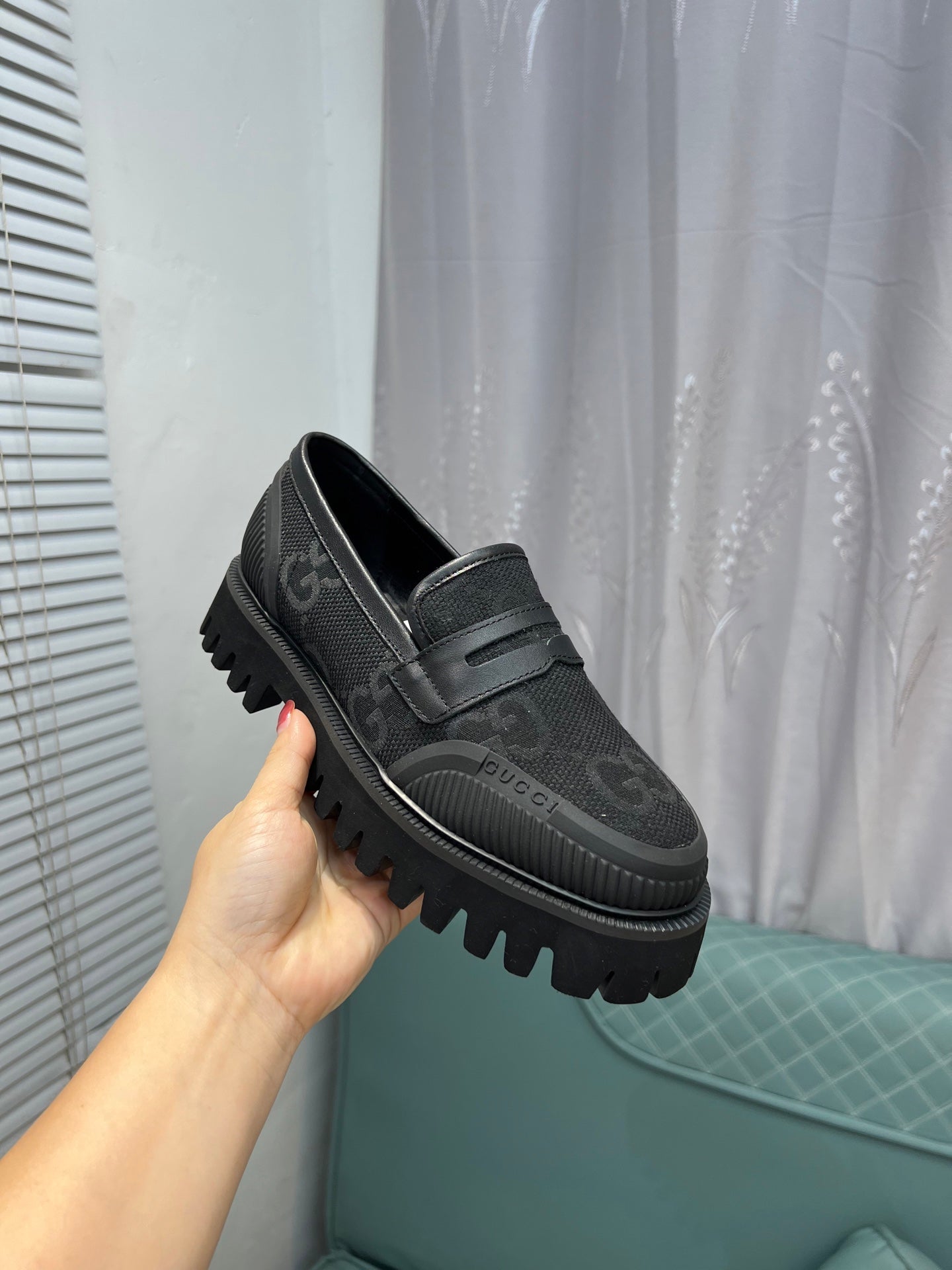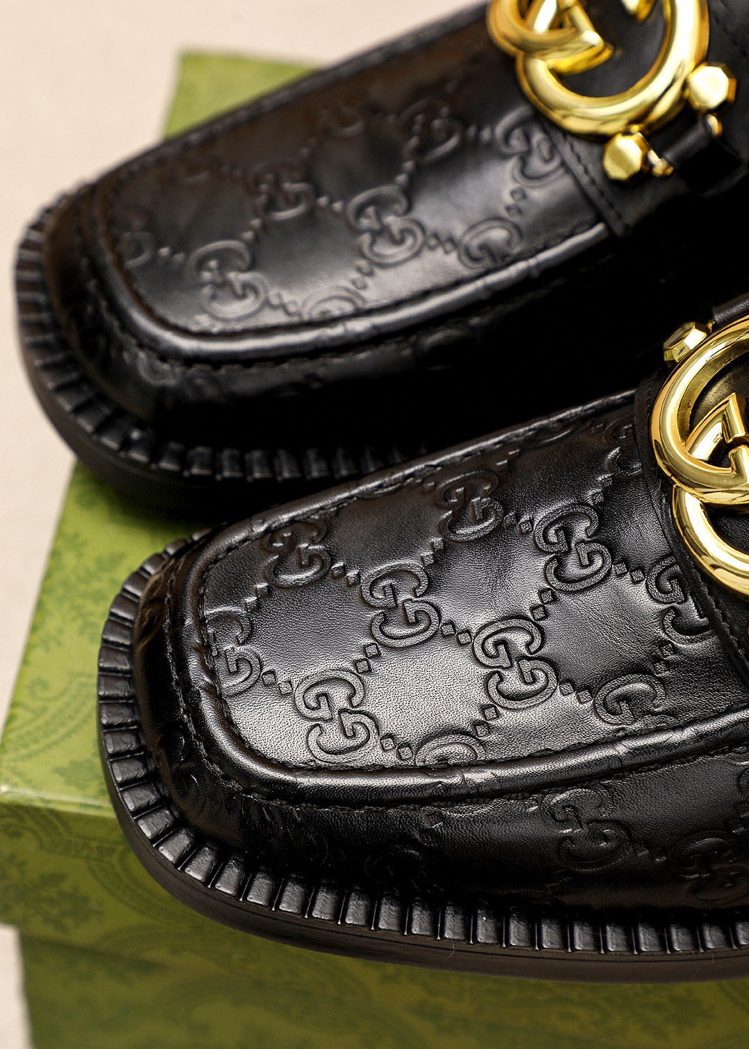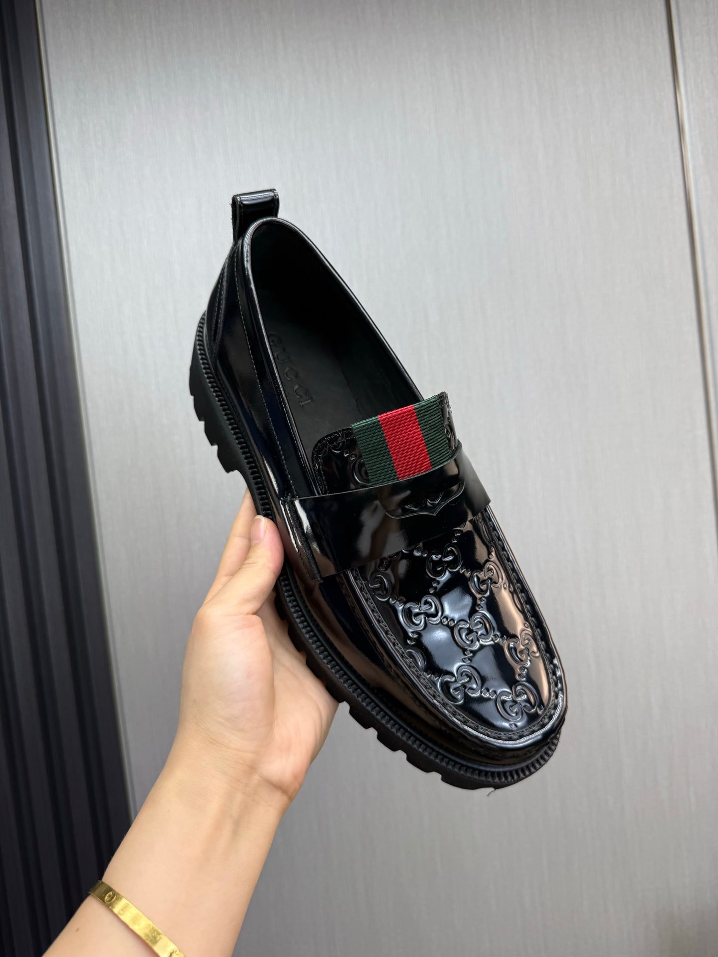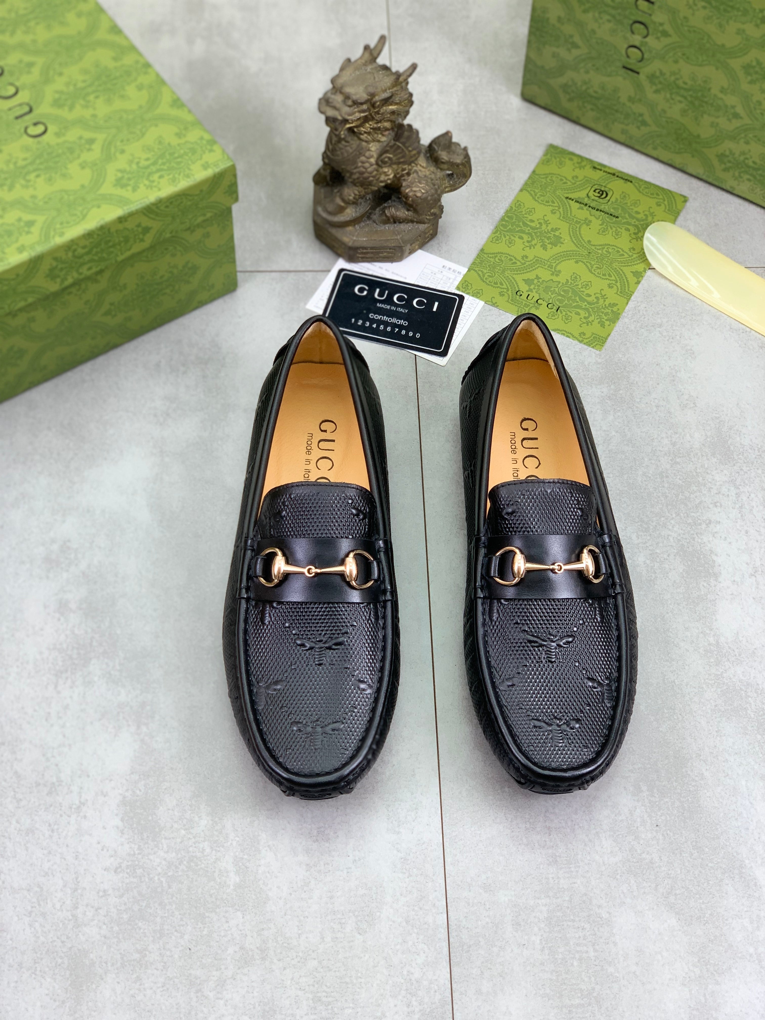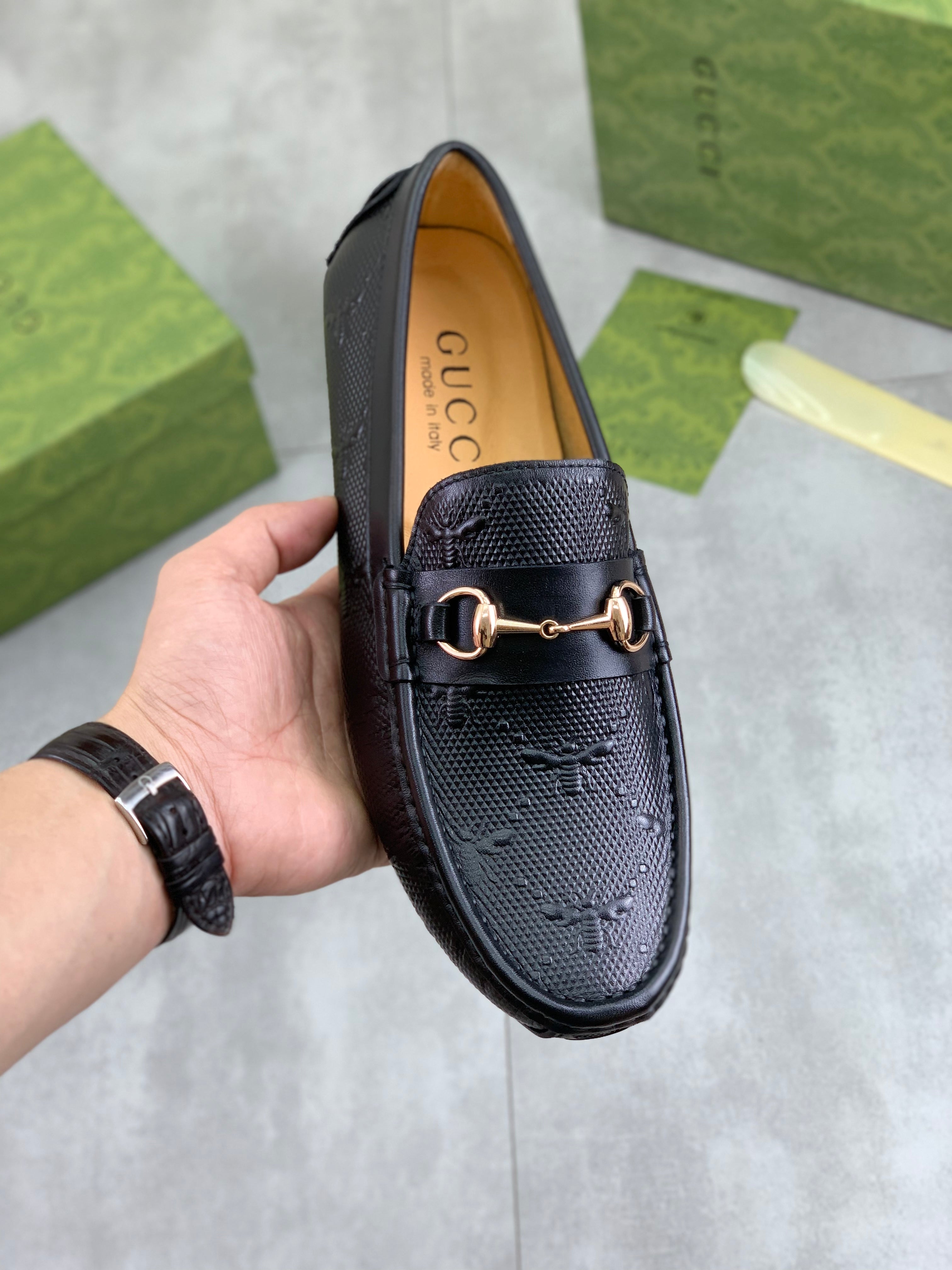 GG Men's Loafer Black Embossed Cowhide 484785