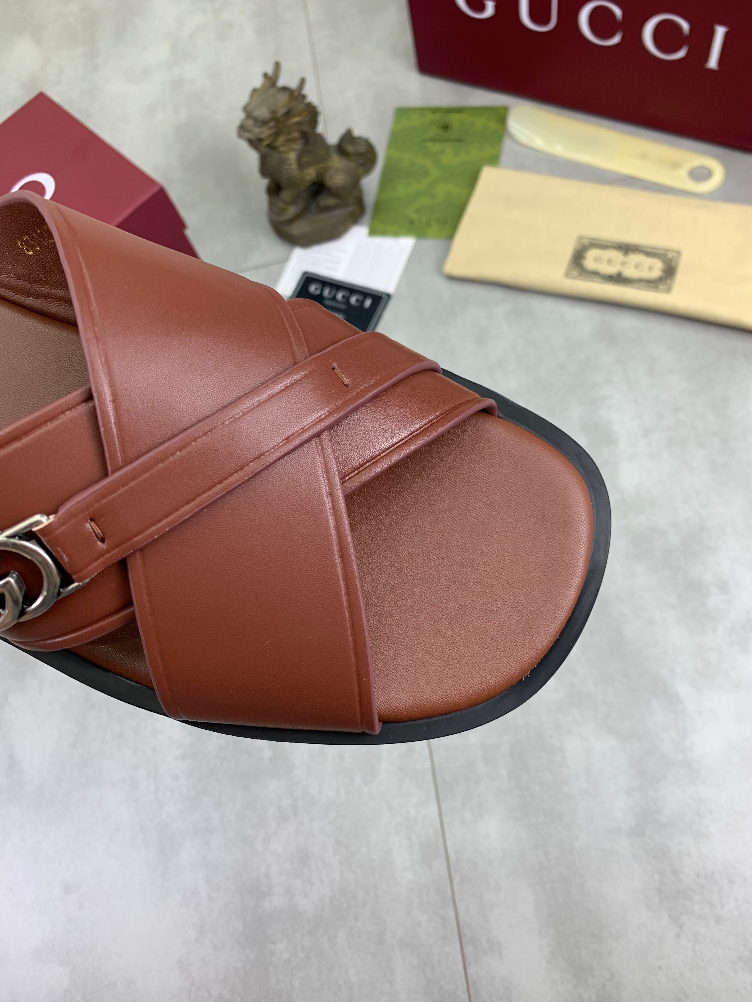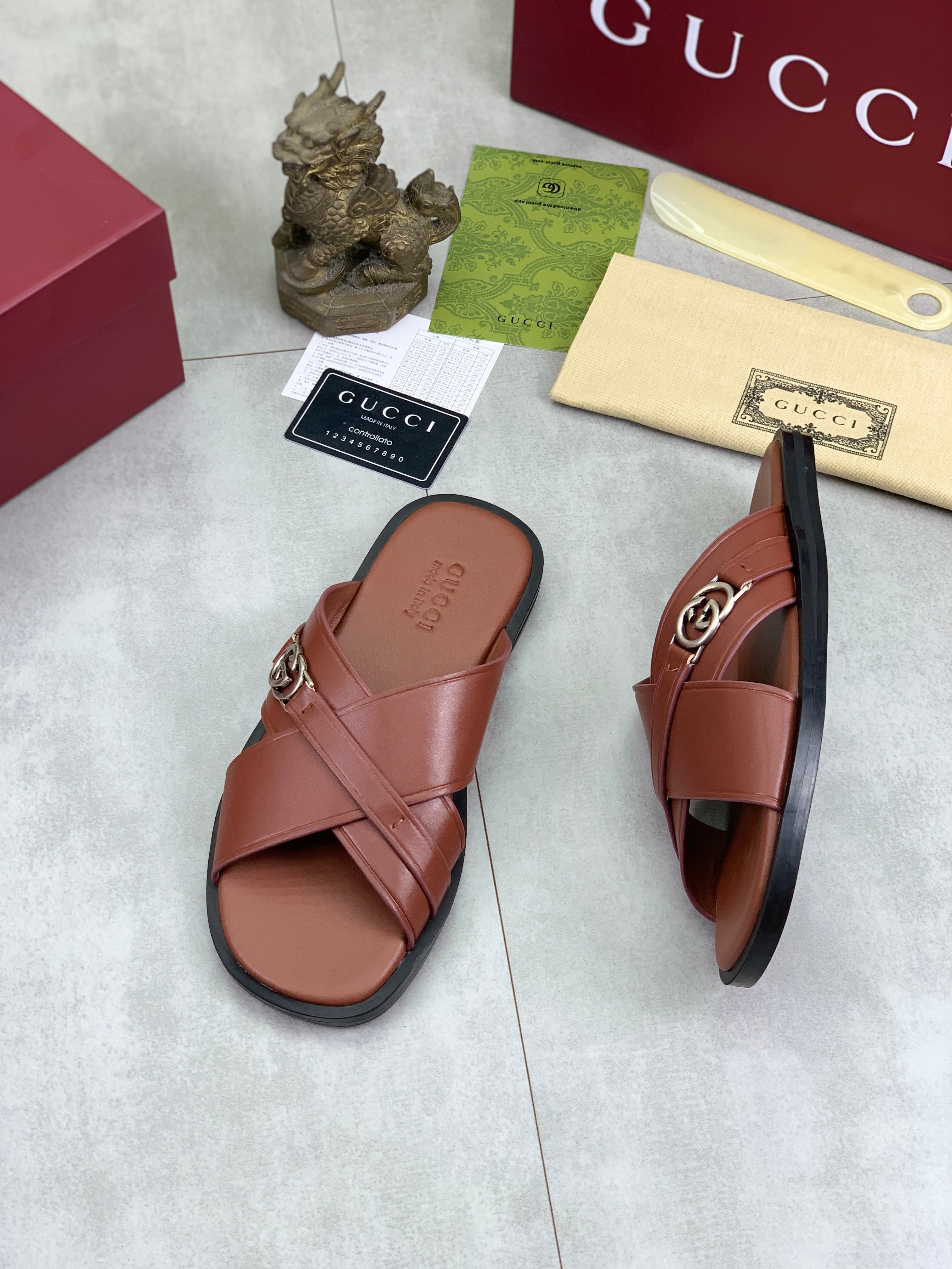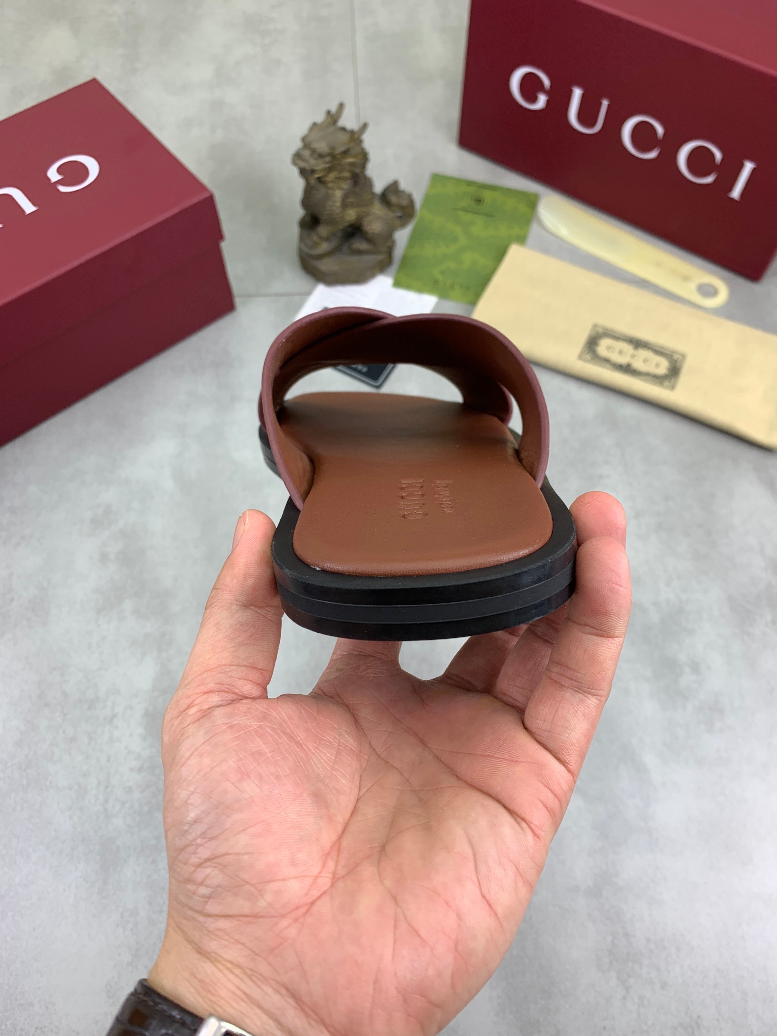 GG Men's 25 Sandals Slide Brown Cowhide 738473