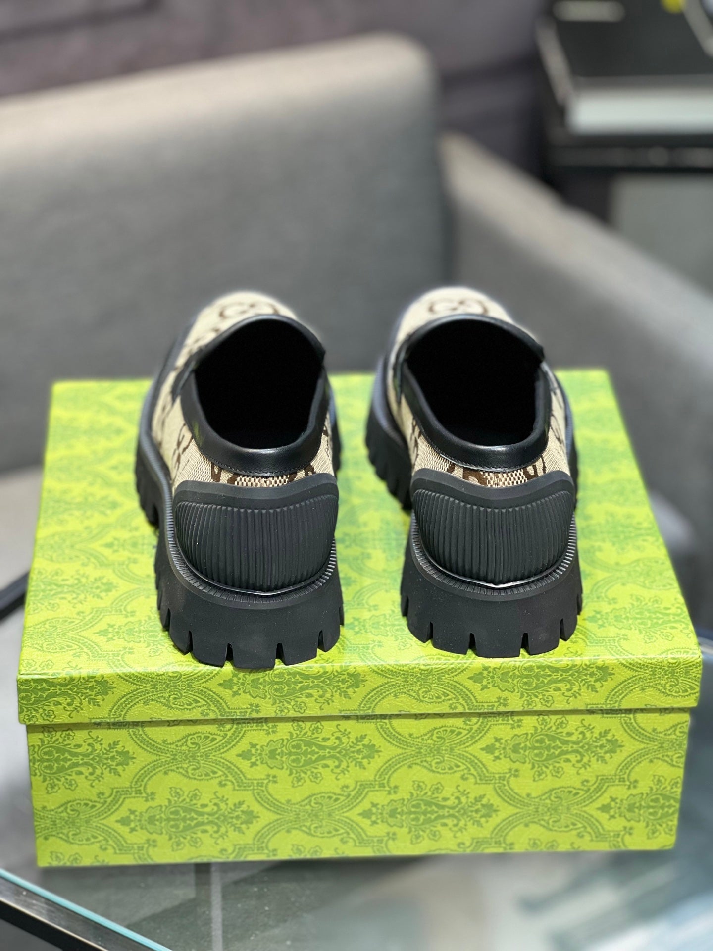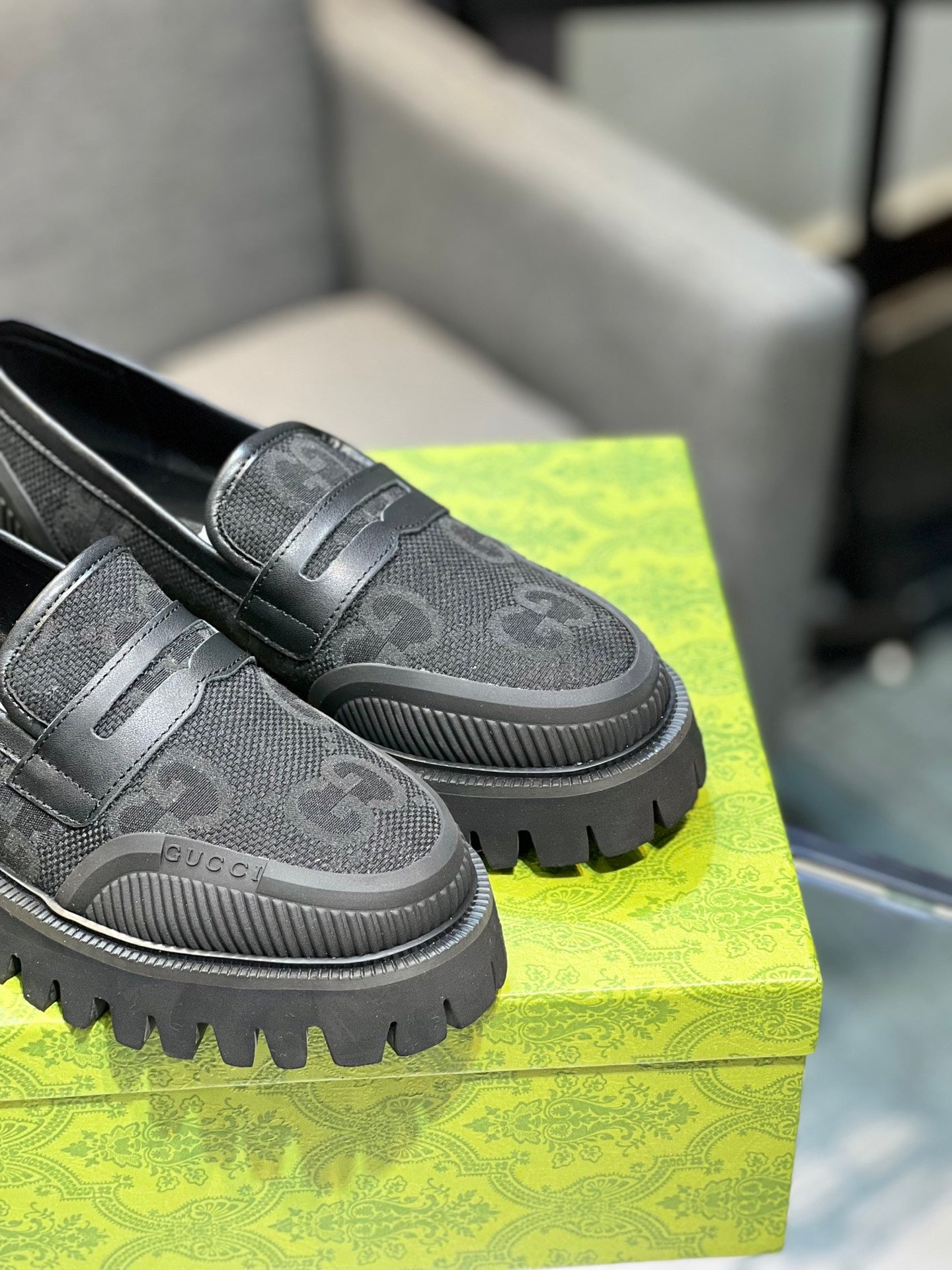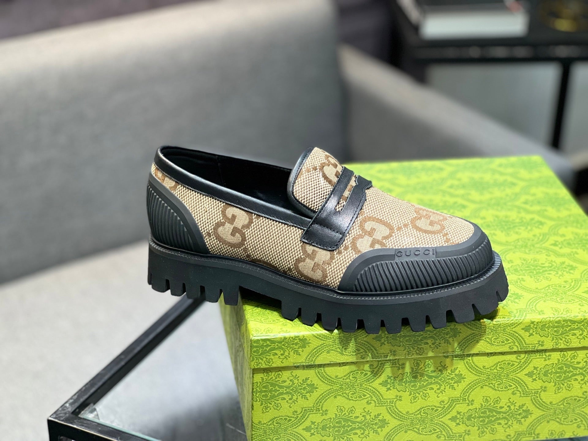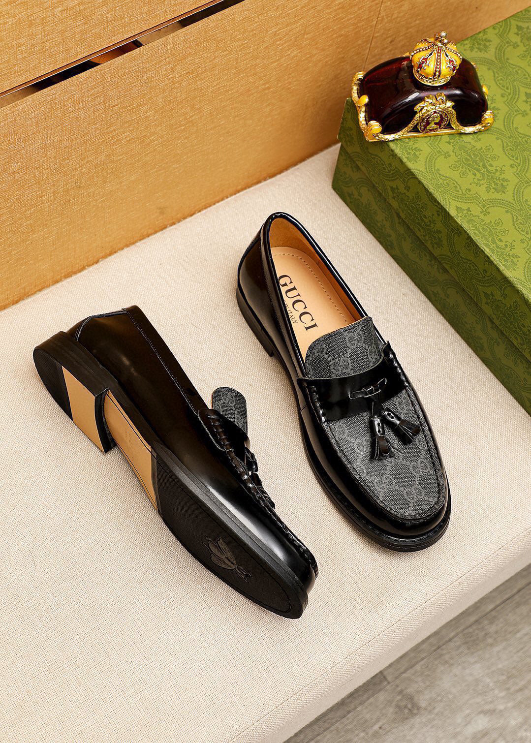 GG Men's Loafer Black mix Green Cowhide 731292