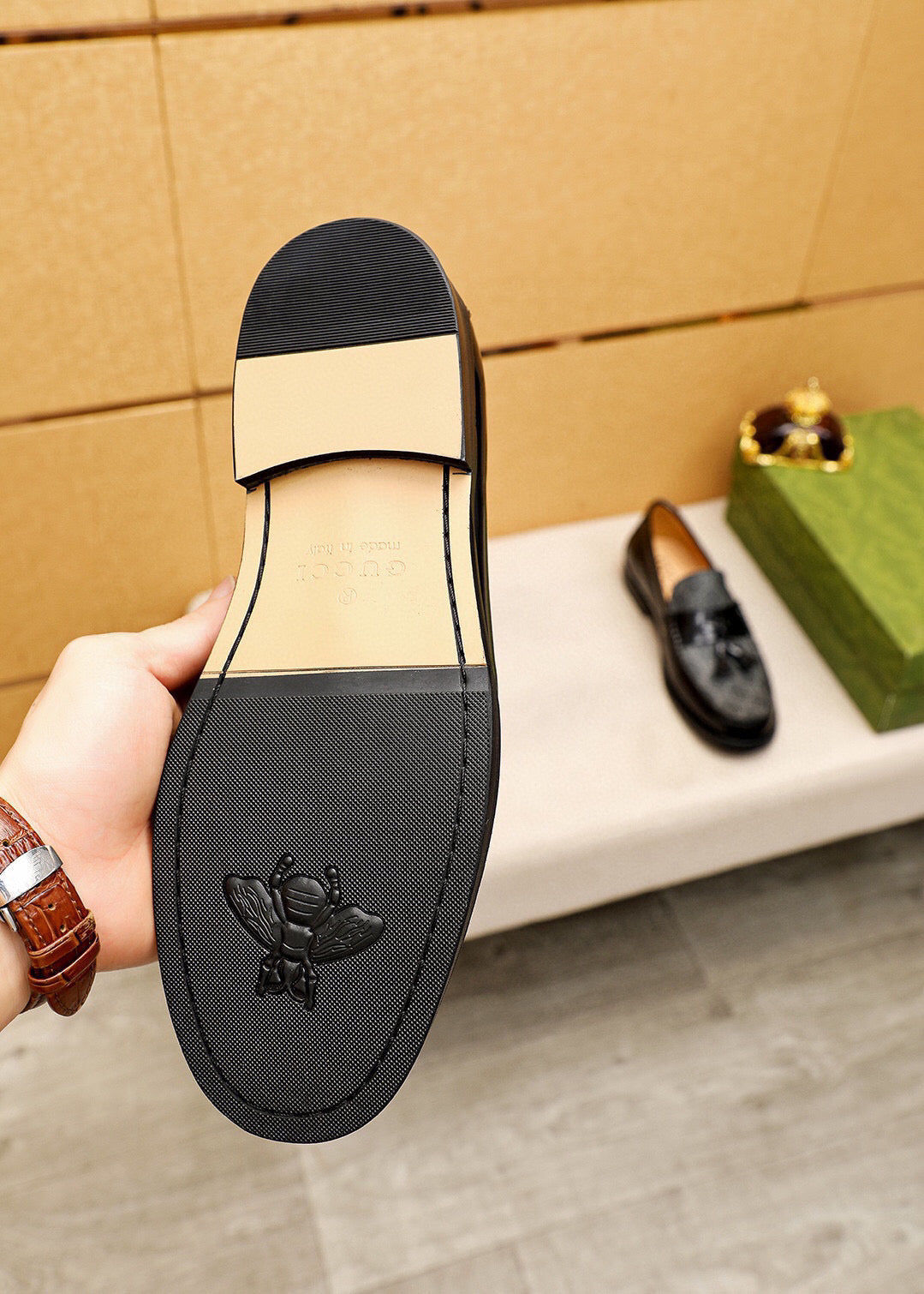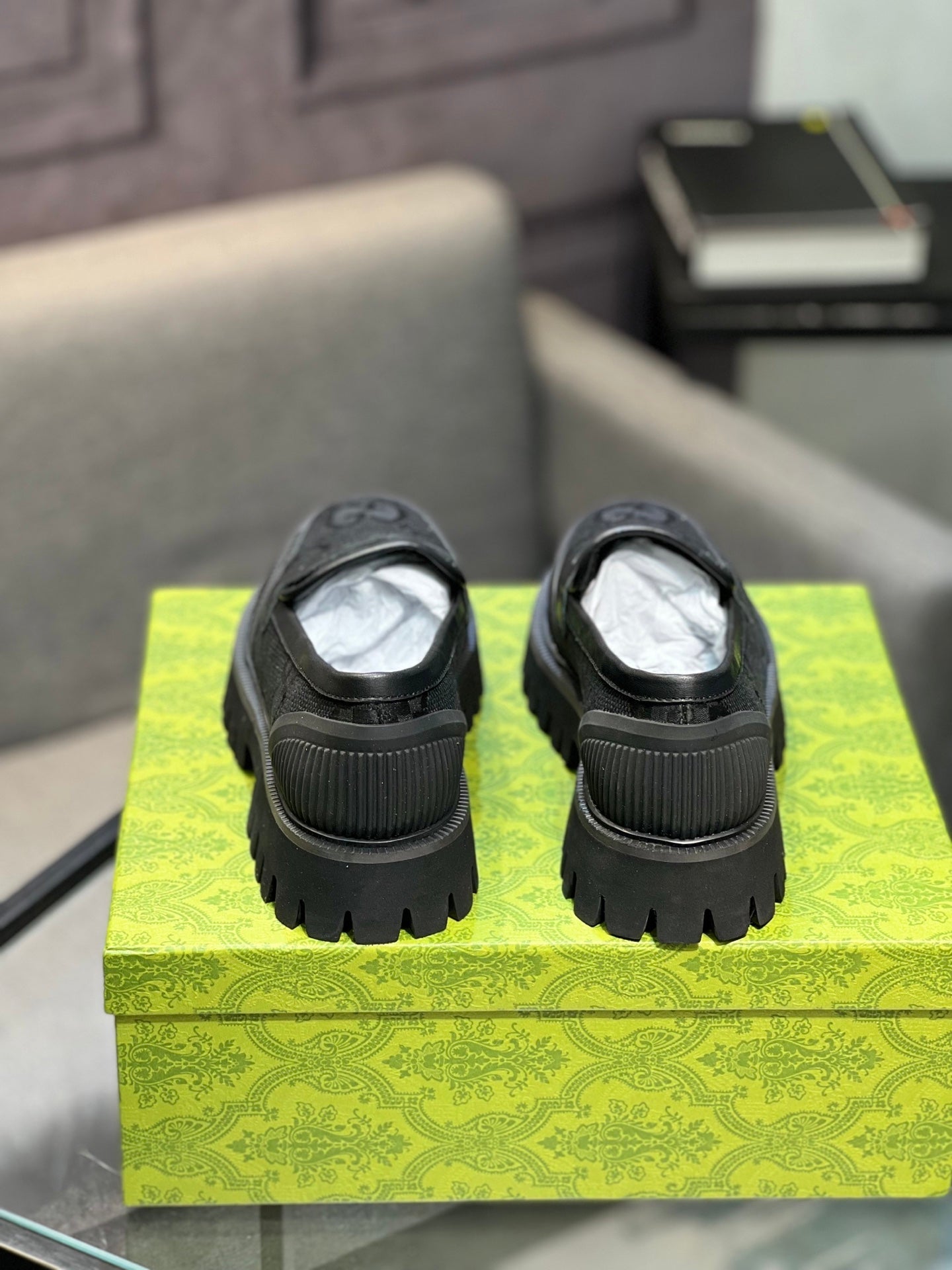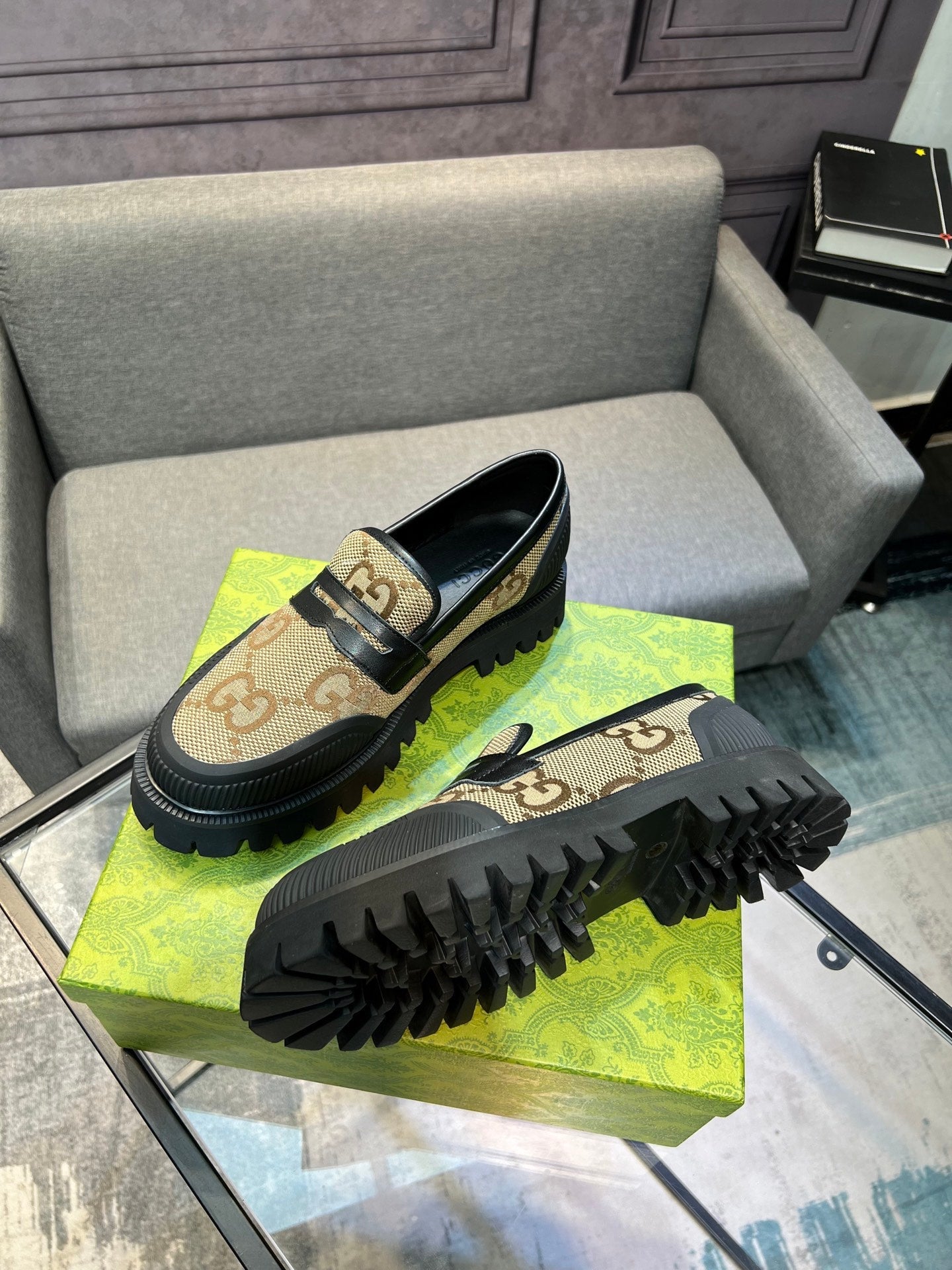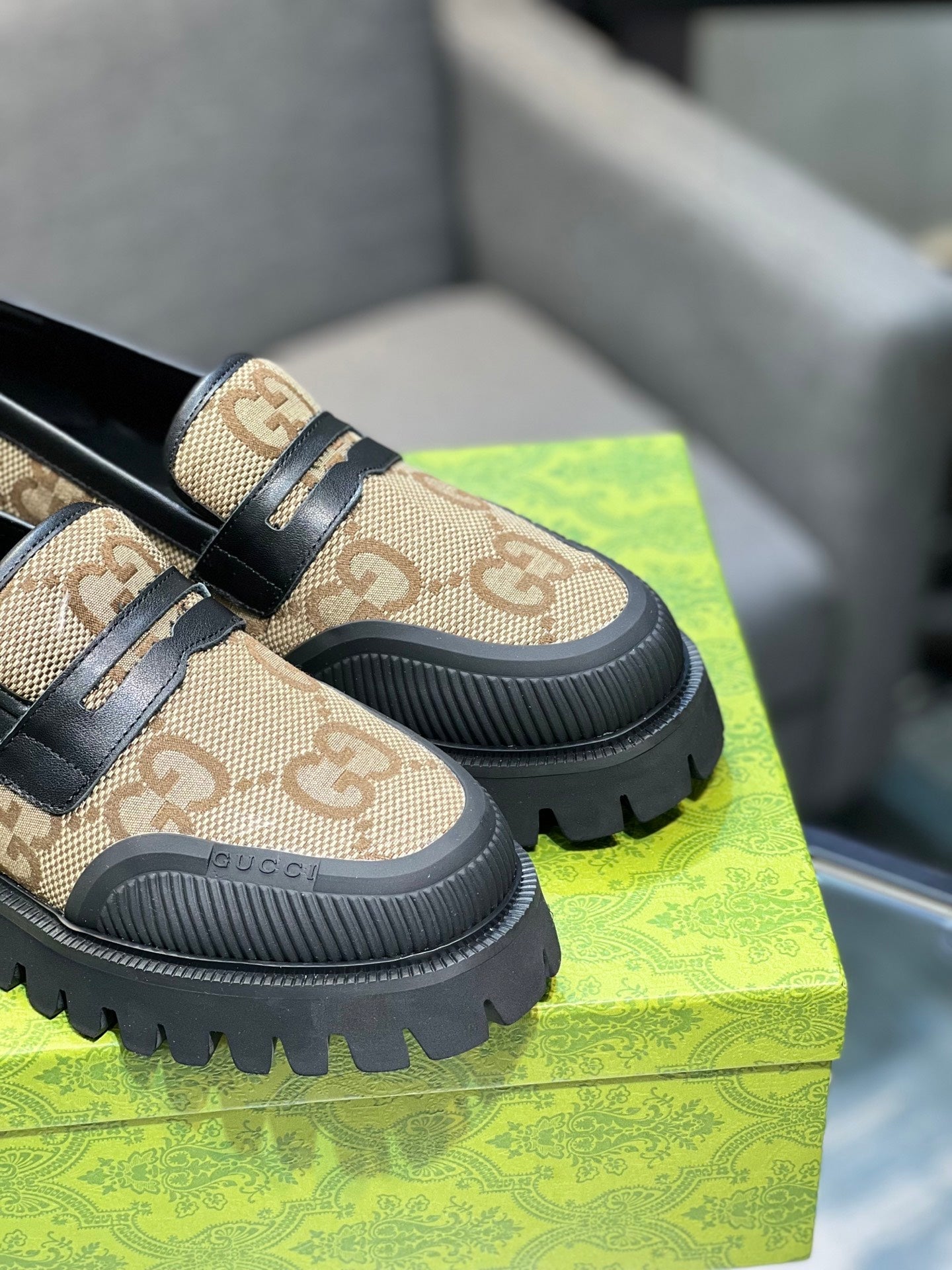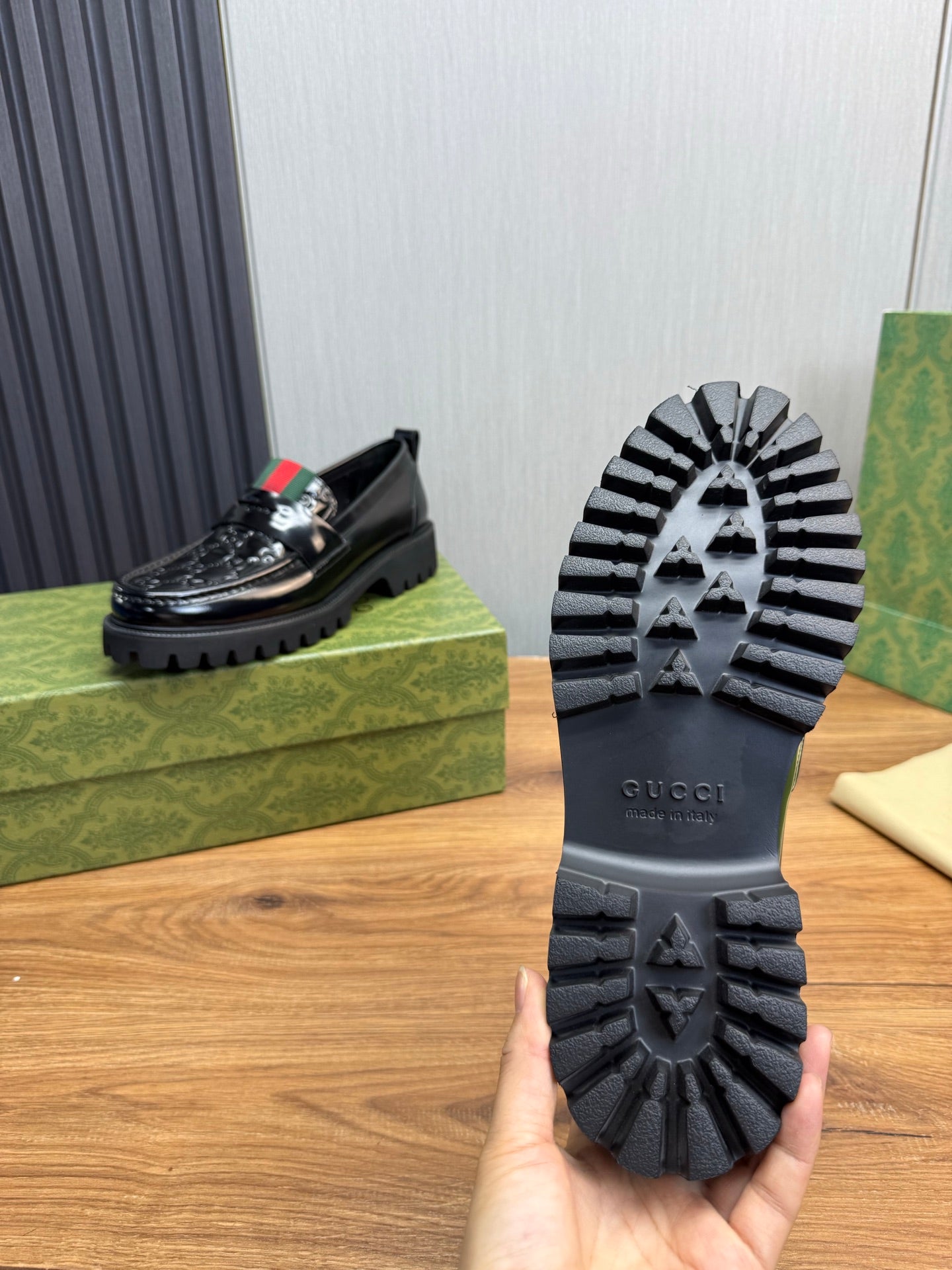 GG Men's Loafer Black mix Green Cowhide 731292