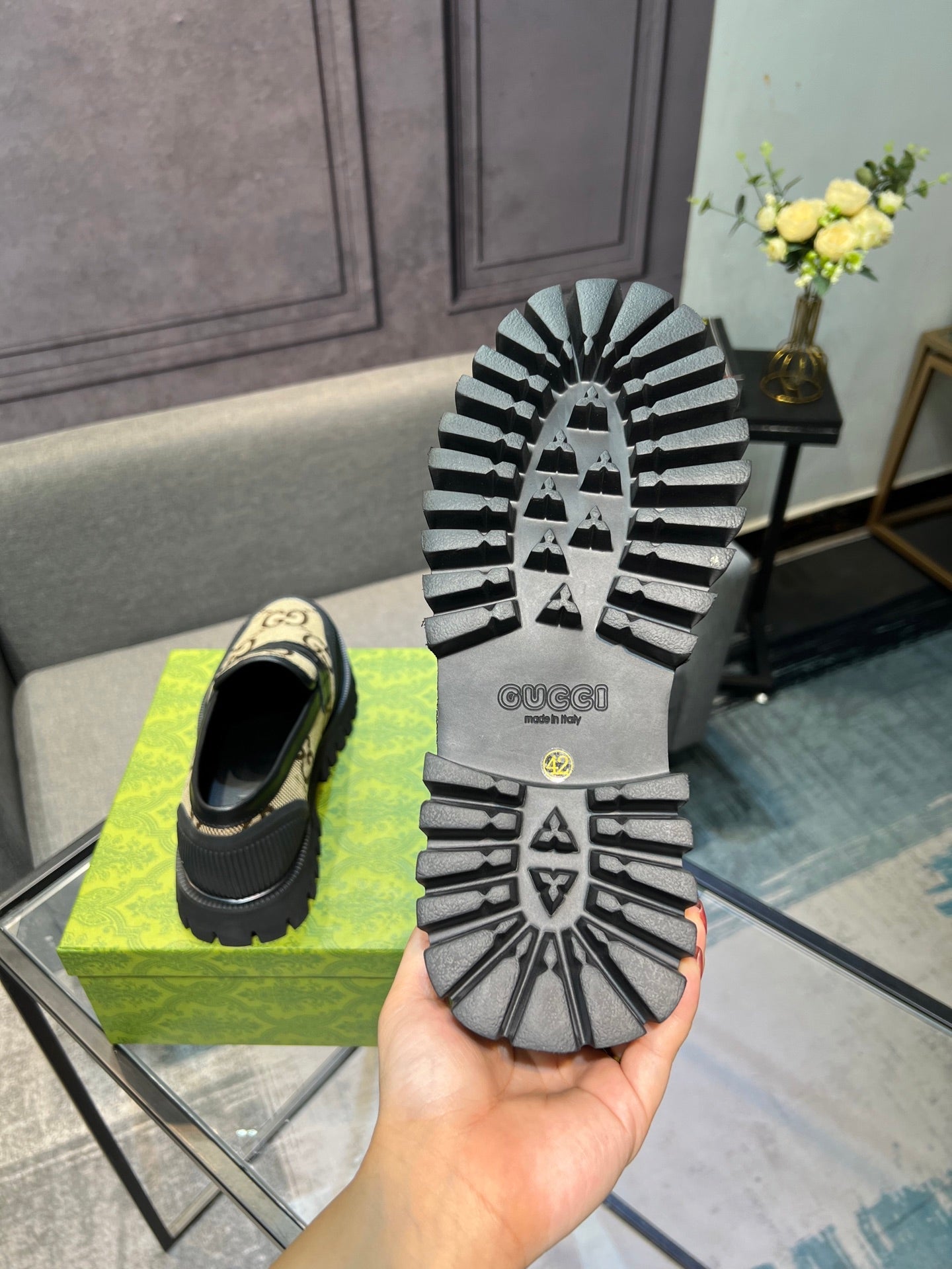 GG Men's Loafer Green Cowhide 731293