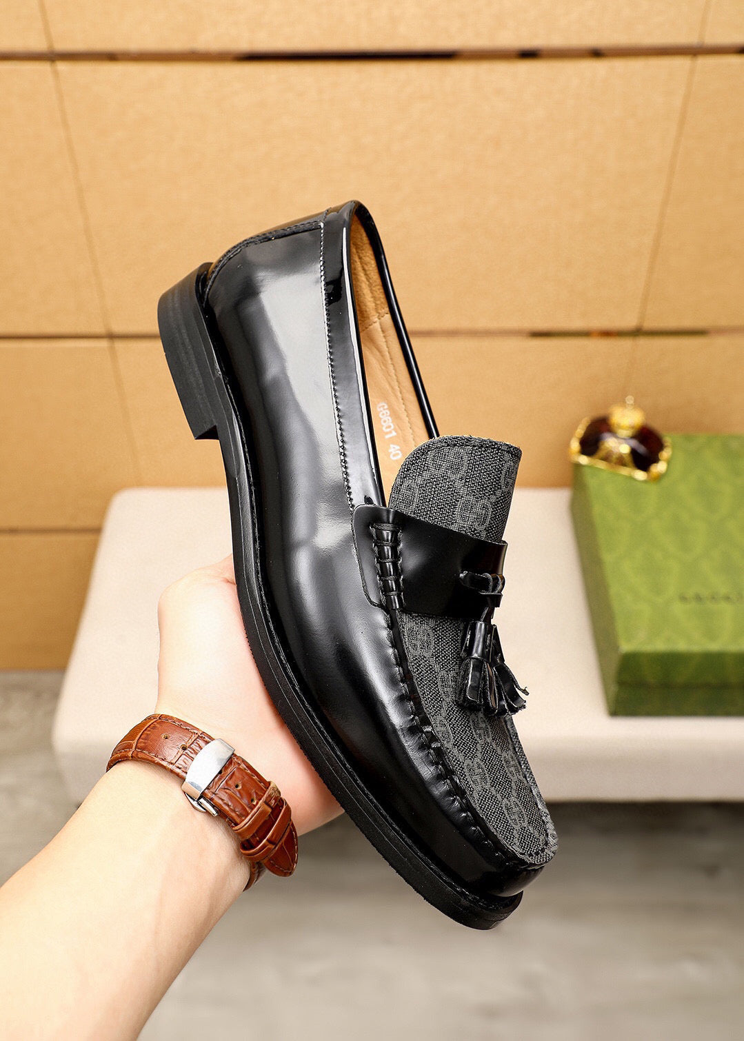 GG Men's Tassel Loafer Black Patent Leather 361345
