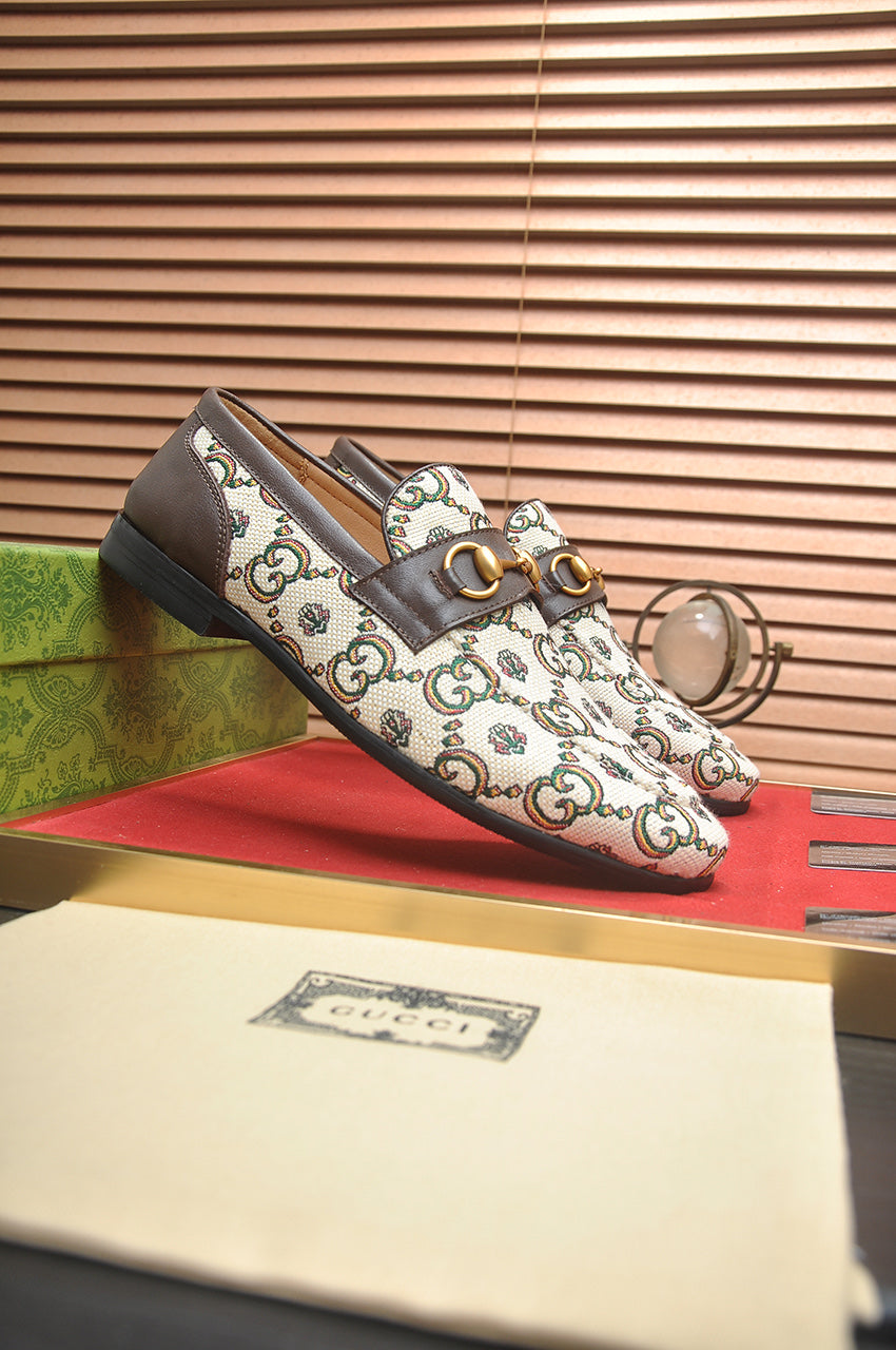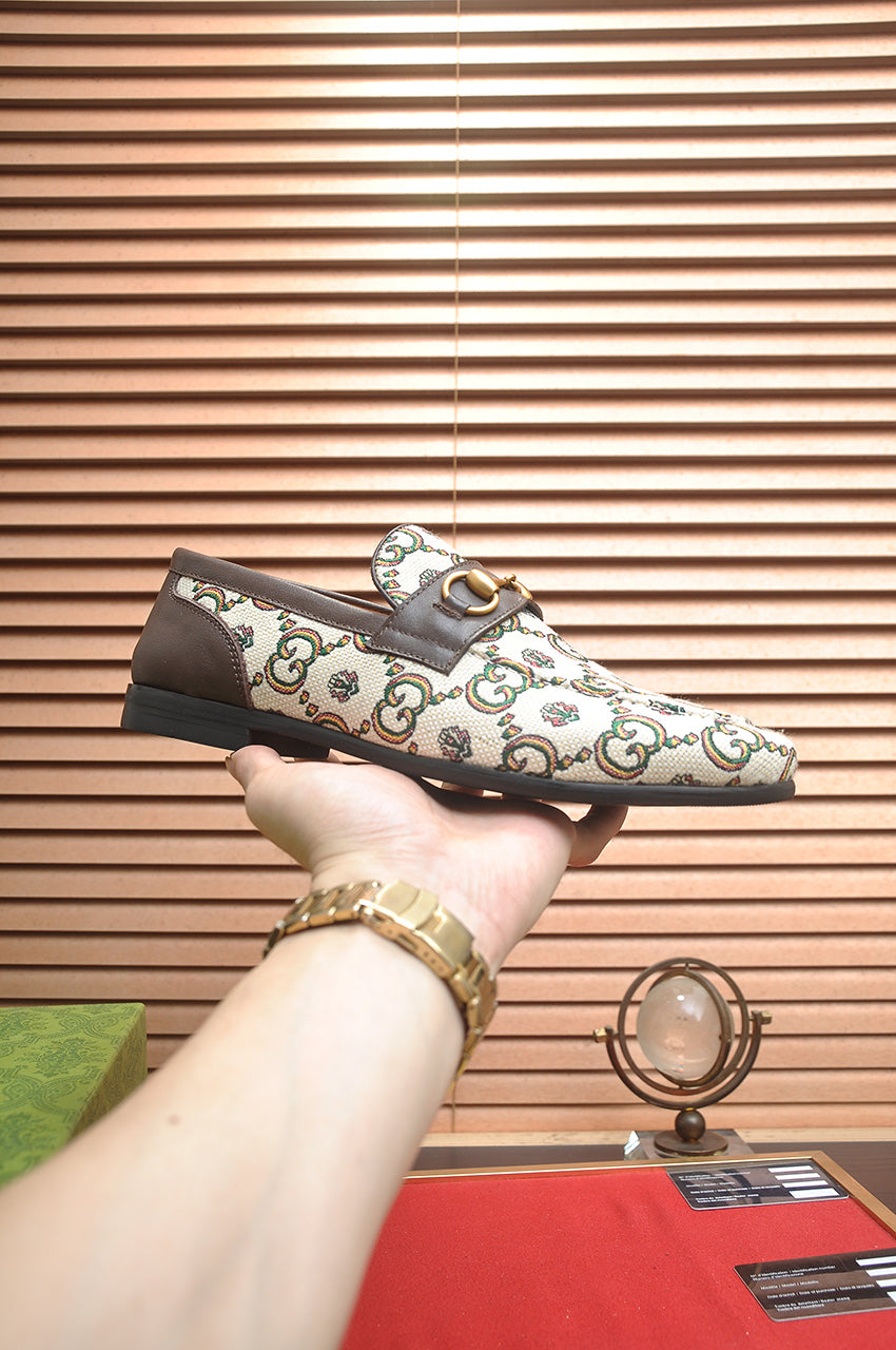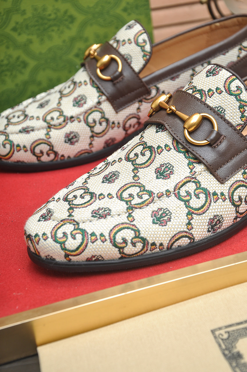 GG Men's Slip on Loafer White Printed Fabric 721523