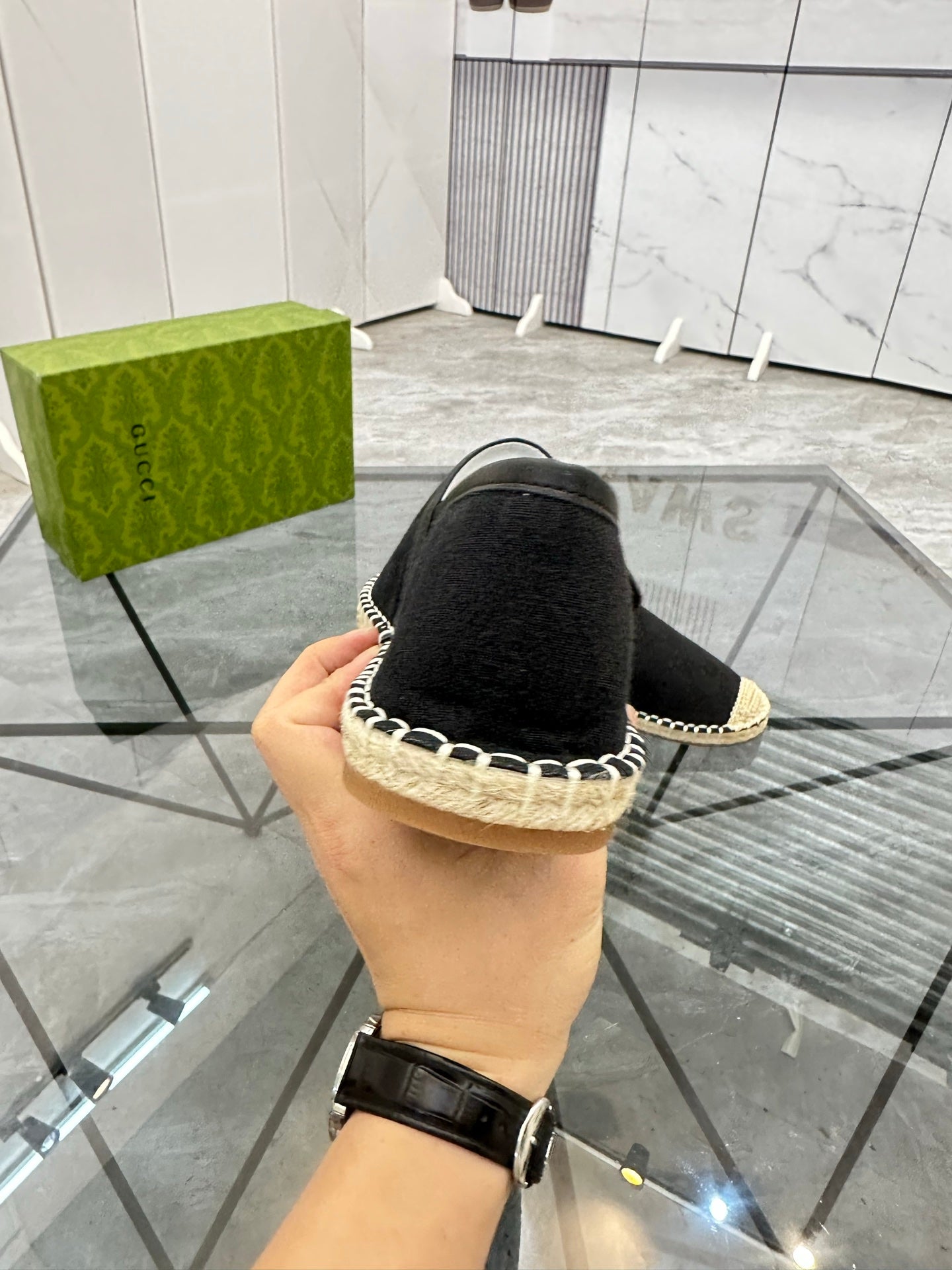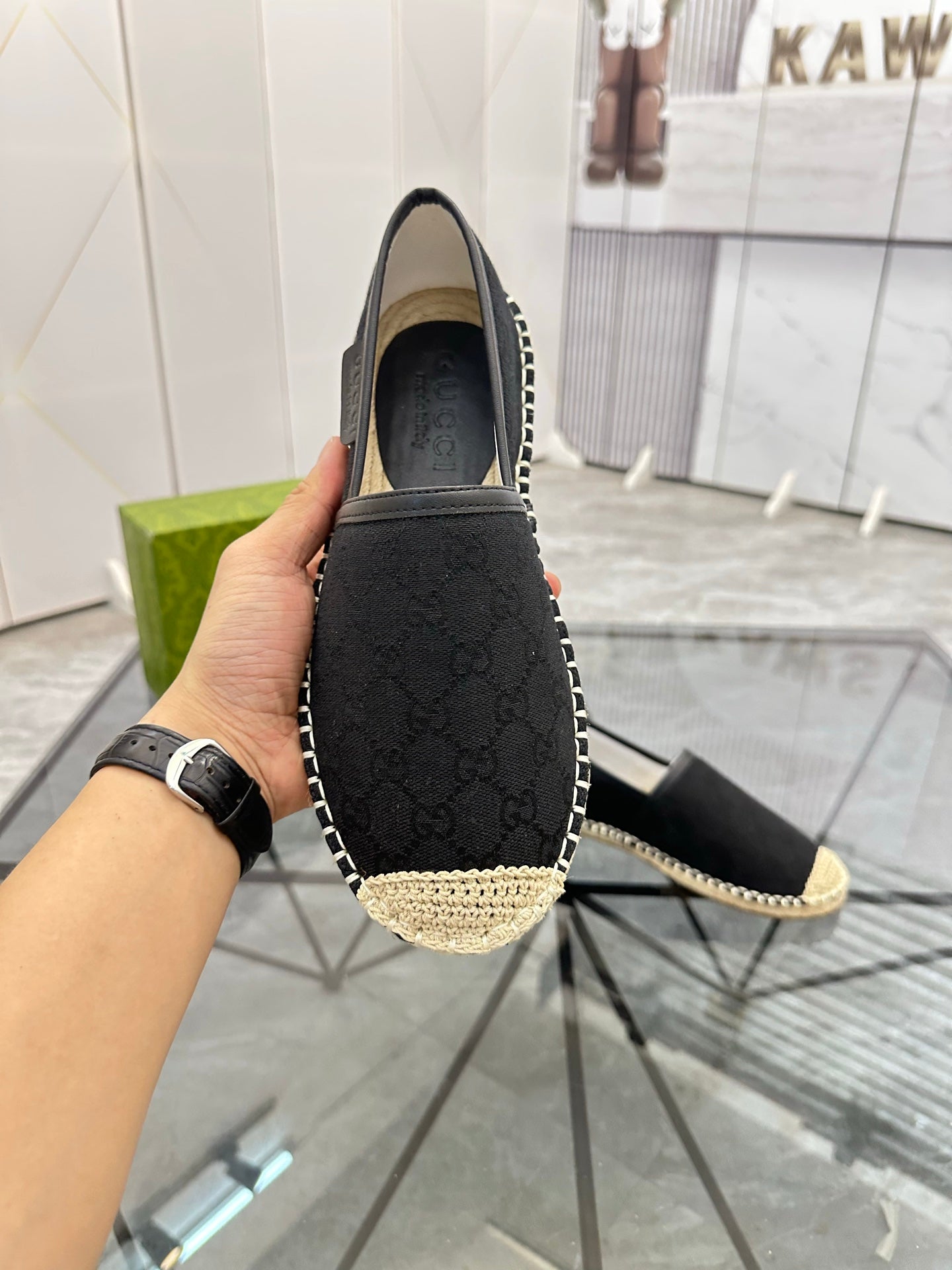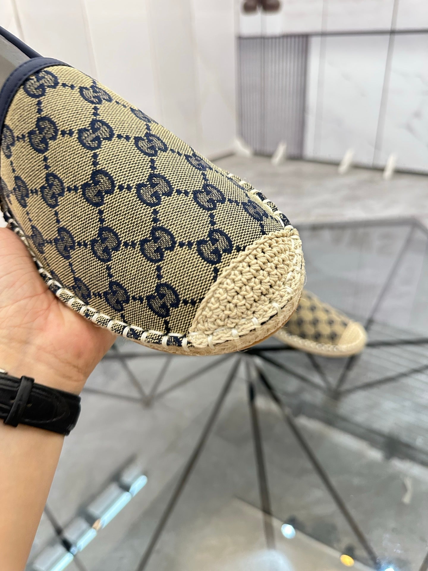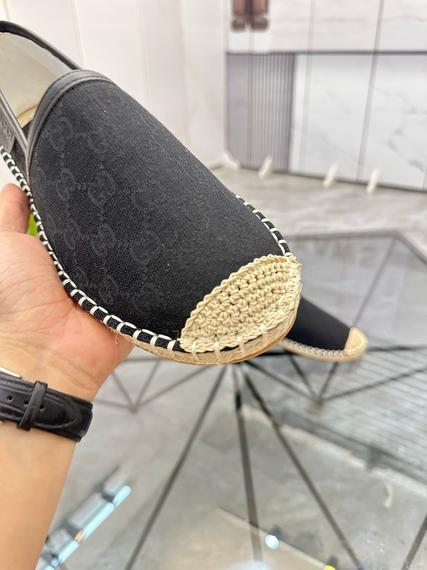 GG Men's Espadrilles Loafer Black Denim 595985