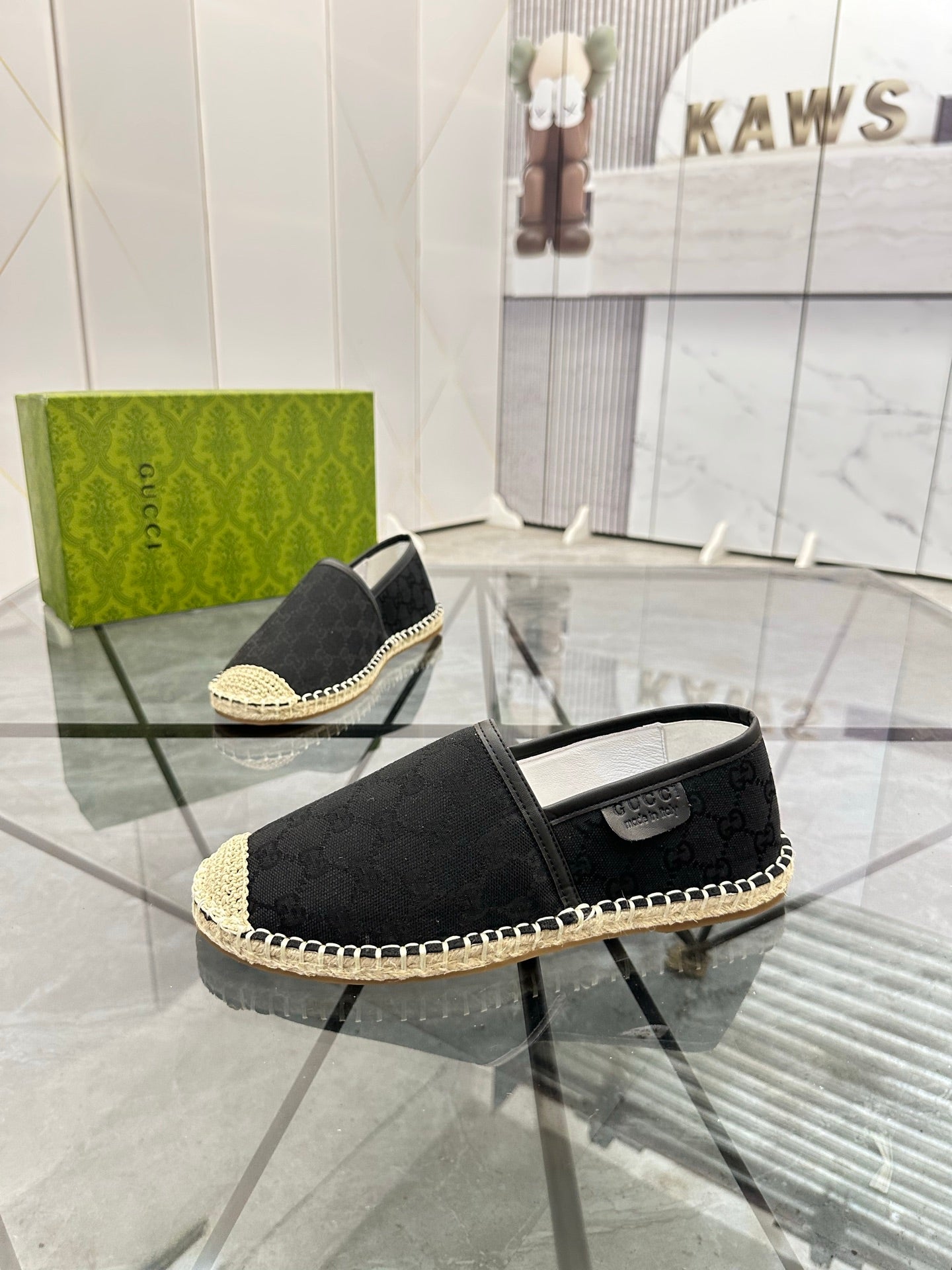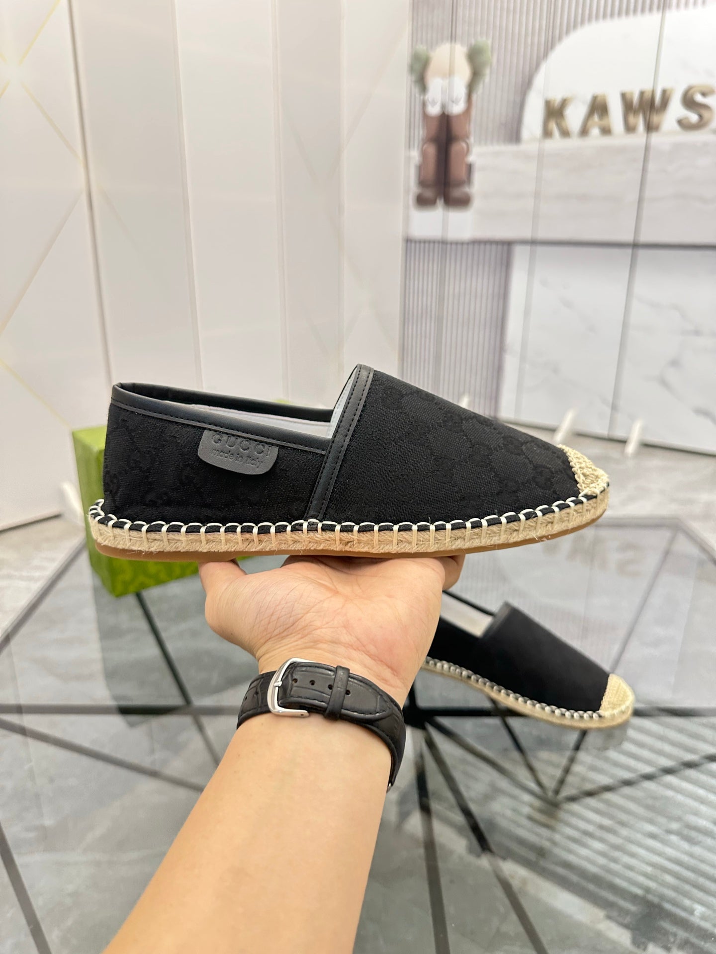 GG Men's Espadrilles Loafer Black Canvas 738107