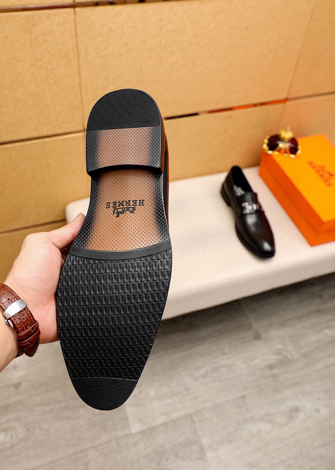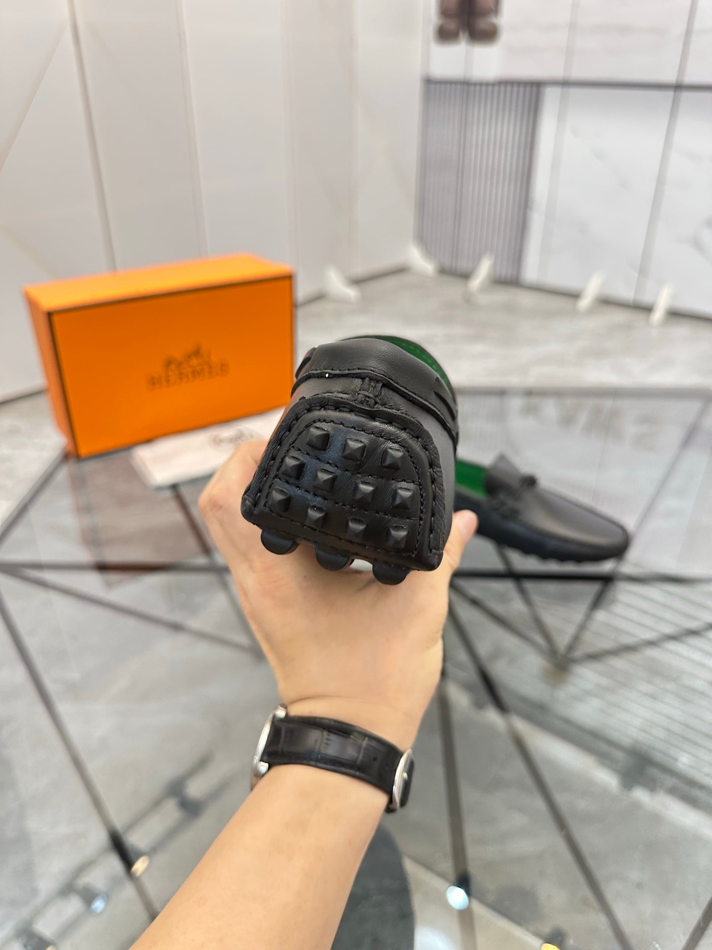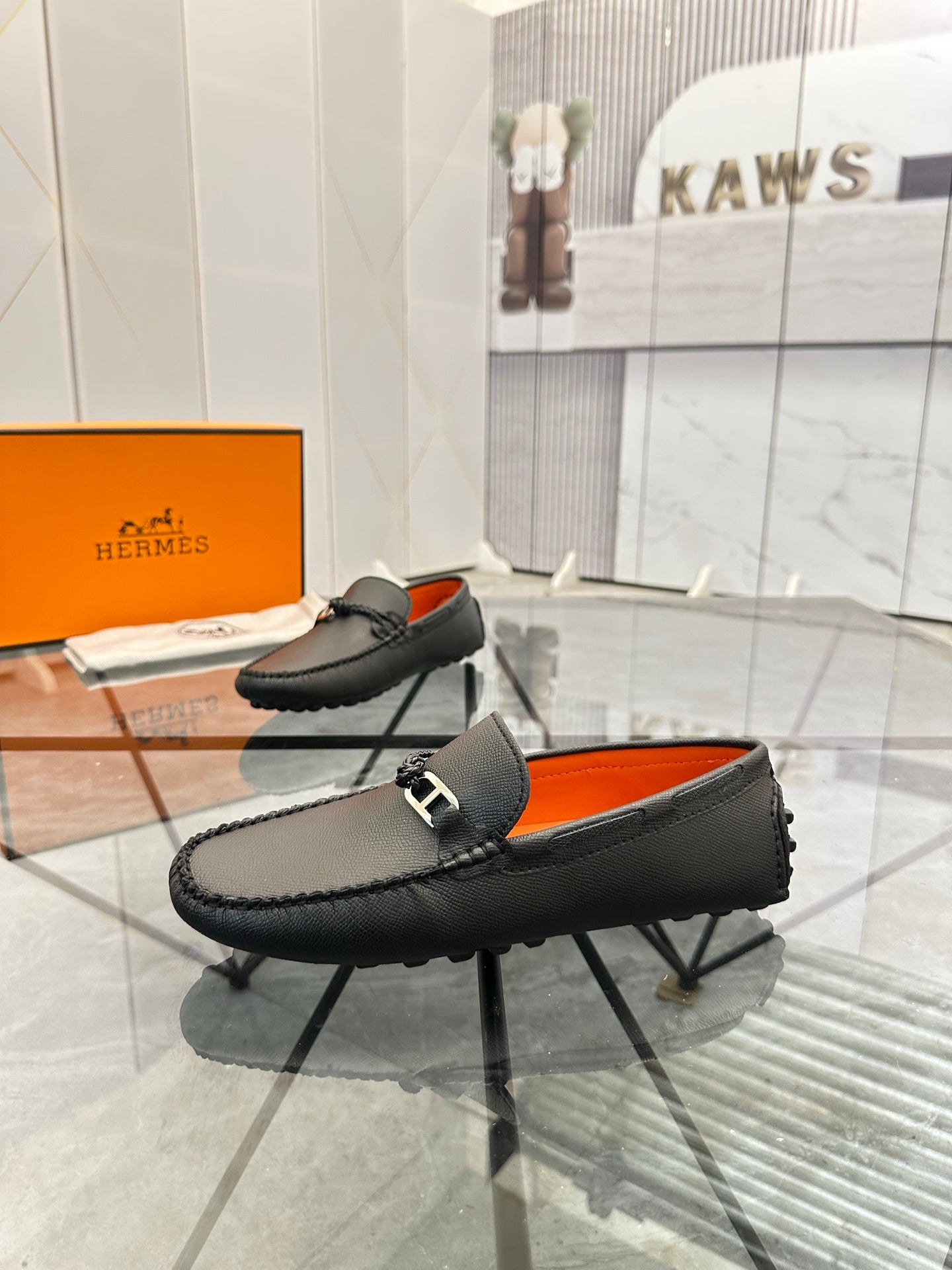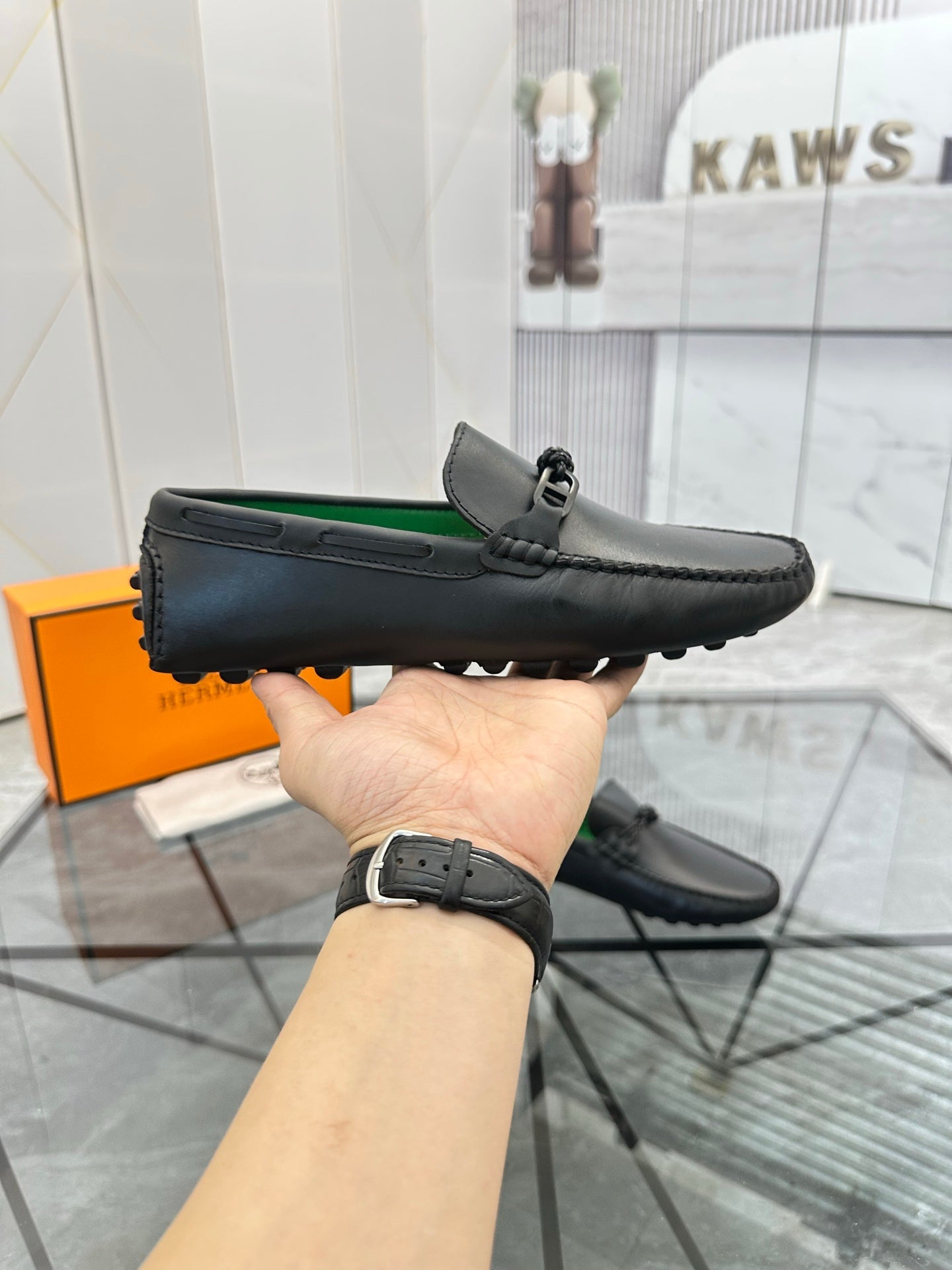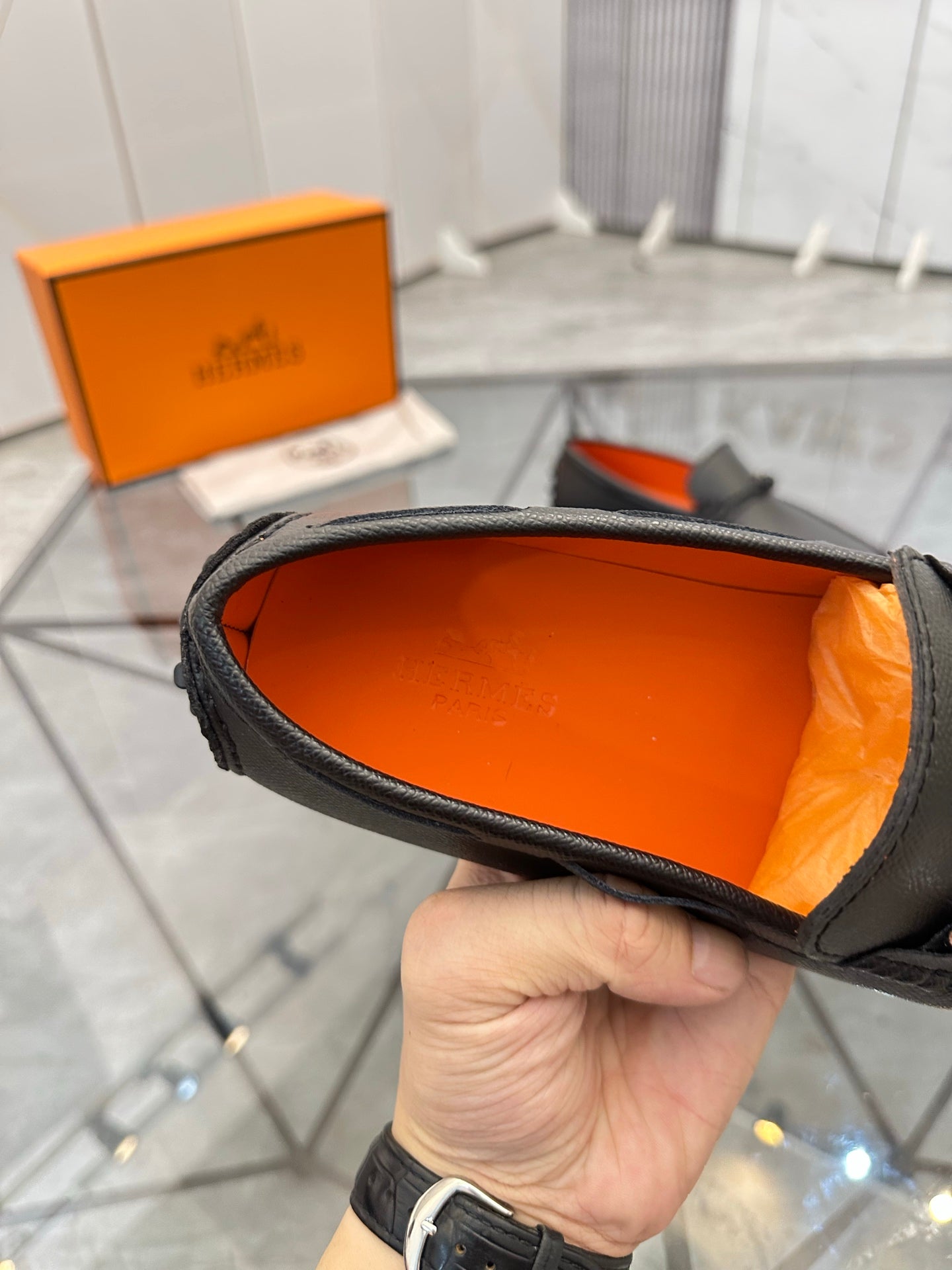 HM Men's Loafers Black Calfskin 679794