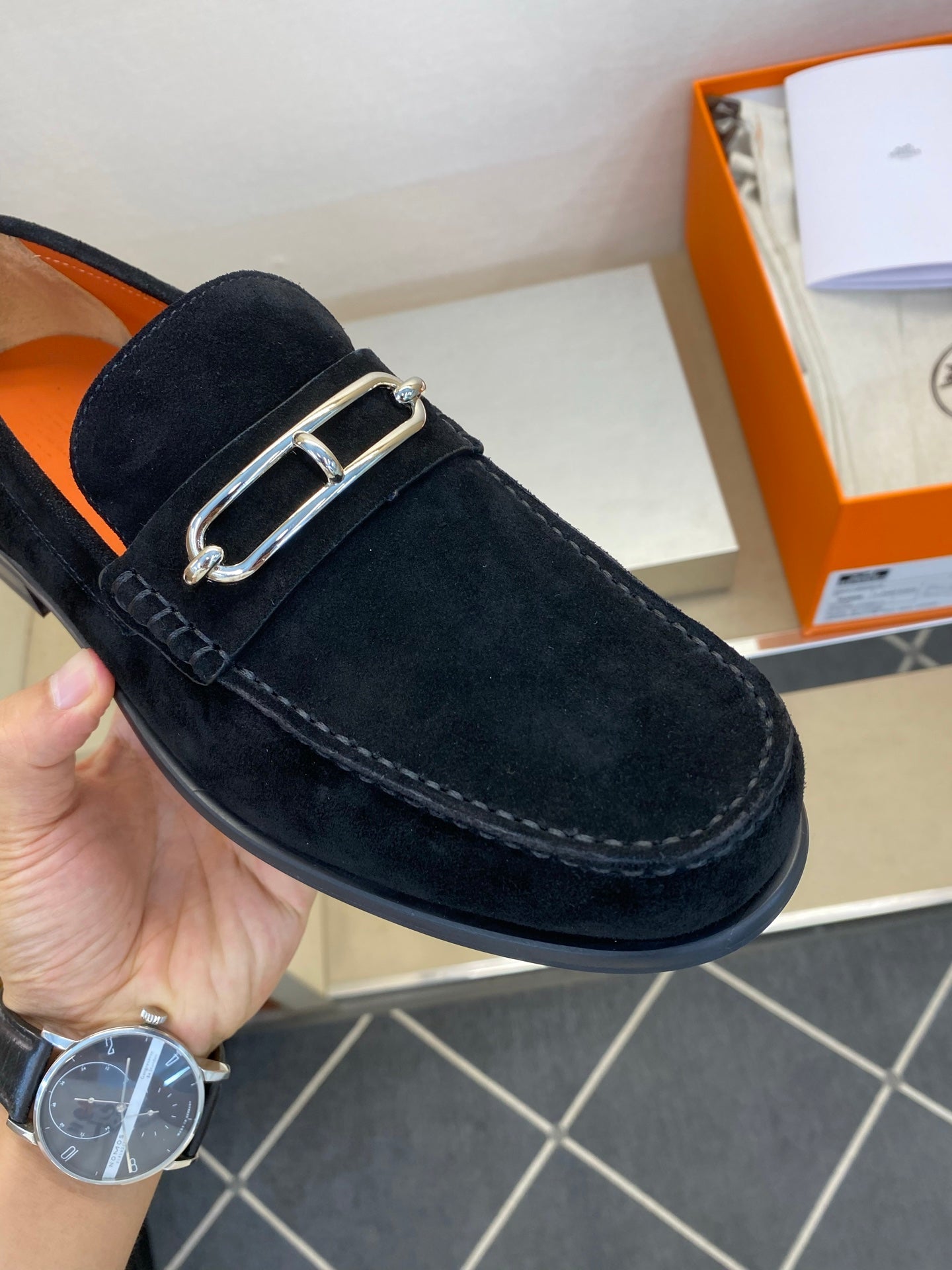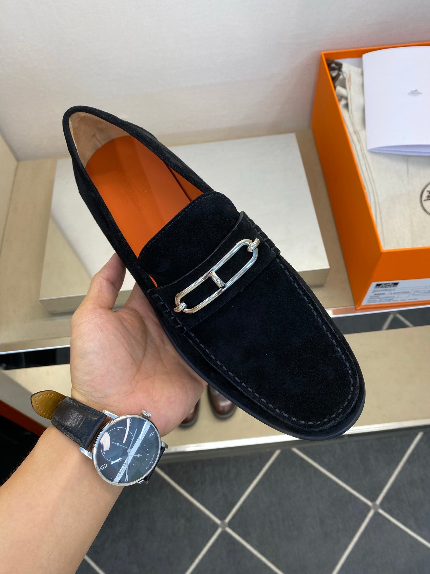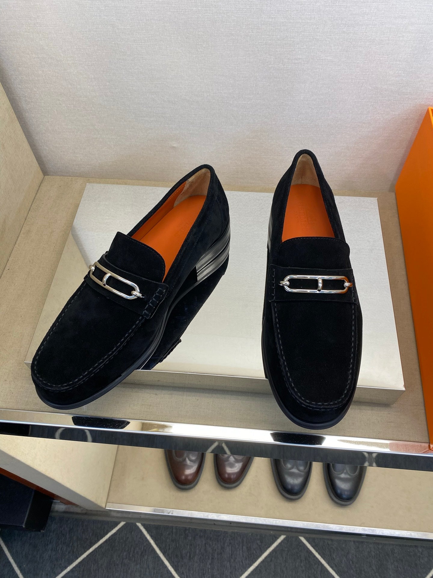 HM Men's Alessandro Loafer Black Orange Embossed Cowhide 697693