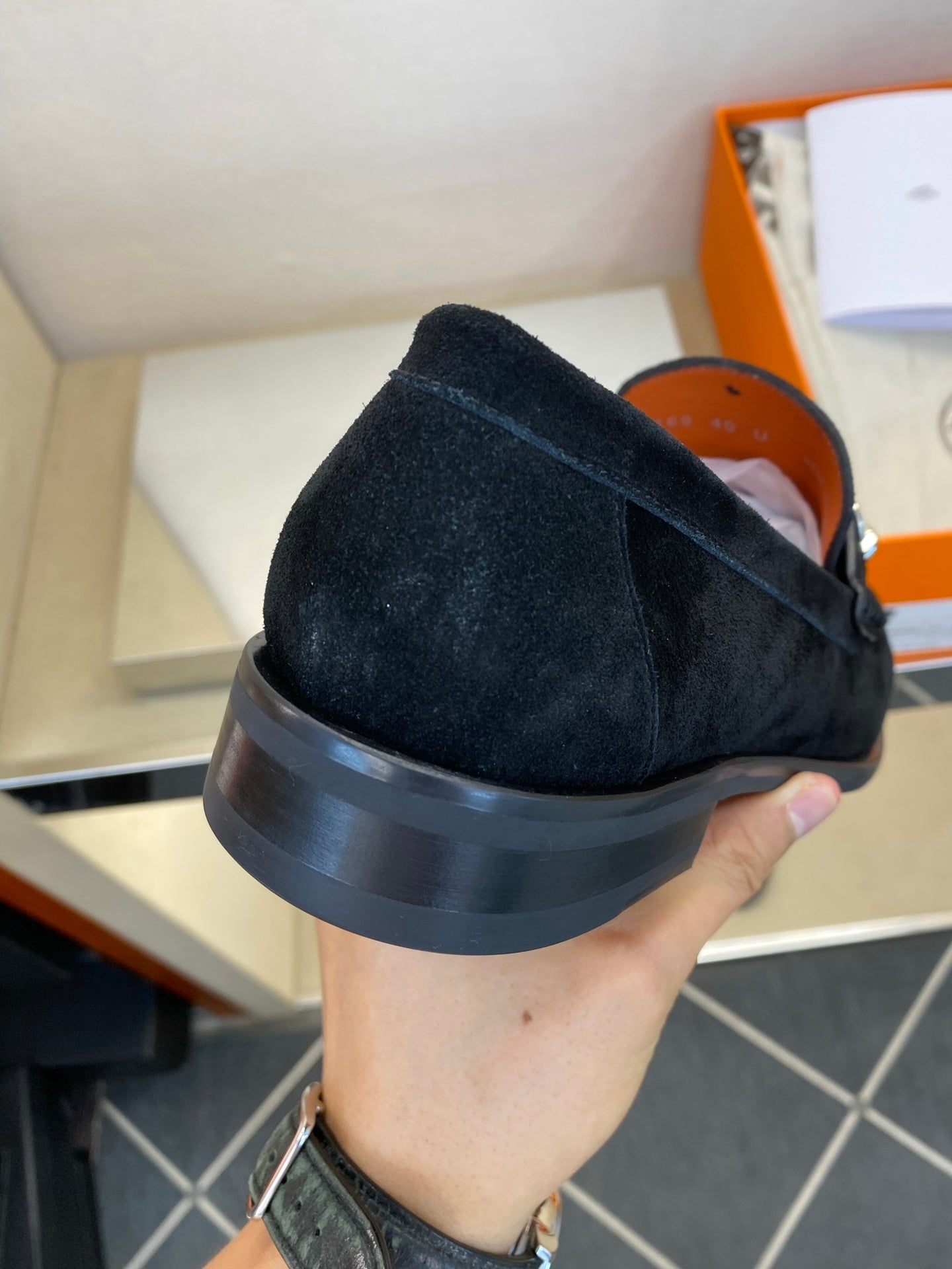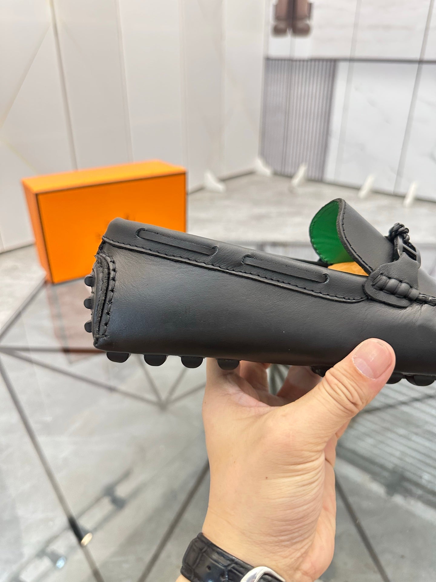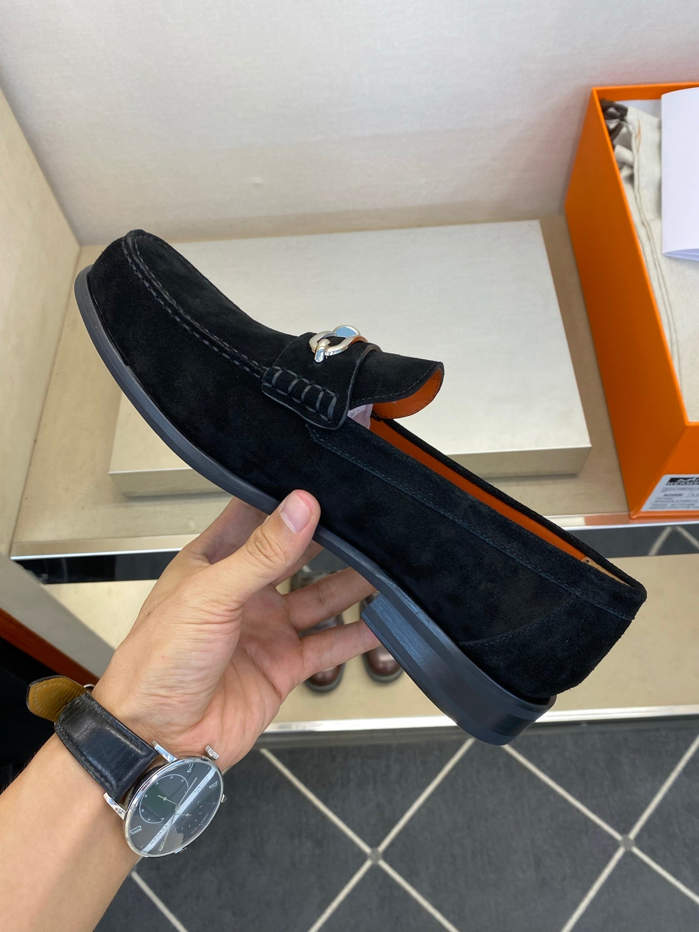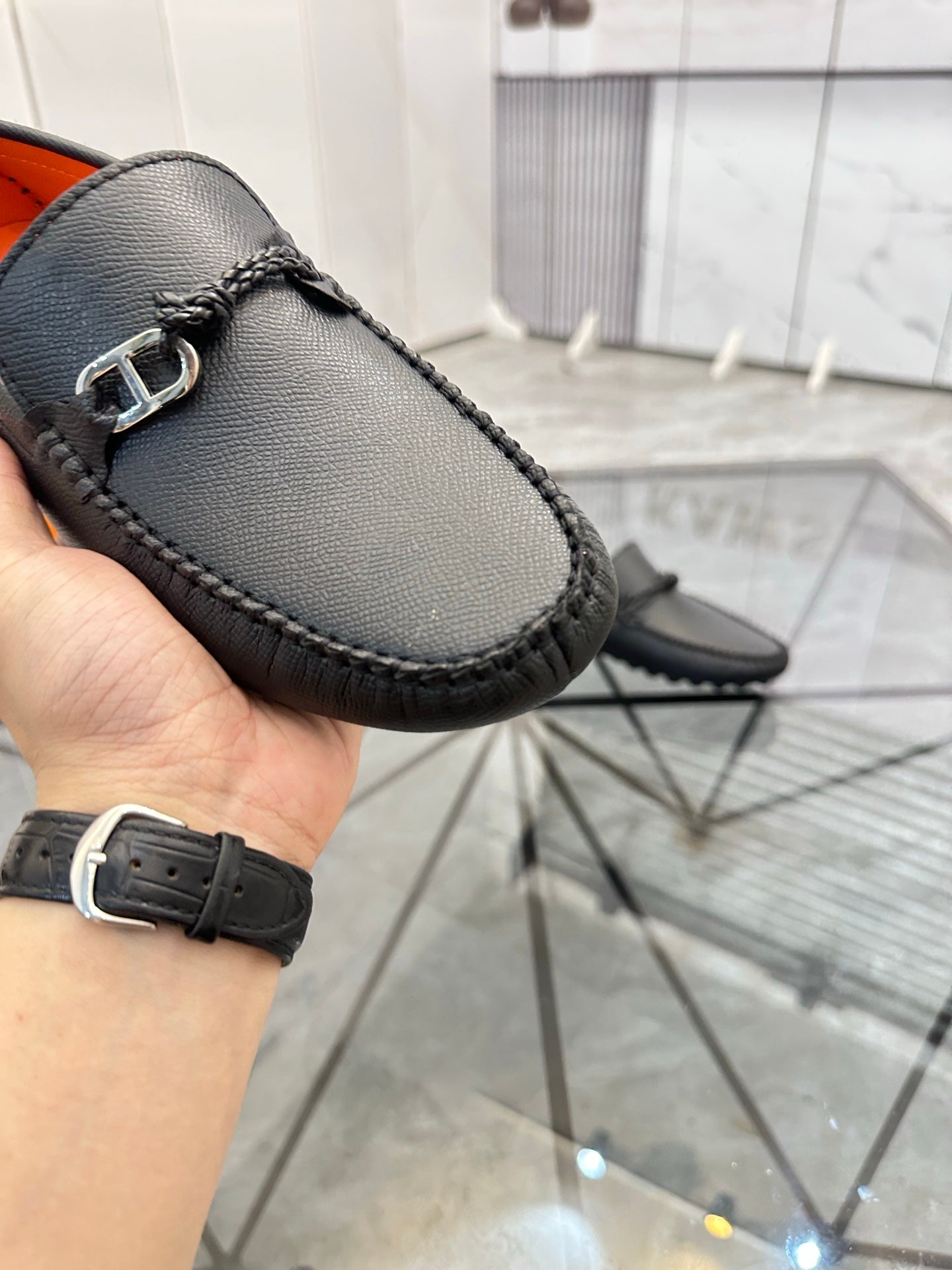 HM Men's Alessandro Loafer Black Orange Embossed Cowhide 697693