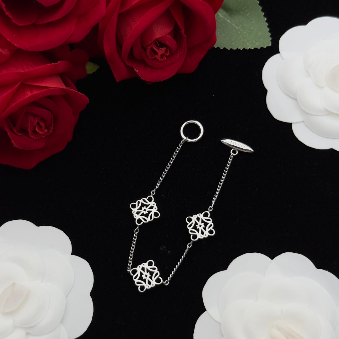PAVED ANAGRAM DOUBLE CHAIN SILVER BRACELET