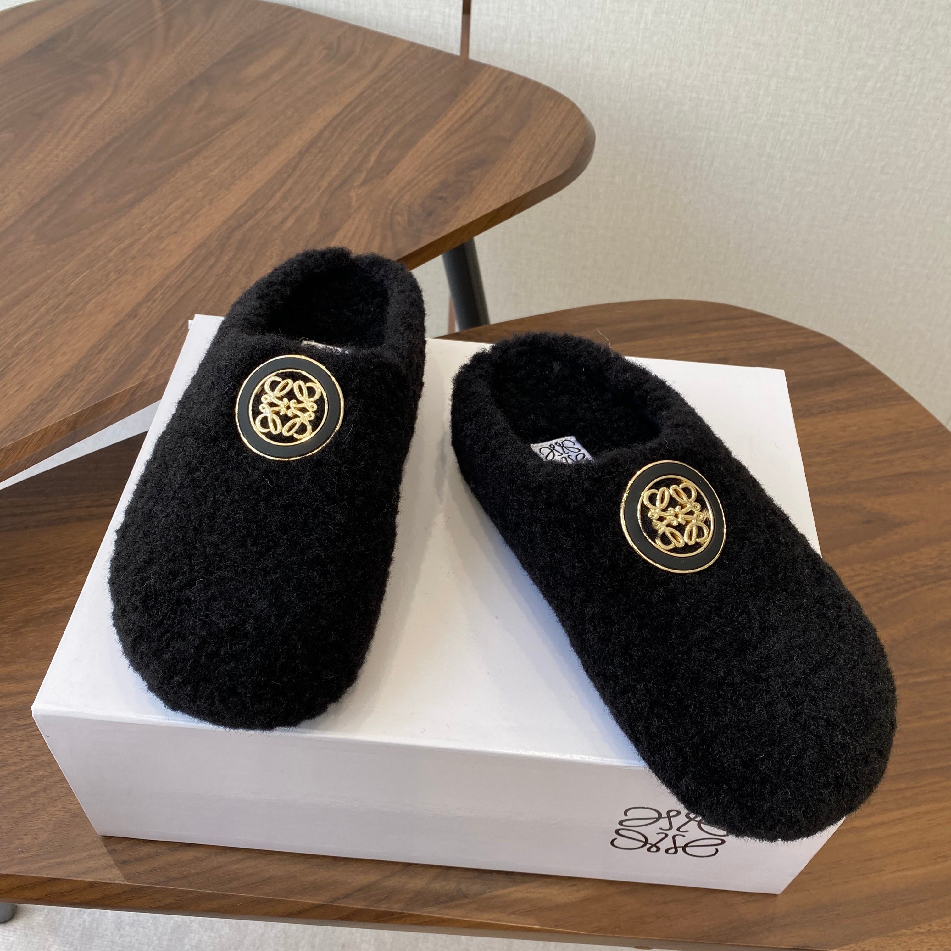 Loewe slippers black leather wool 477788