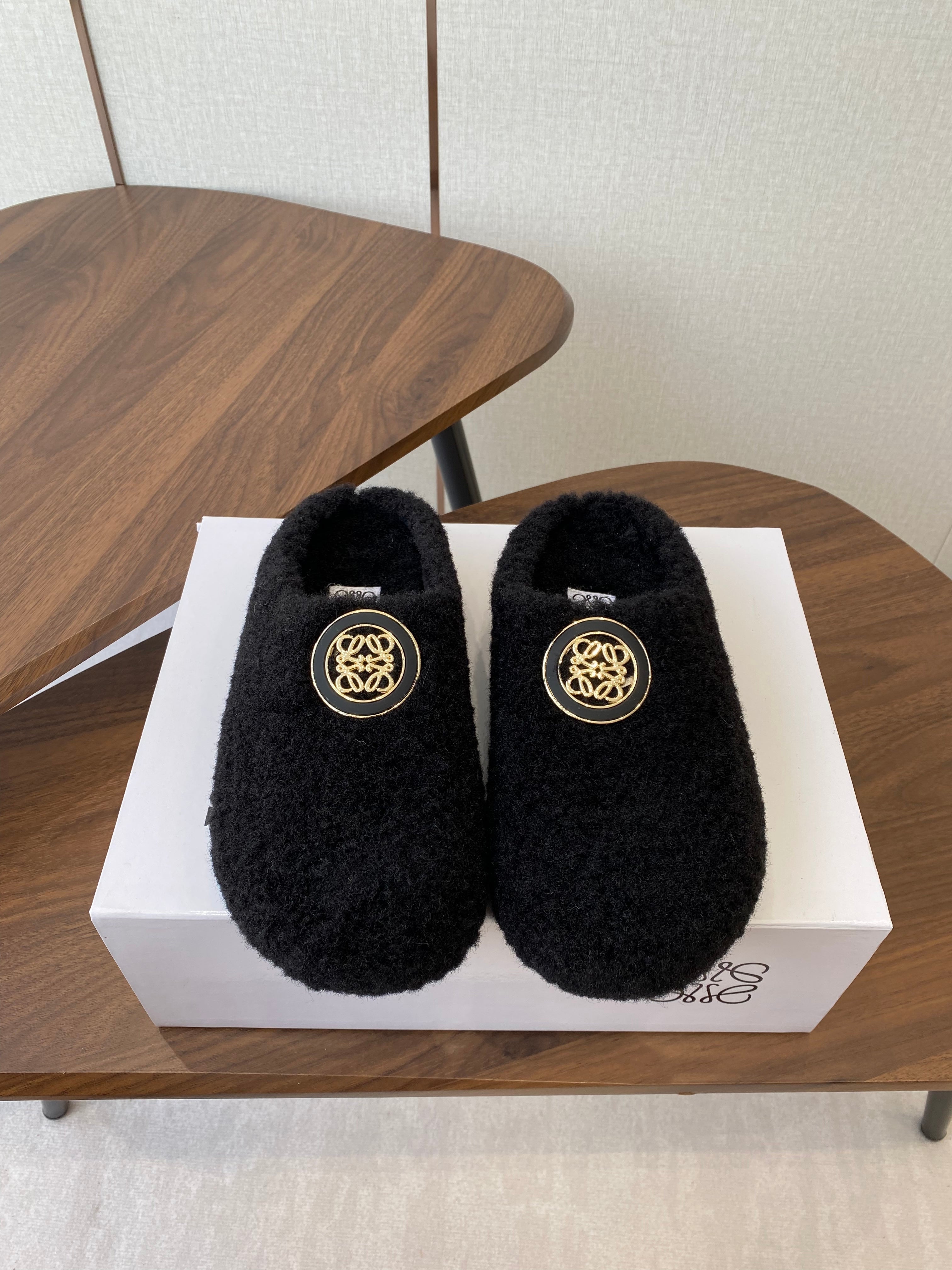 Loewe 2025 Fur Slipper Black White Wool 556016