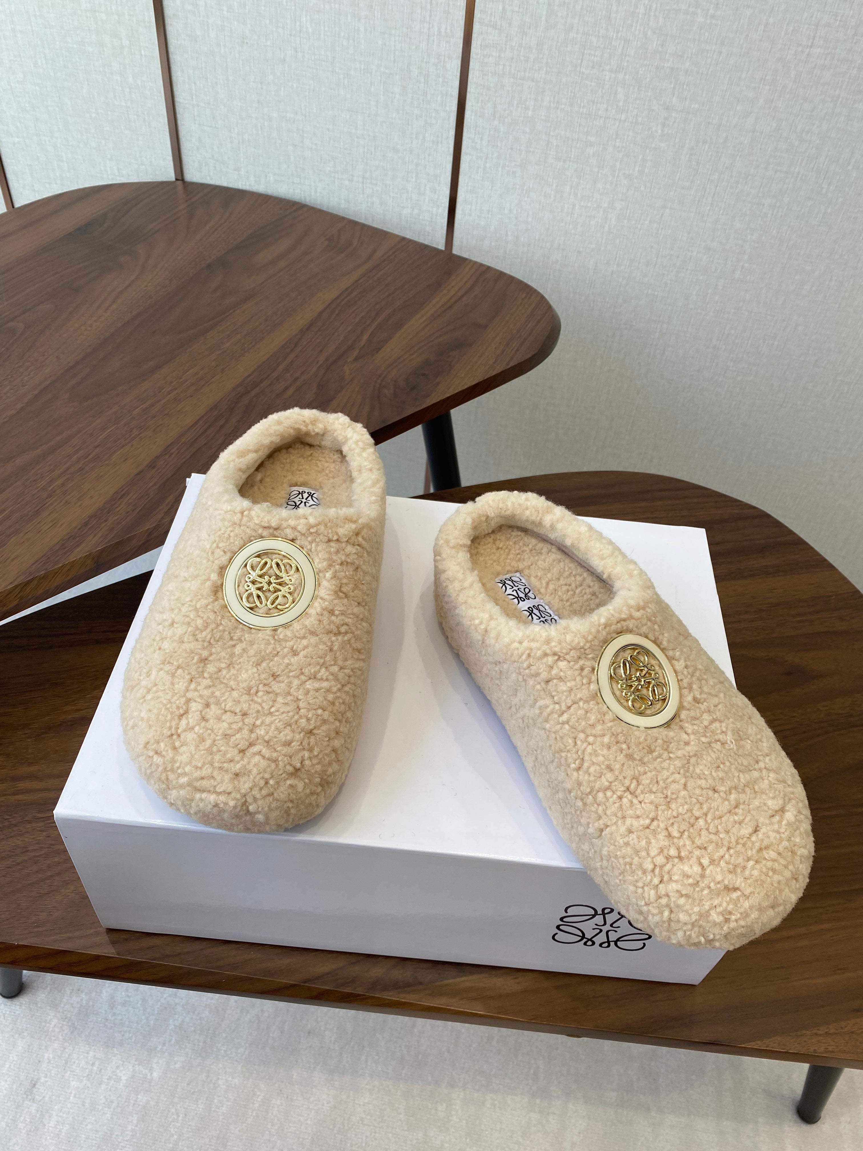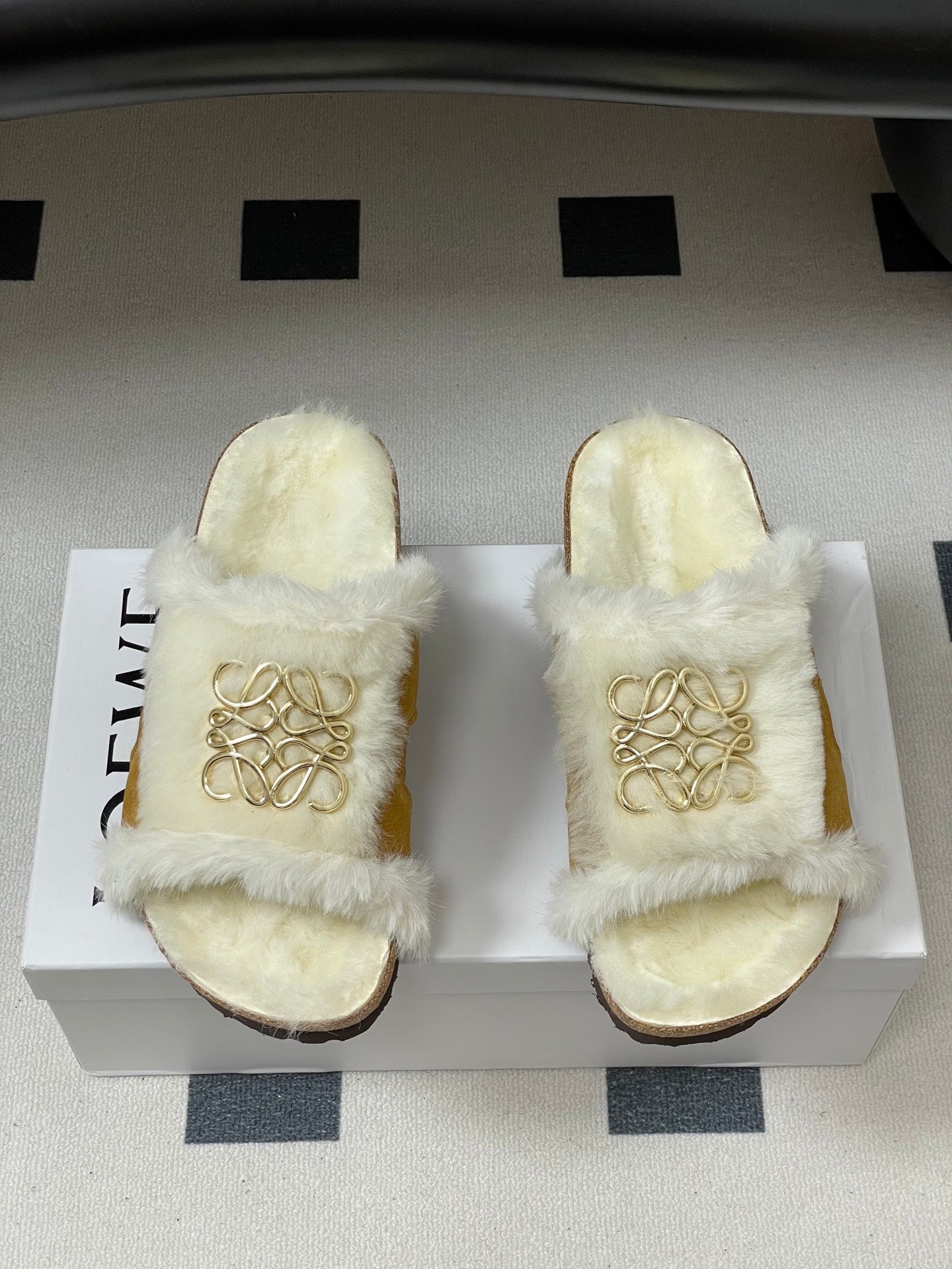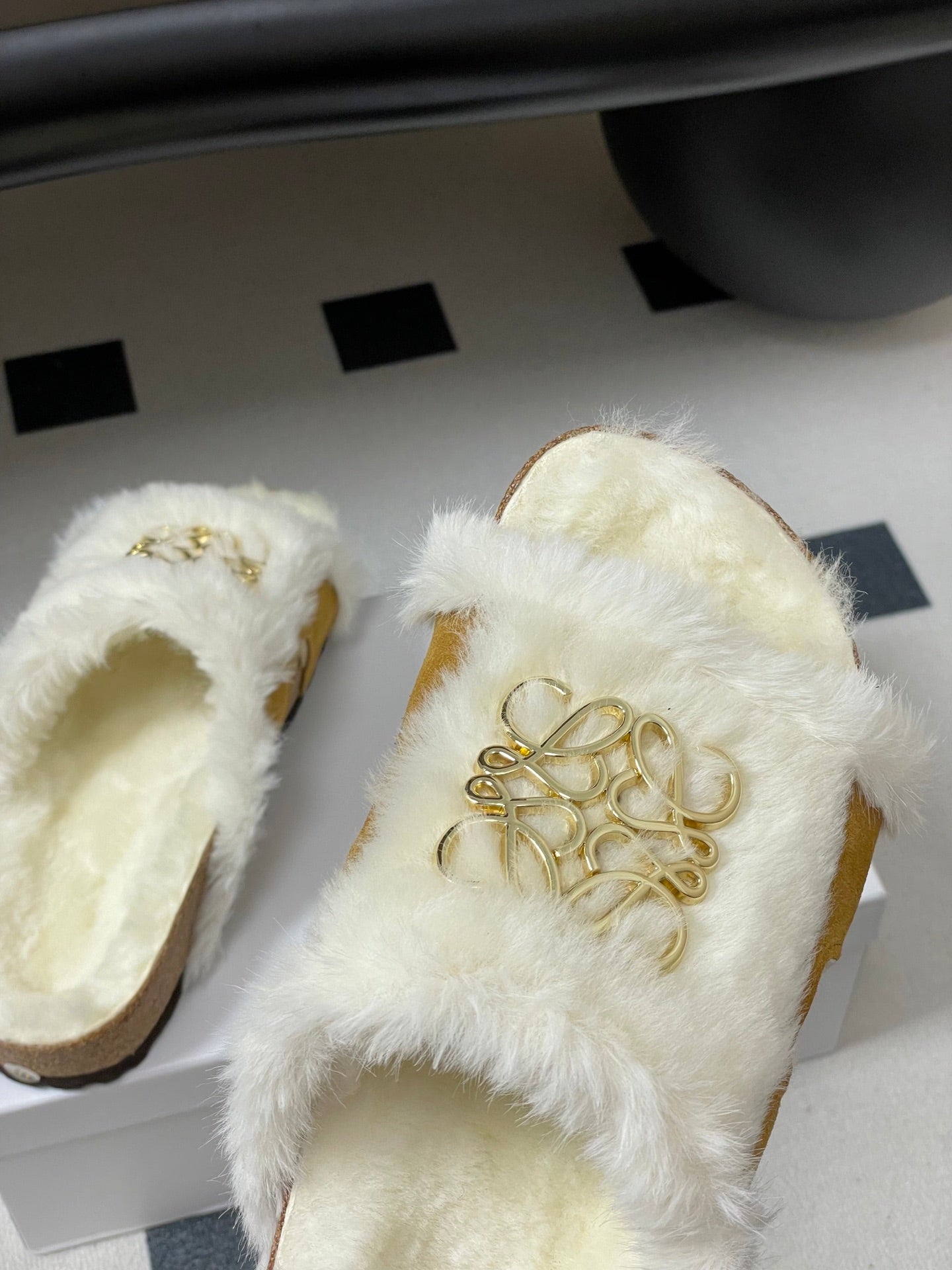 Loewe 2025 Fur Slipper Beige Wool 556017