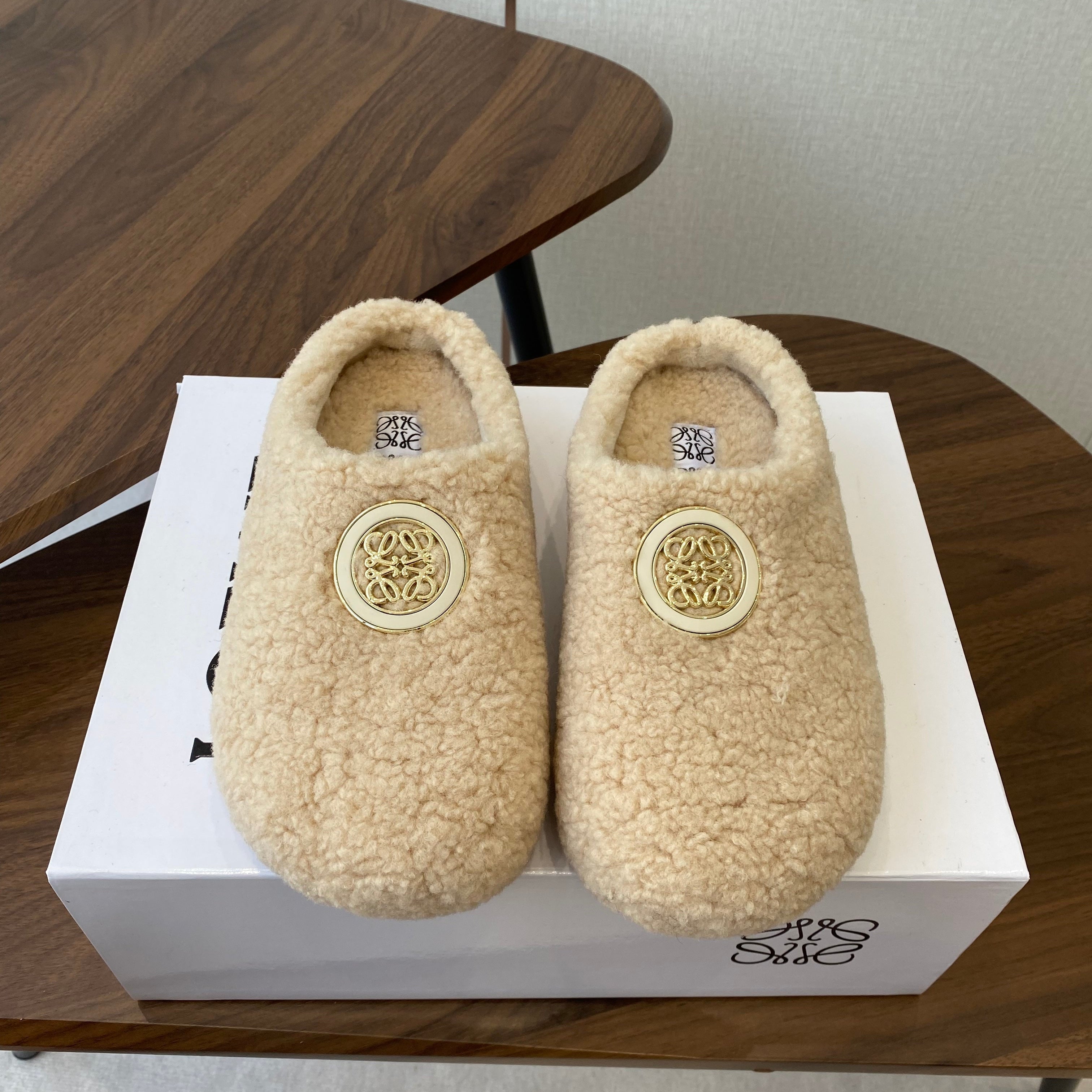 Loewe slippers white leather wool 477789