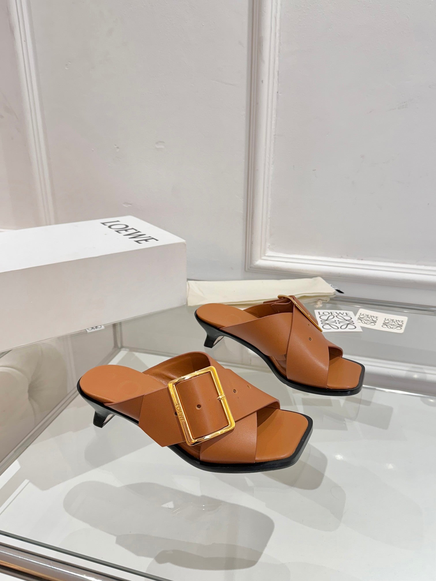 Loewe 2025 Slipper With A Buckle Strap Brown Fur Leather 556054