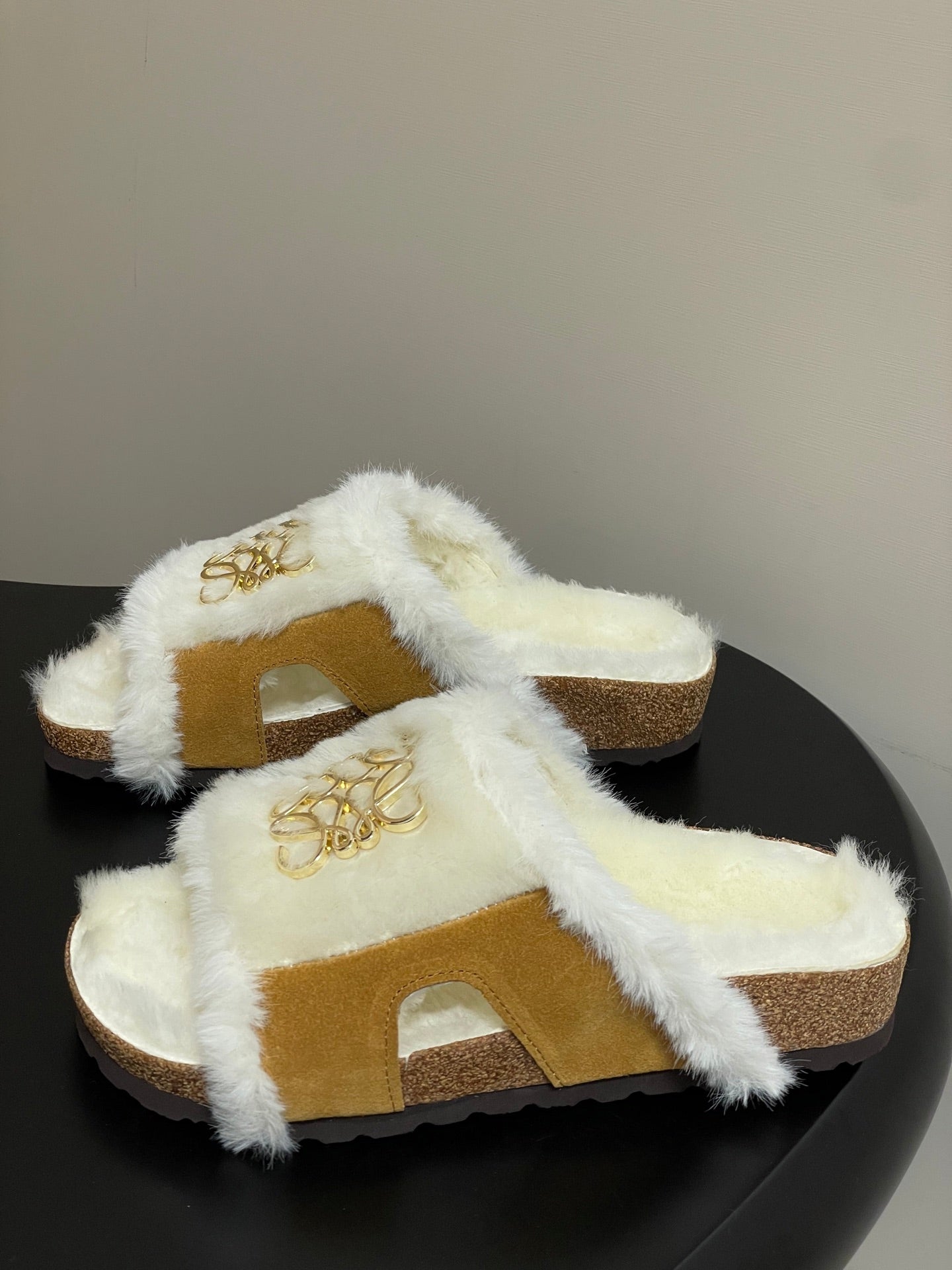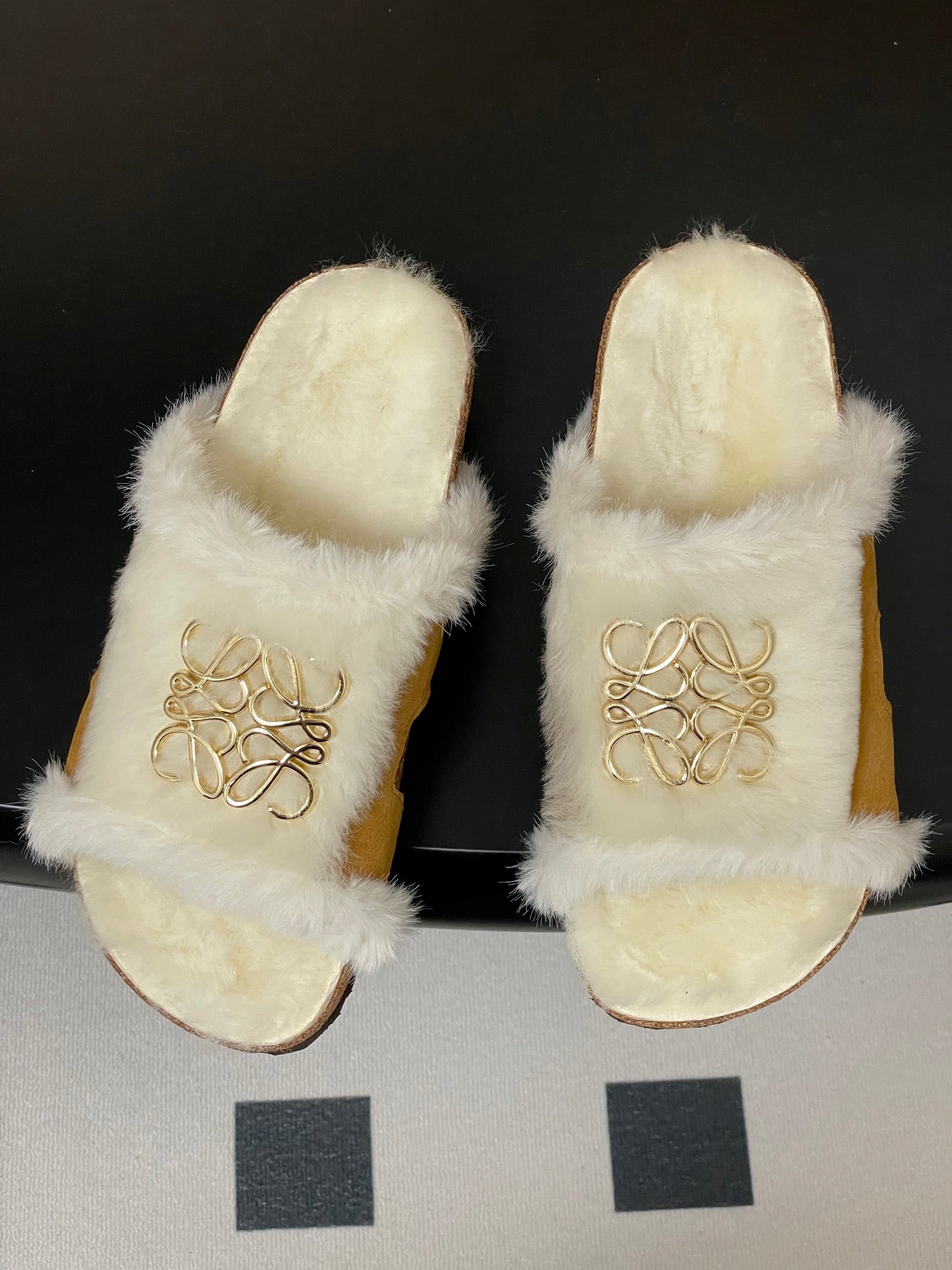 Loewe 2025 Fur Slipper Brown Beige Wool 556013