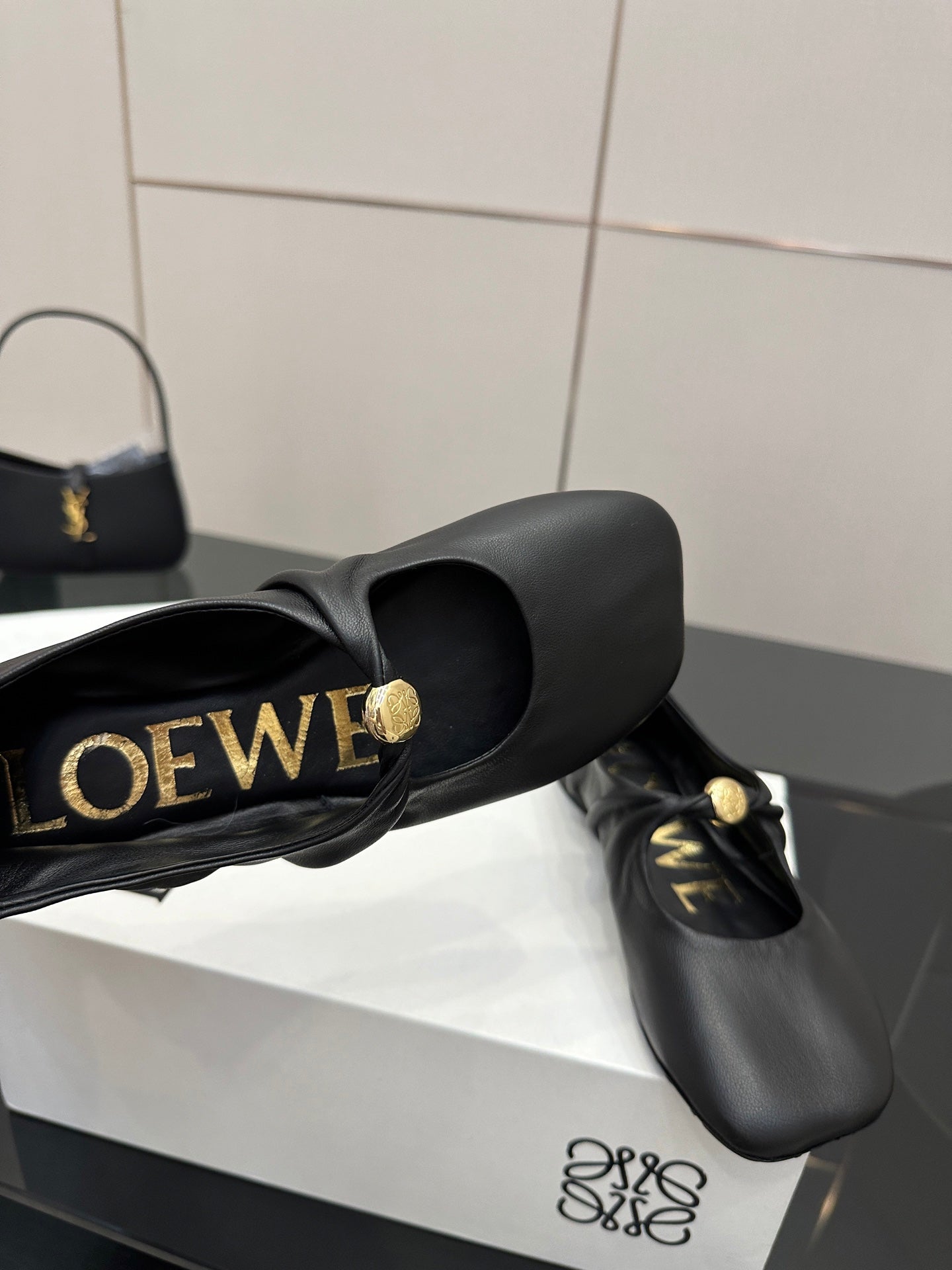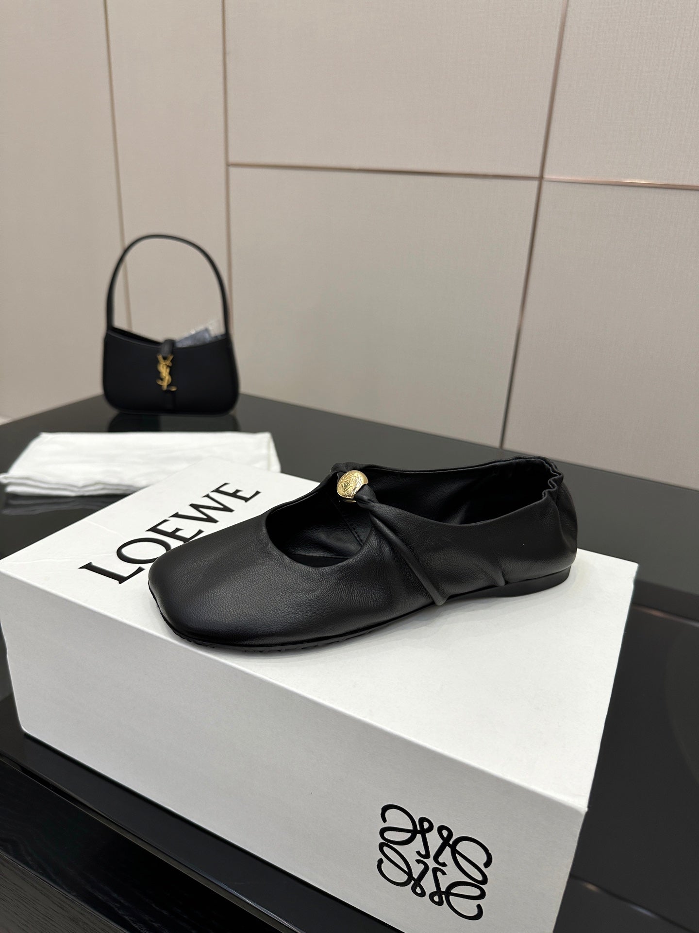 Loewe 25 Pebble Ballet Flats Black Calfskin