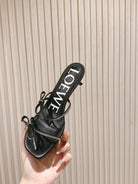 Loewe 25 Petal Bow Sandals Black Cowhide PVC