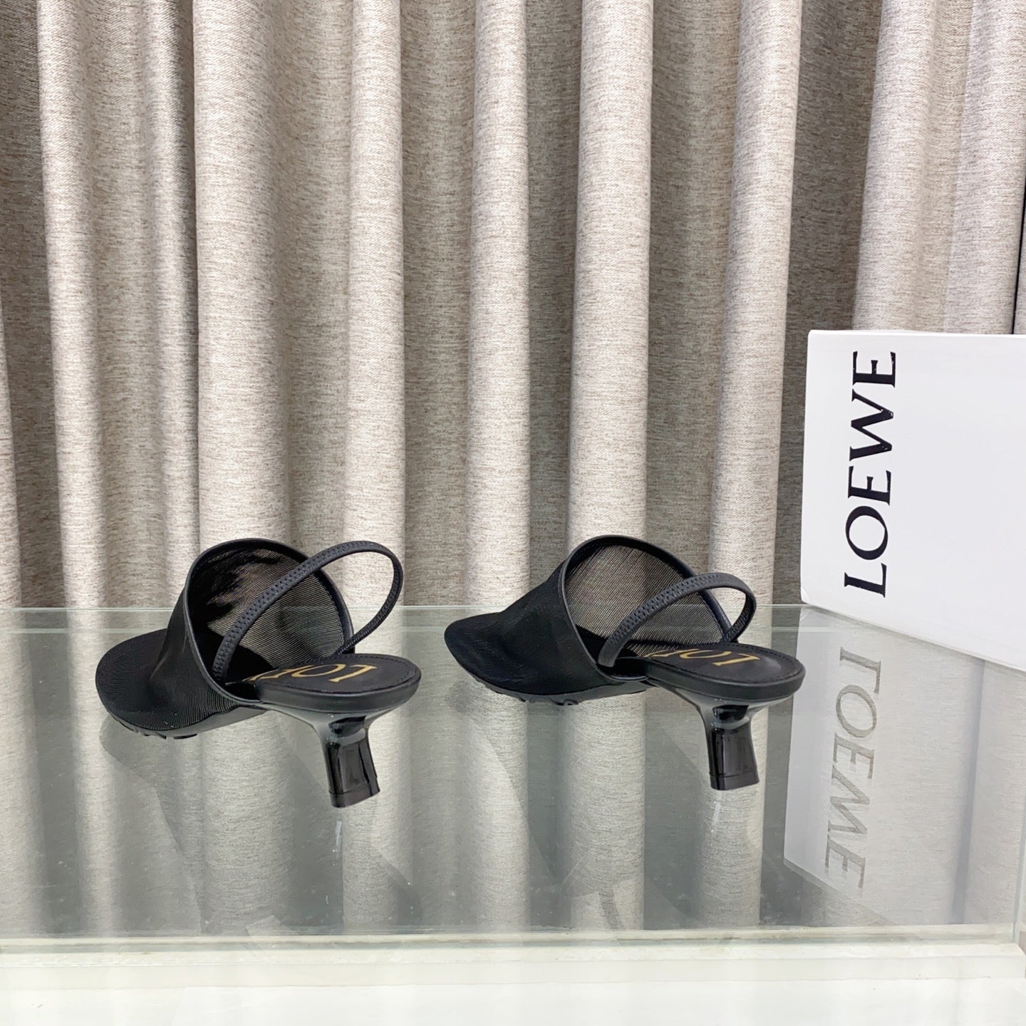 Loewe 25 Petal Slingback Black Mesh Sheepskin