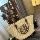 LOE SMALL ANAGRAM BASKET 28 BAG IN NATURAL MIX BROWN IRACA PALM AND CALFSKIN