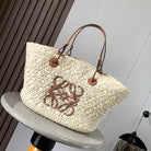 Medium anagram basket bag in iraca palm and calfskin