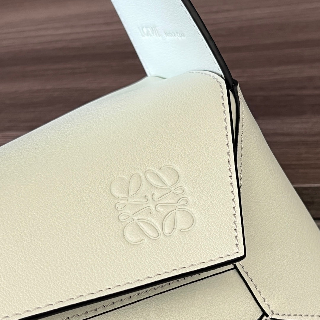 Mini Puzzle bag in soft grained 18cm White and Tan Calfskin