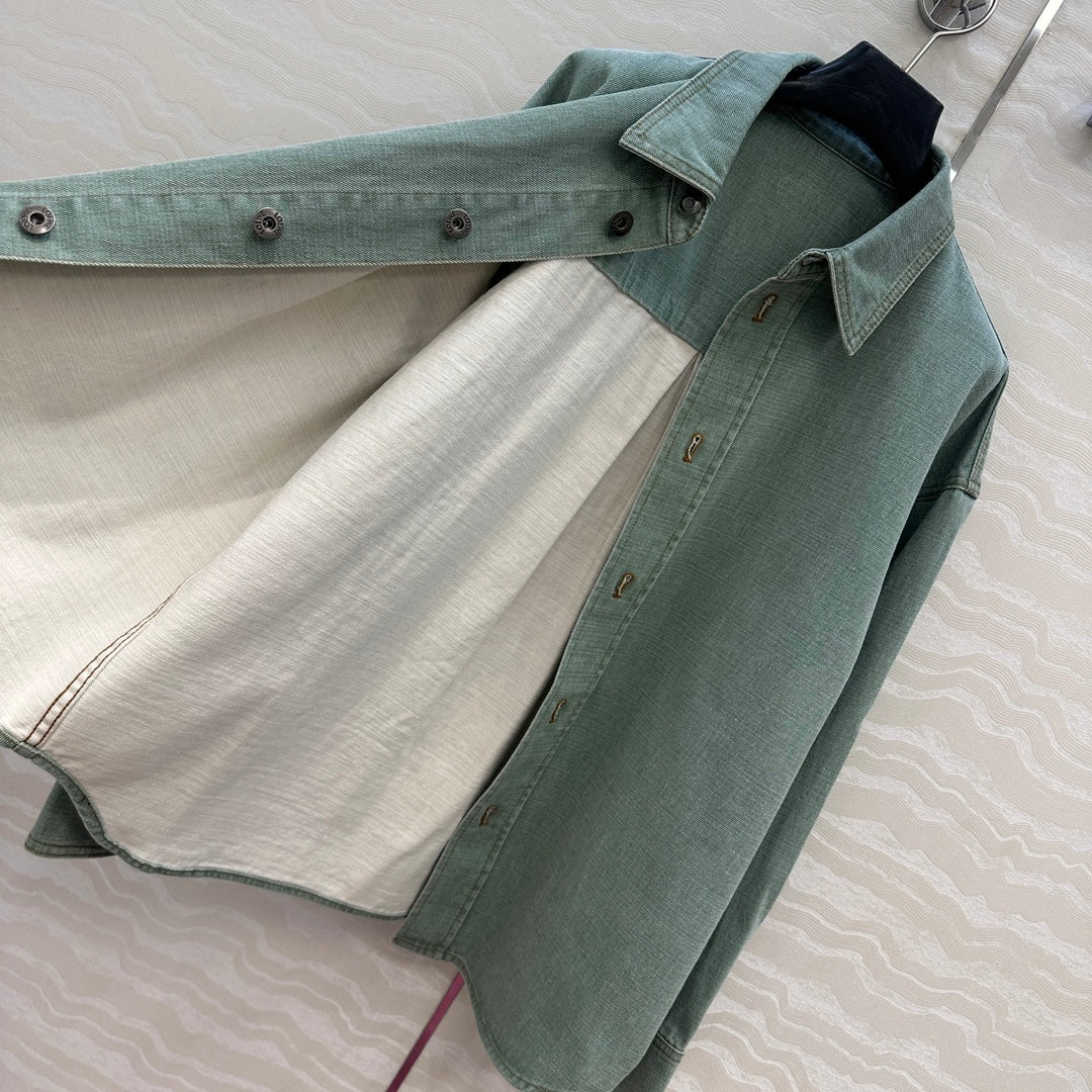 Loewe A-line Denim Shirt Jacket Green Cotton