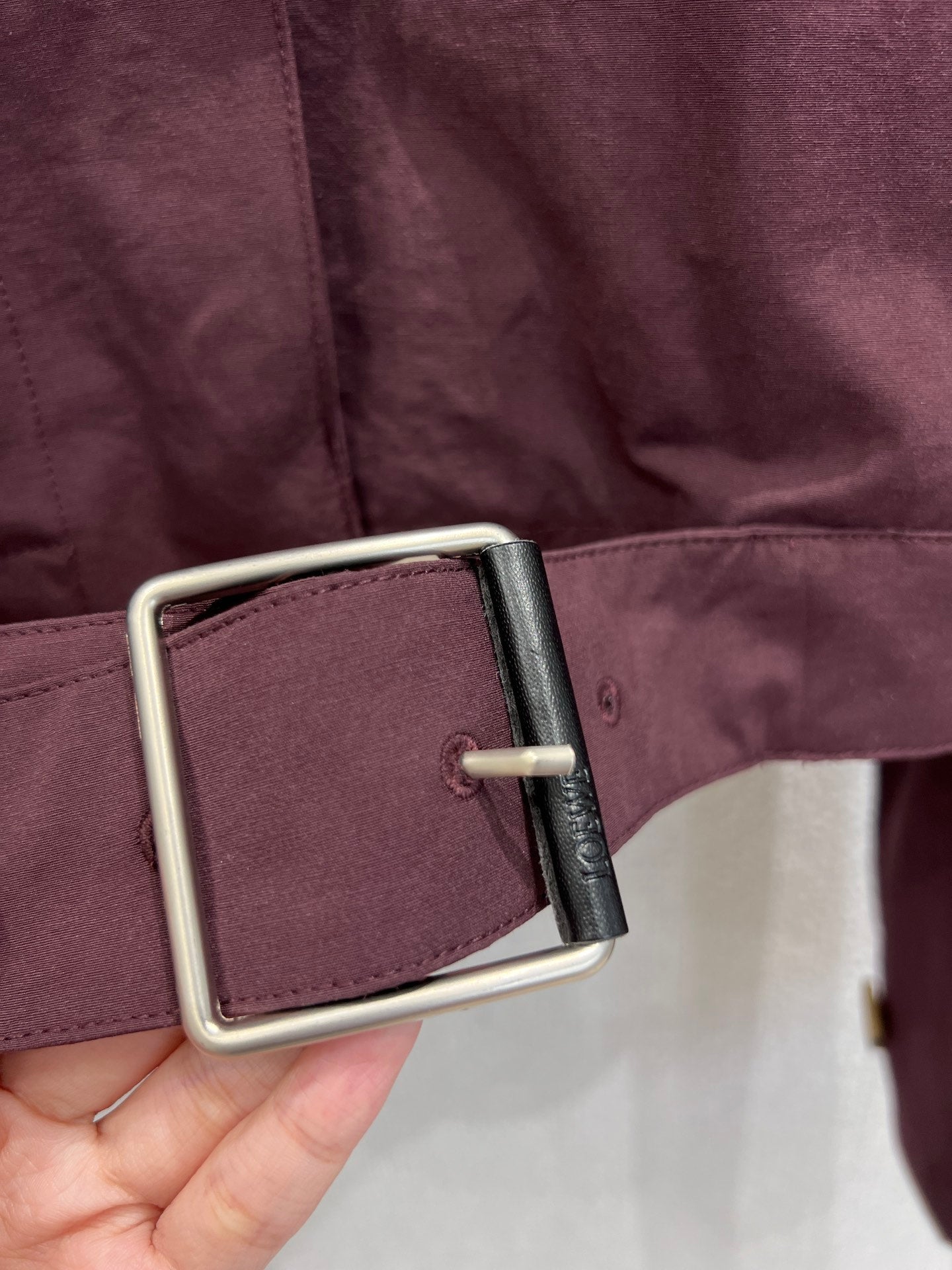 Loewe 25 Stand Collar Short Trench Coat Burgundy Red Cotton Nylon 224272