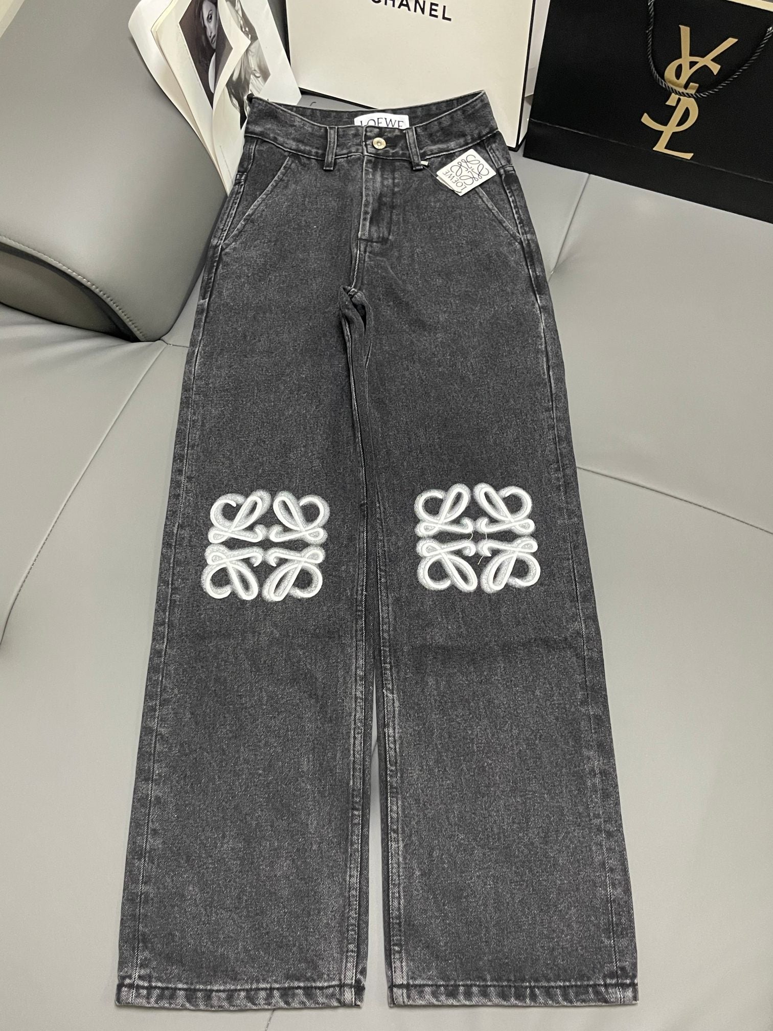 Loewe Wide-leg Straight-leg Pants Black Cotton
