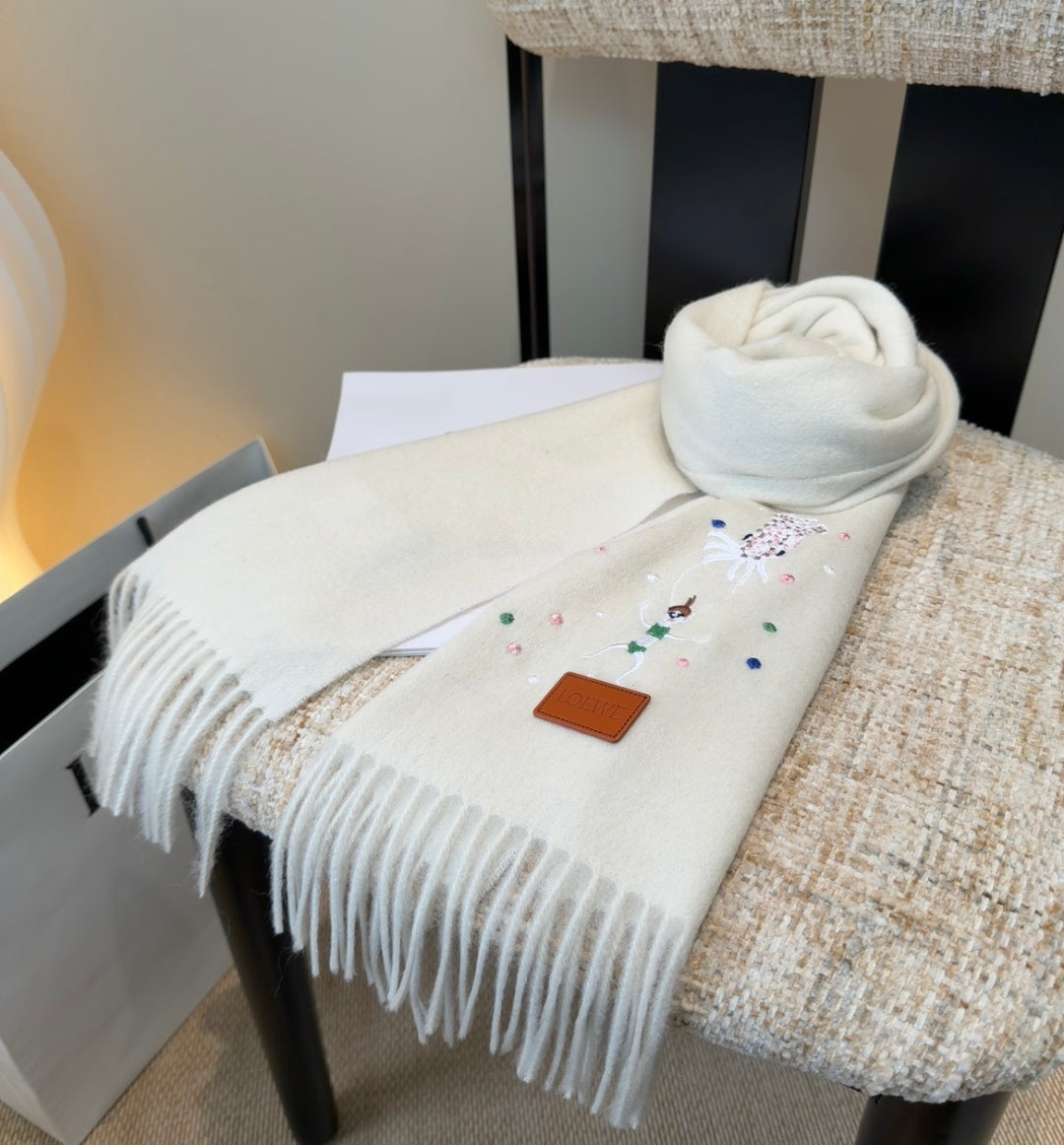 Loewe Scarf 180CM Ivory Beige Cashmere 969482