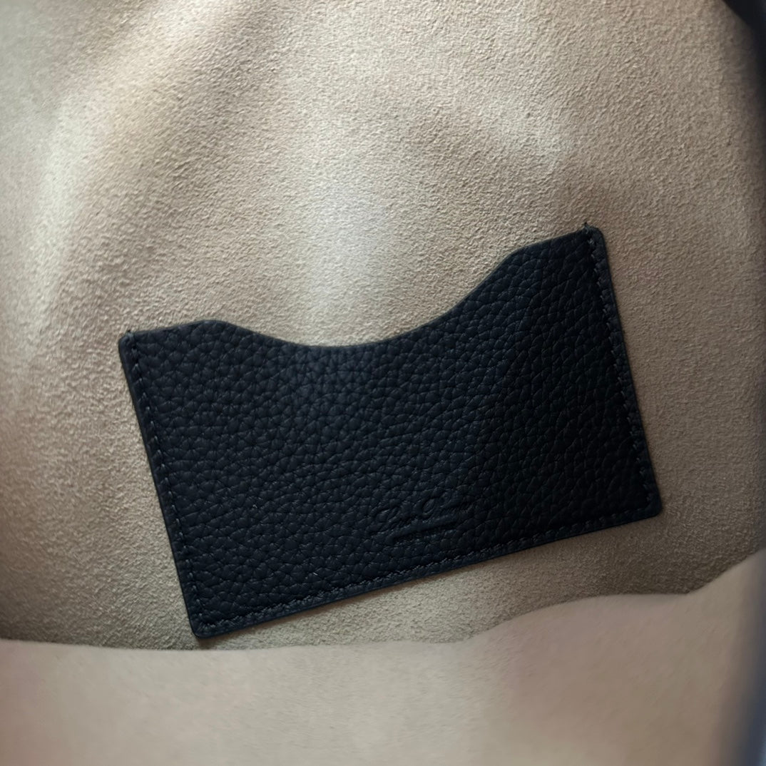 BOBBIN SHOULDER BAG 32 IN PRUSSIAN BLUE MIX BLACK CALFSKIN WITH GOLD HARDWARE