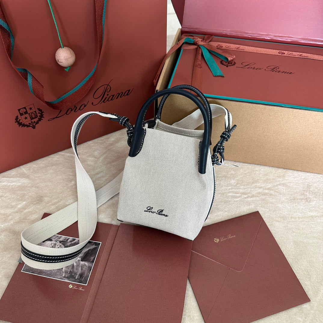 MICRO BALE BAG IN WHITE CANVAS AND BRONZE BROWN CALFSKIN