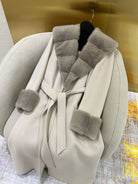LP 25 Deep V-neck Long Coat Beige Cashmere Fur 303962