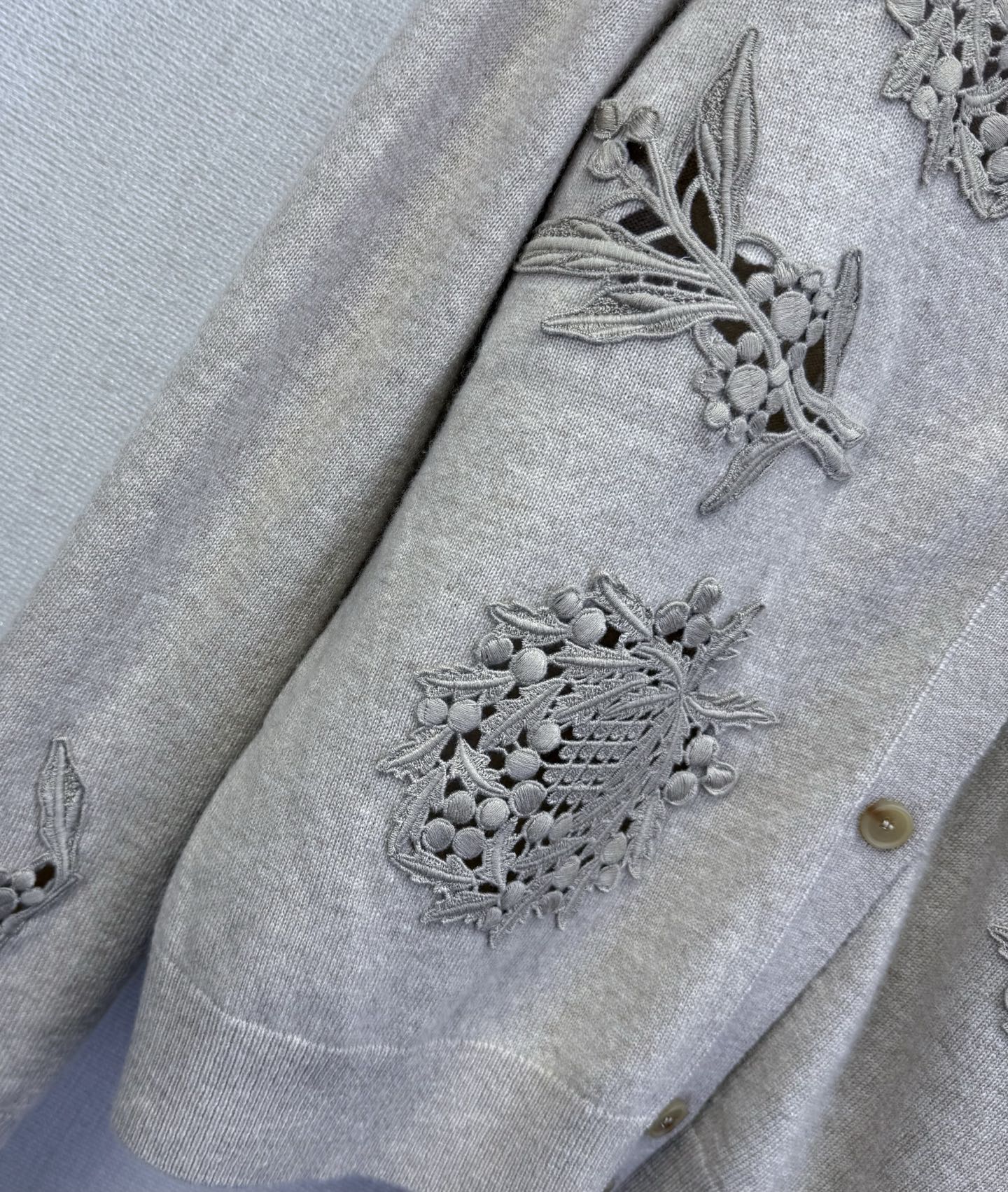 LP 25 Embroidered Floral Pattern Hollow Cardigan Gray Cashmere 315858
