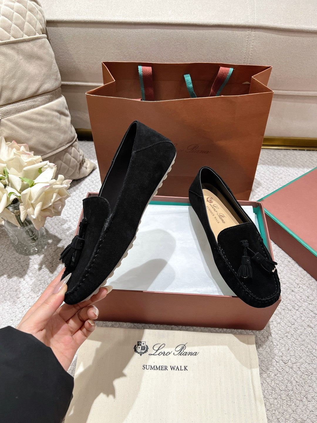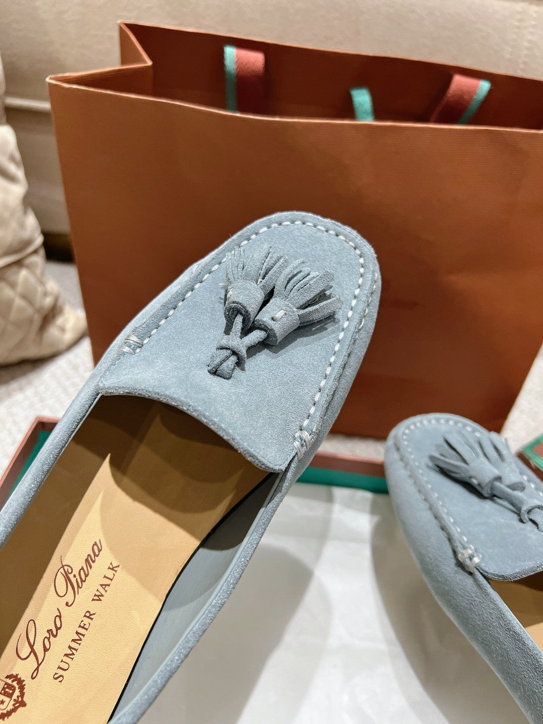 Loro Piana Light Pink Suede Summer Charms Walk Loafers