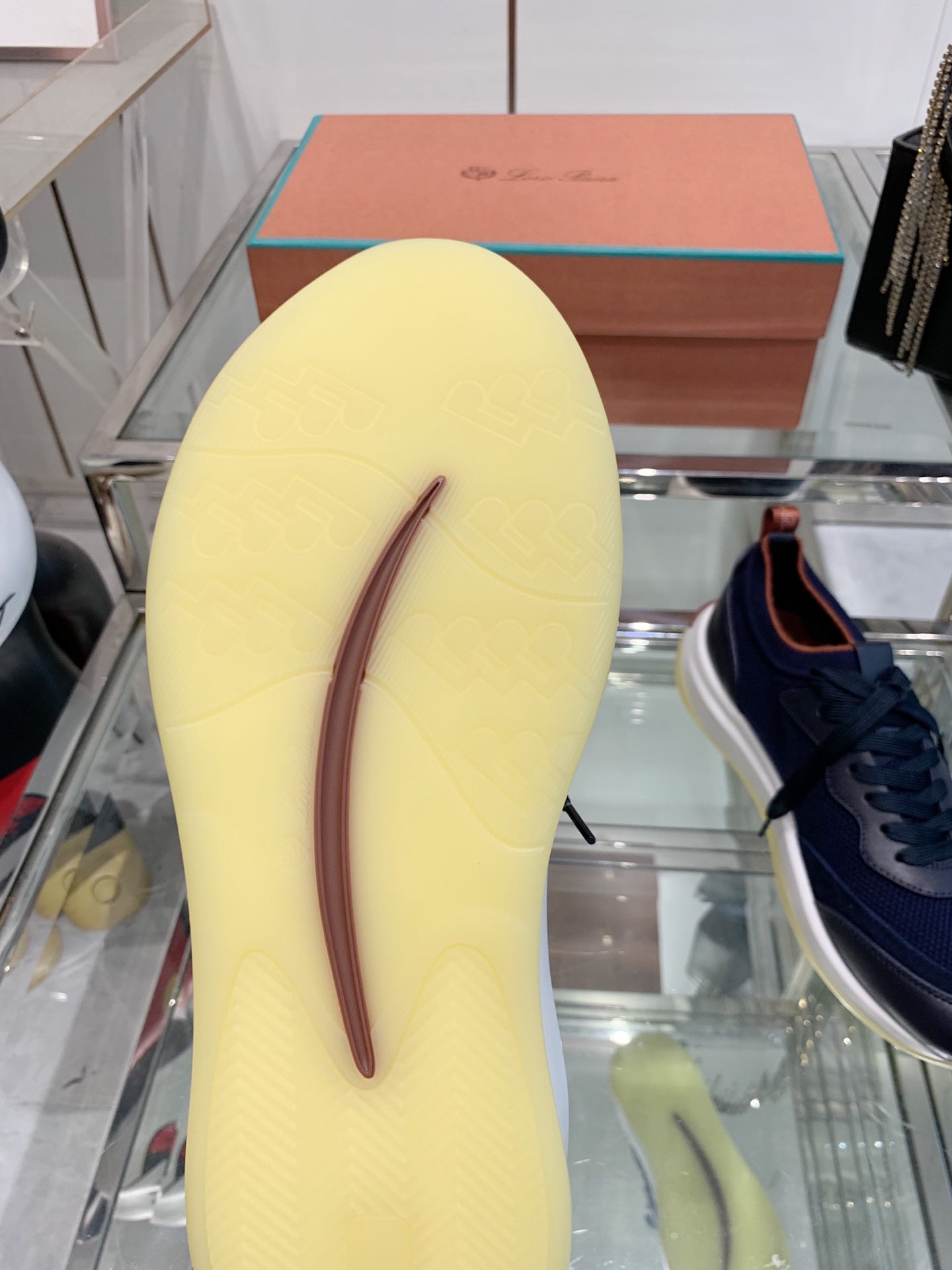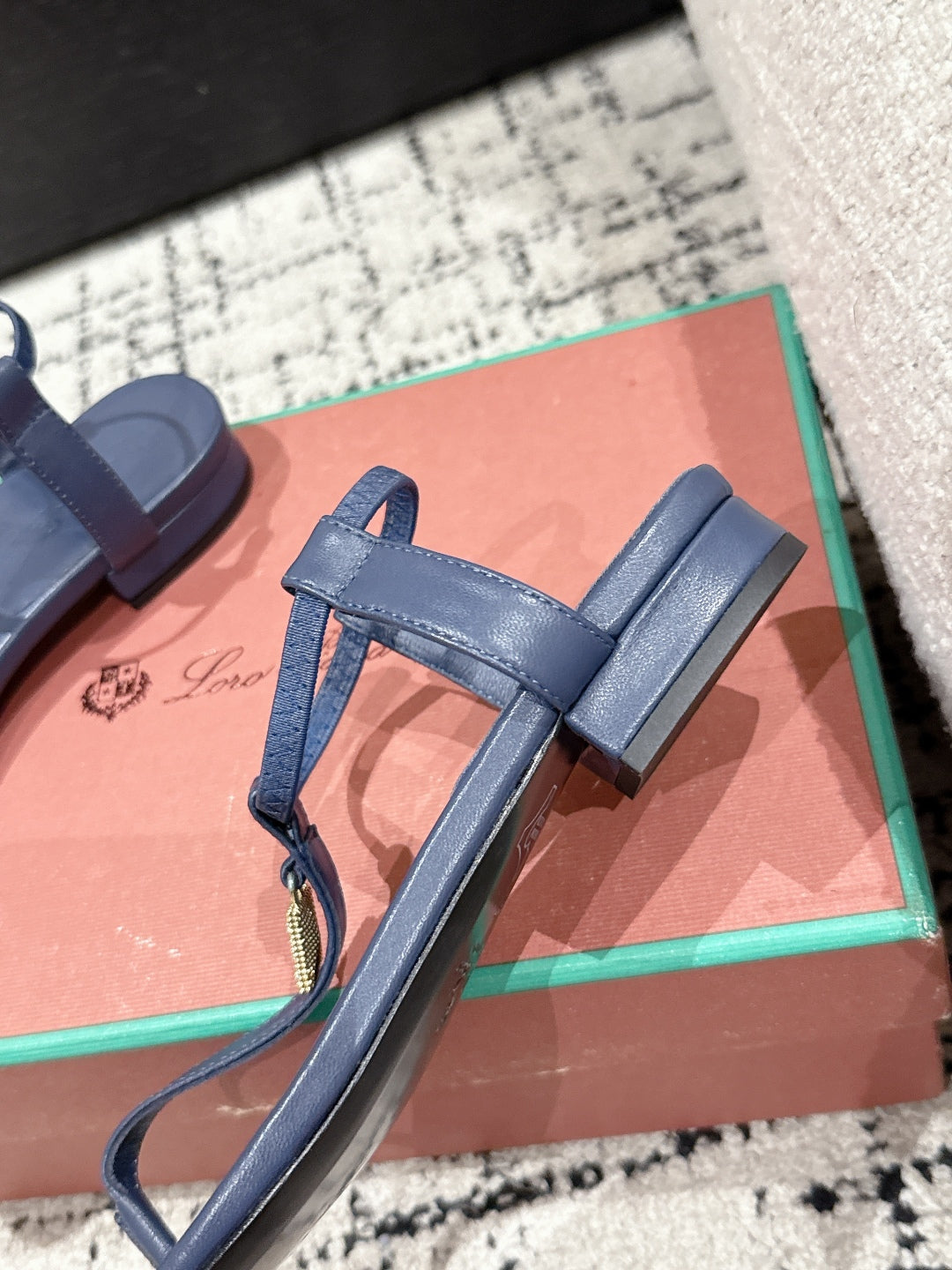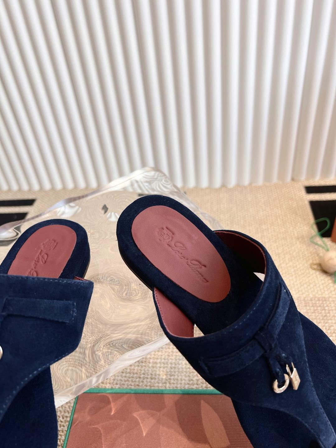 Loro Piana Navy White Suede Charms Walk Flat Mules