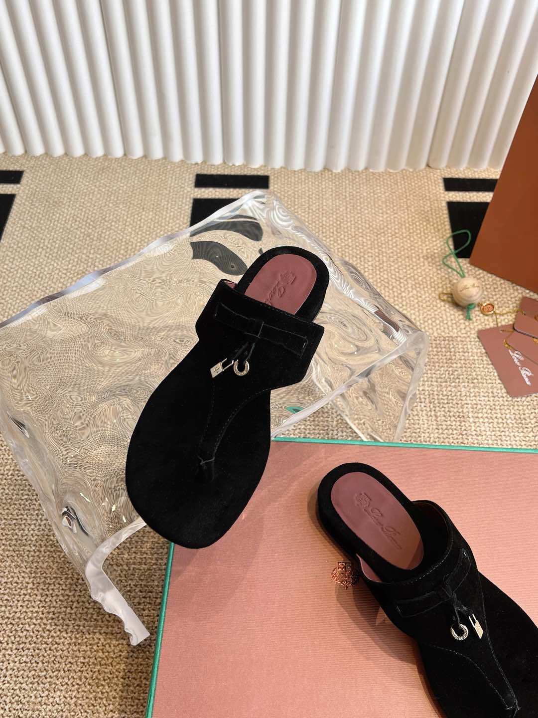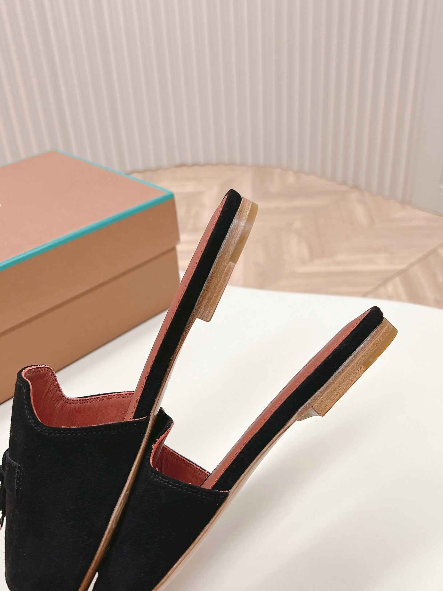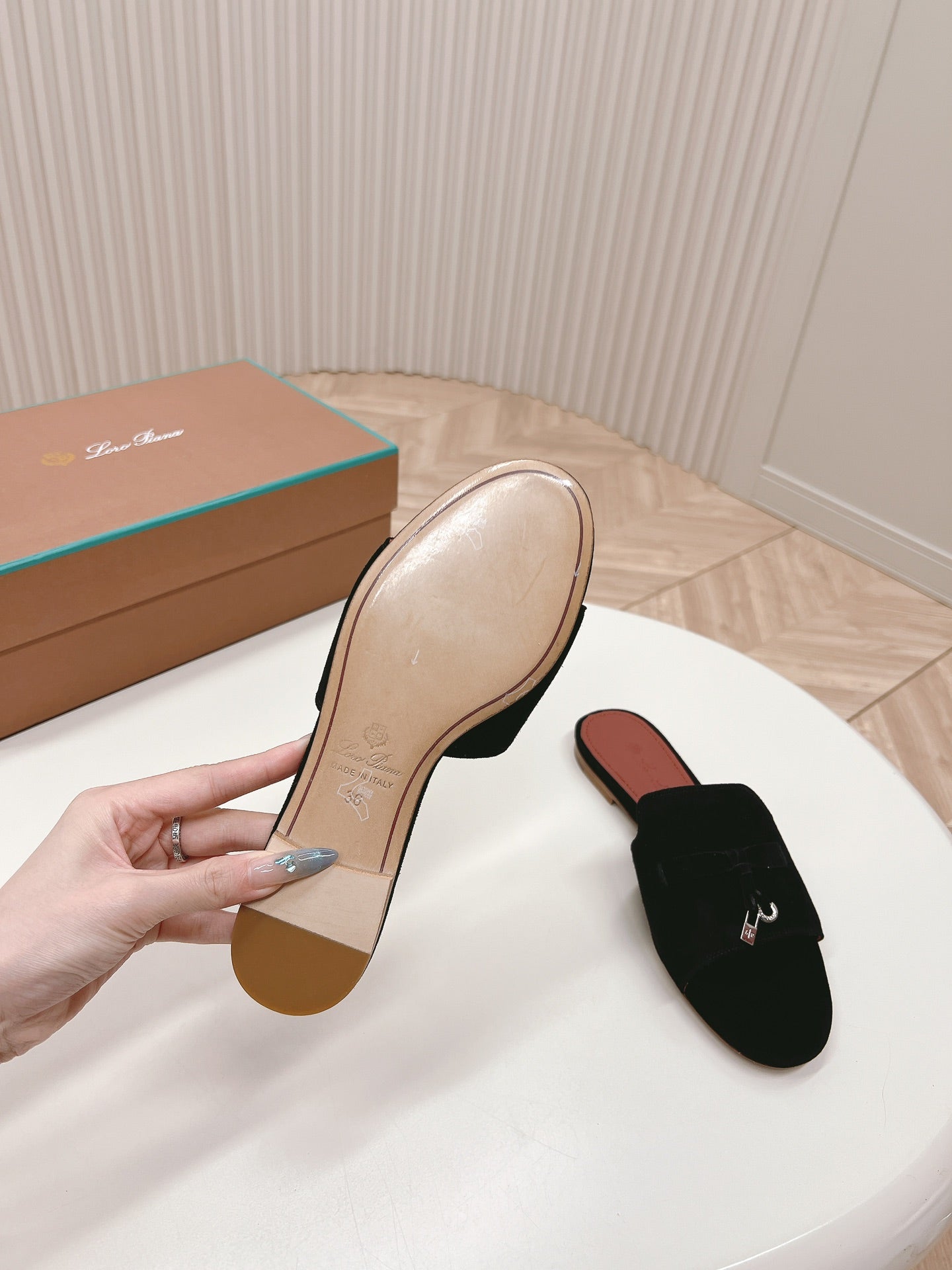 Loro Piana Grey Black Suede Charms Walk Flat Mules