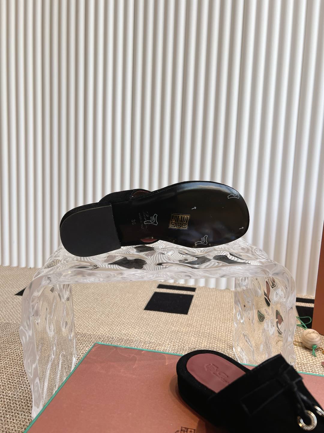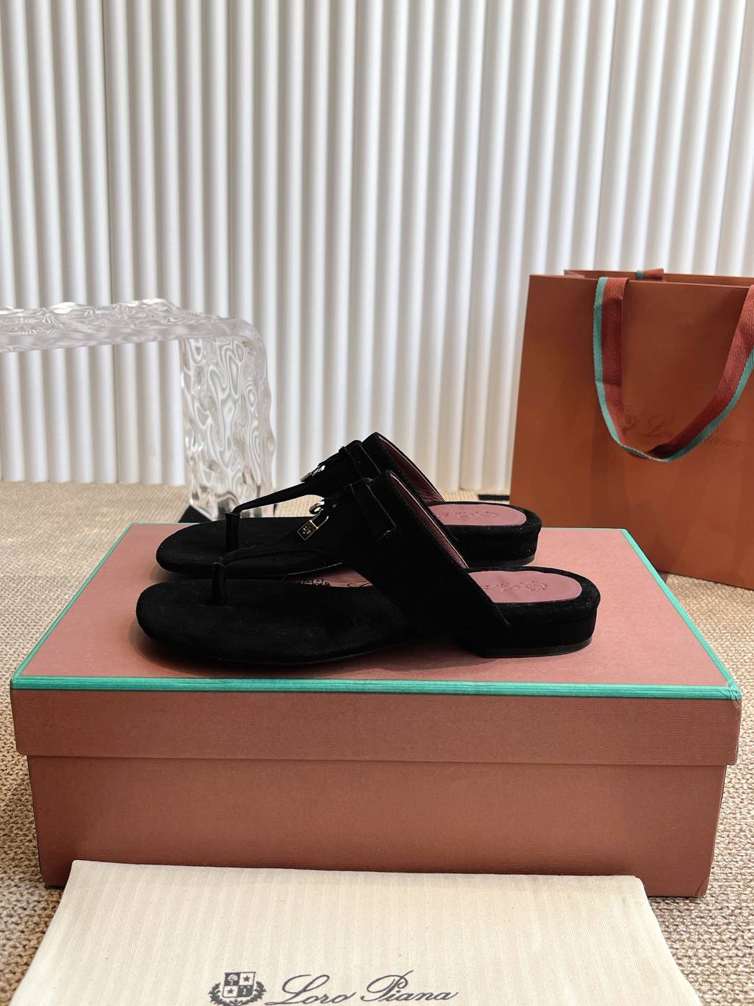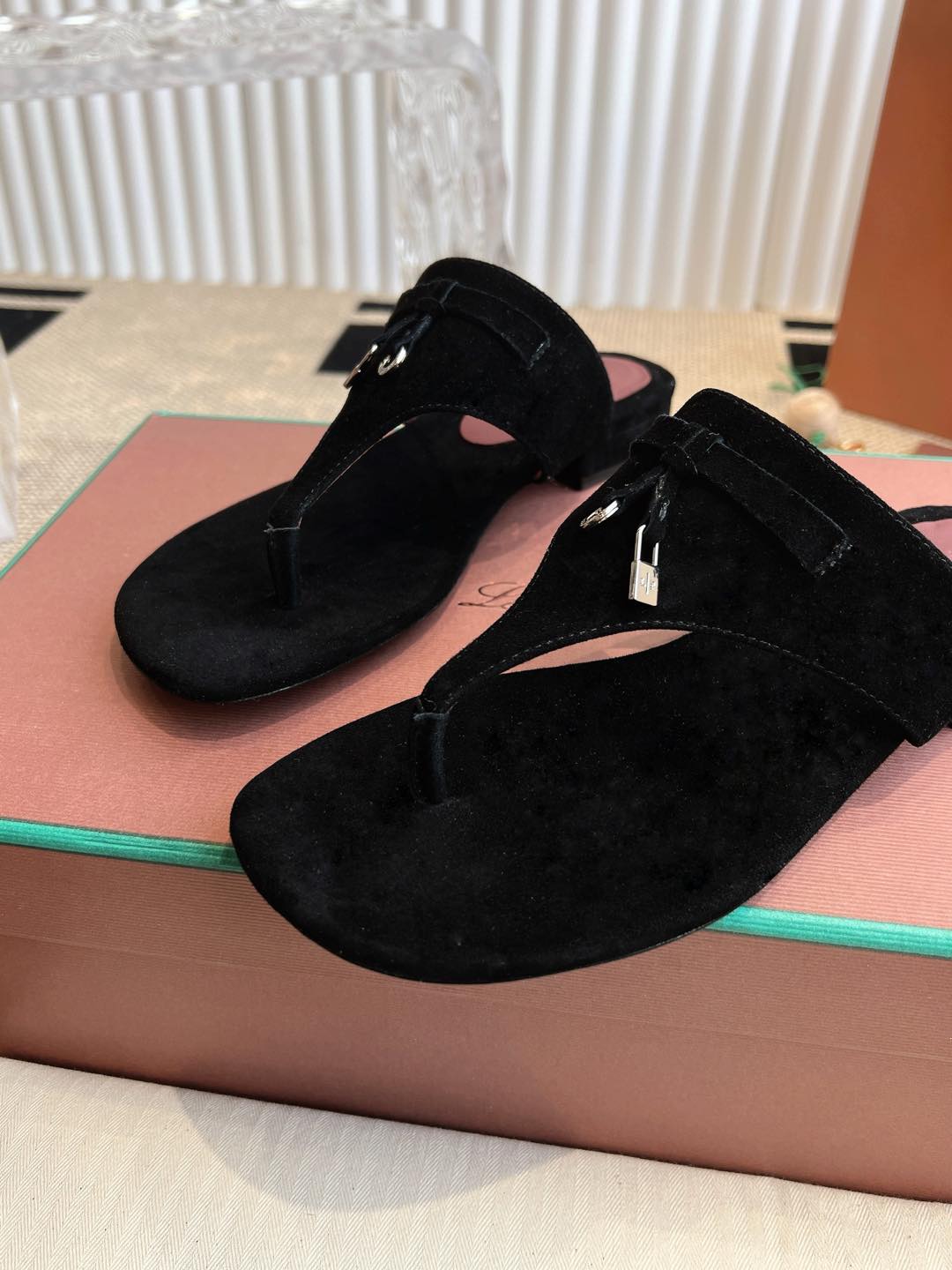 Loro Piana Grey Black Suede Charms Walk Flat Mules