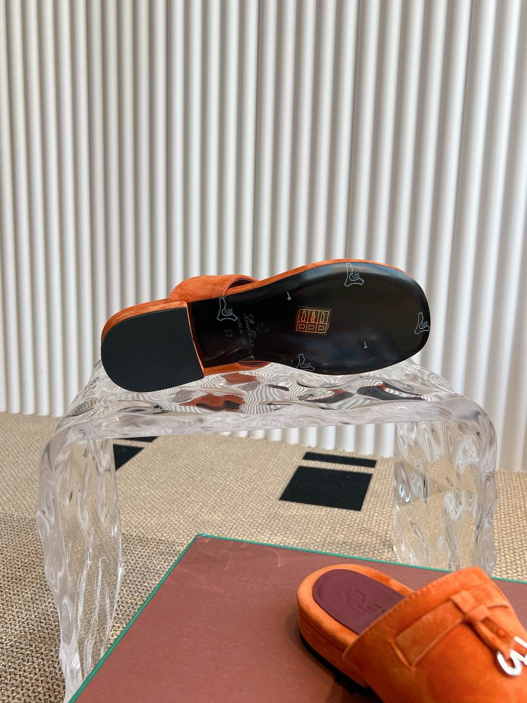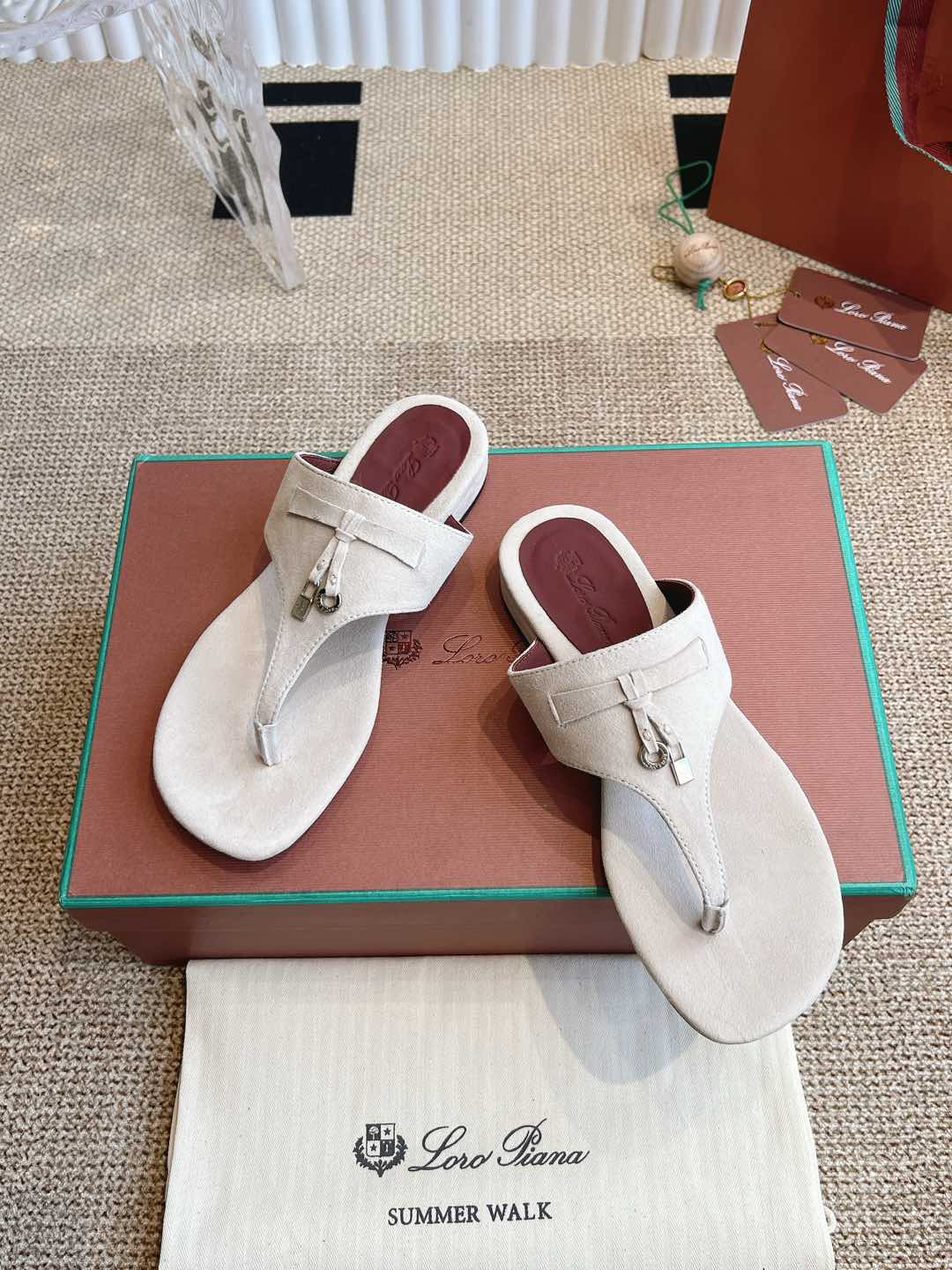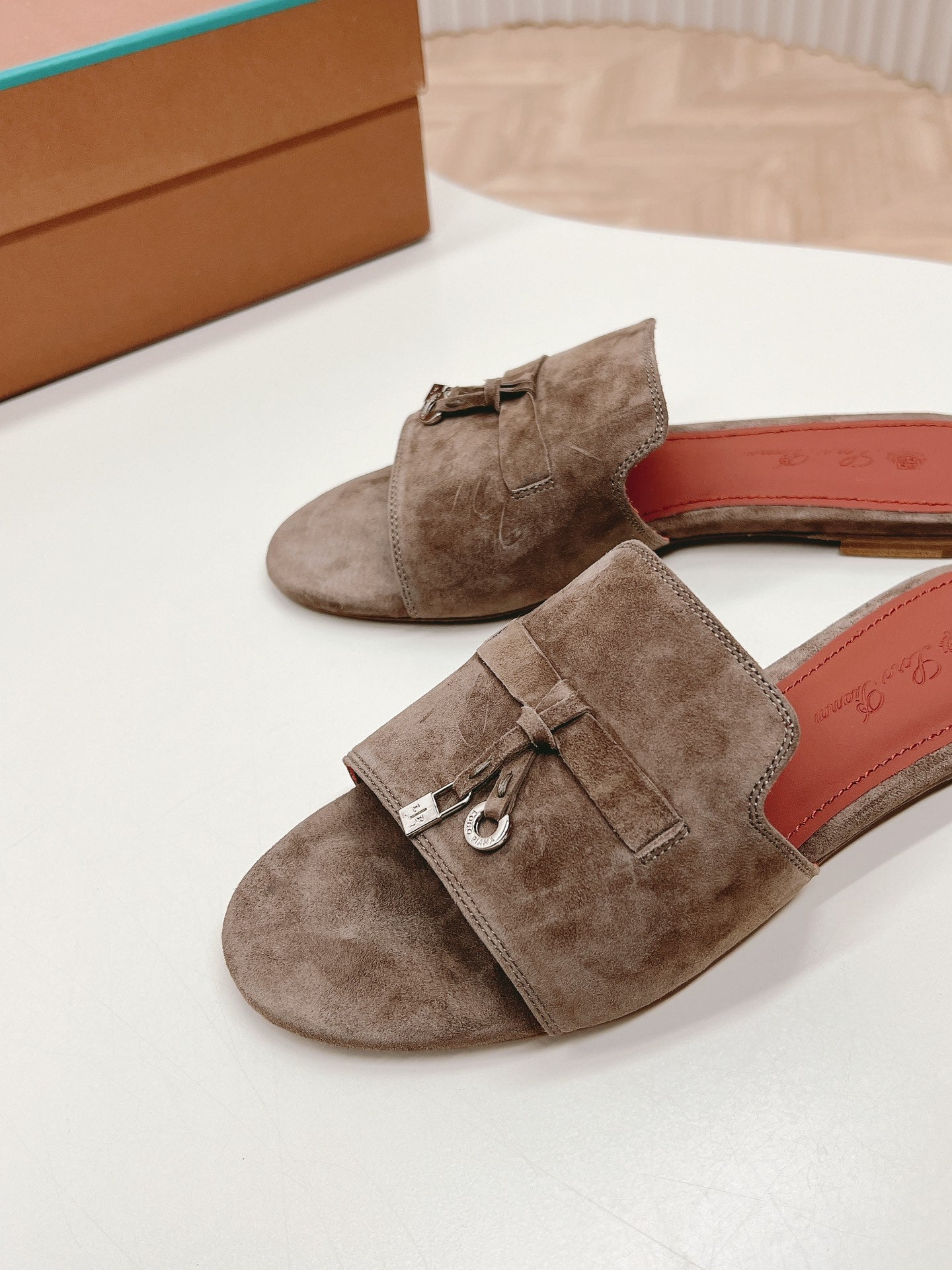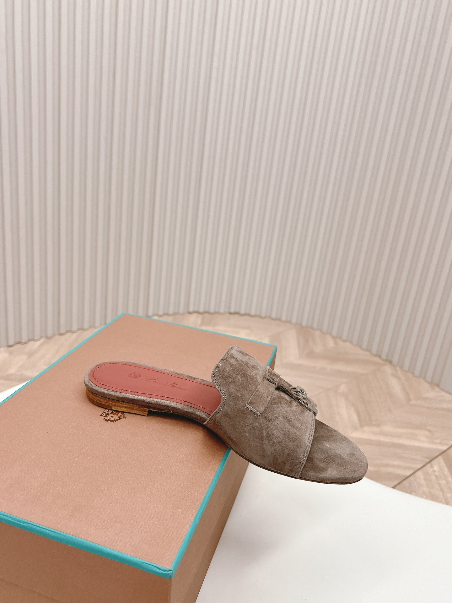 Loro Piana Beige White Suede Charms Walk Flat Mules