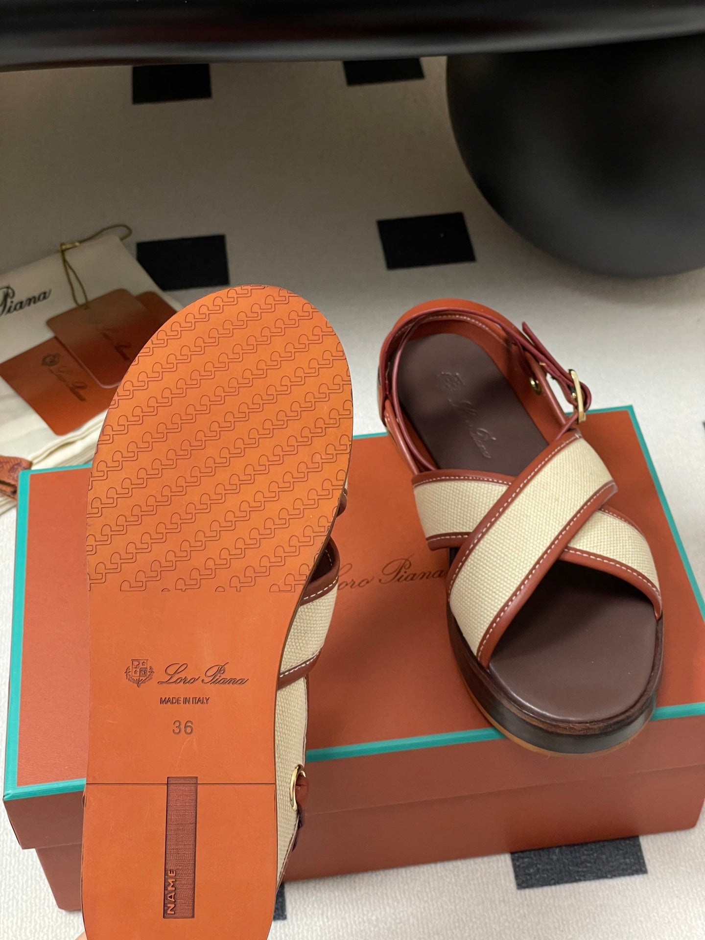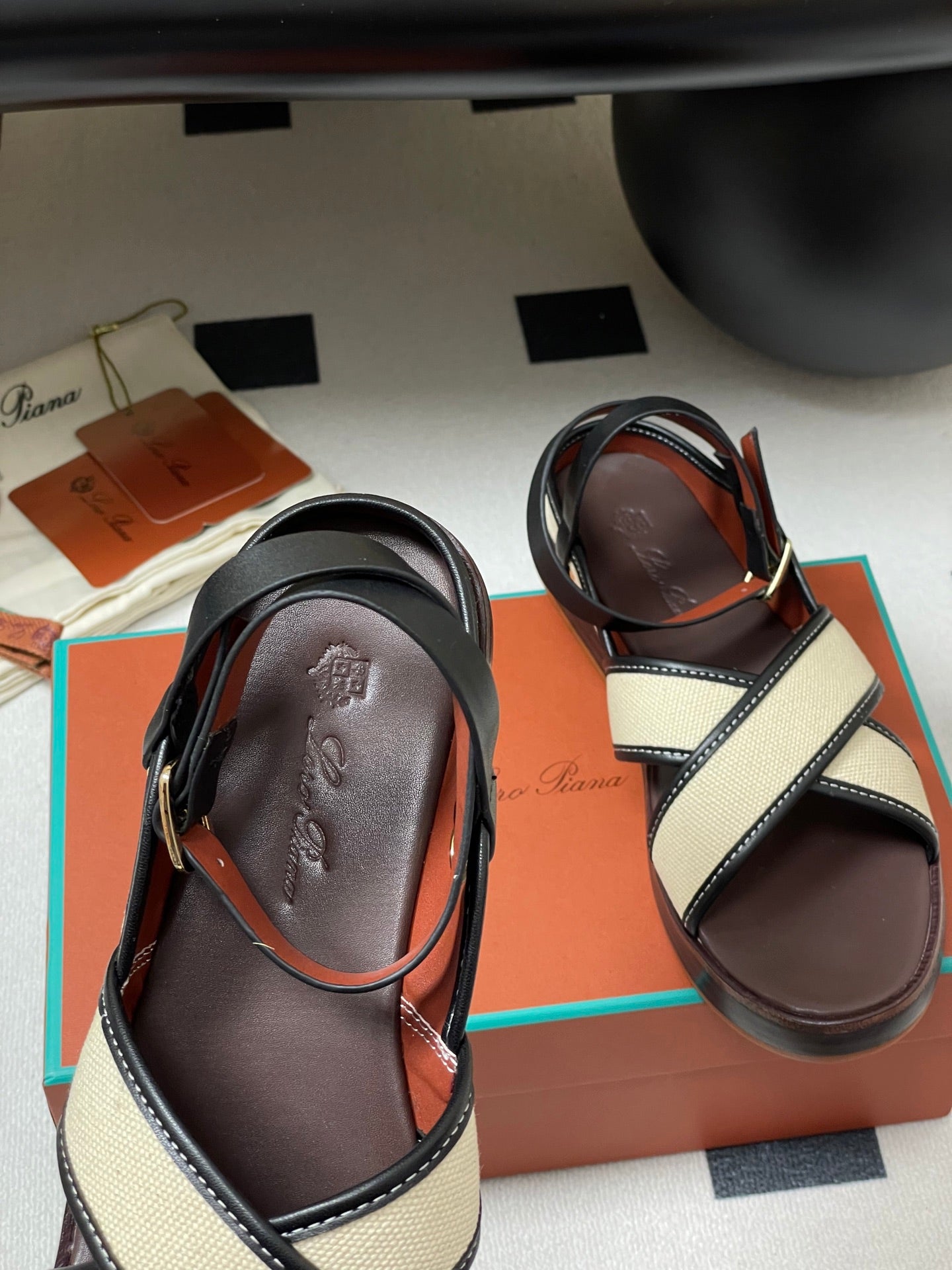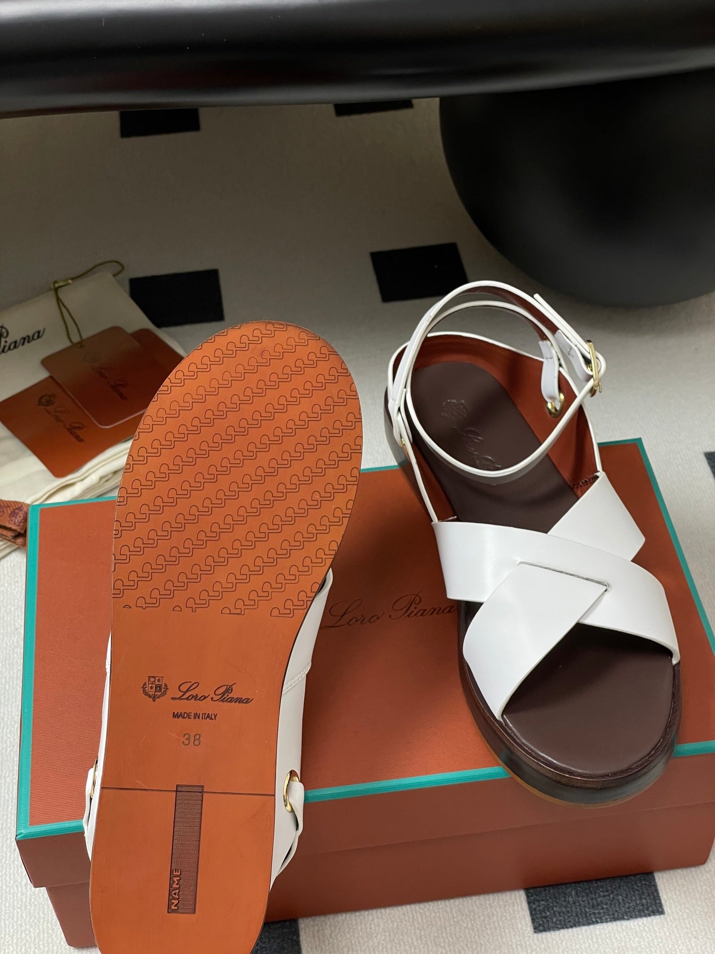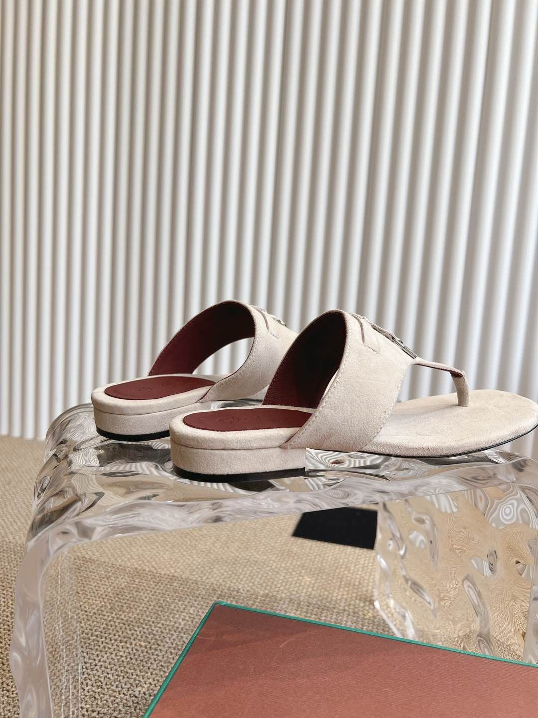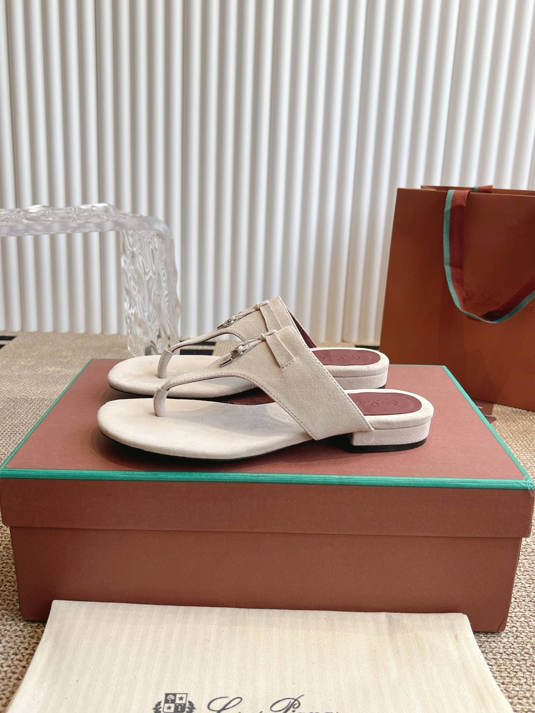 Loro Piana Beige White Suede Charms Walk Flat Mules