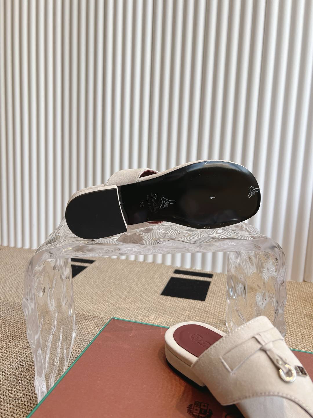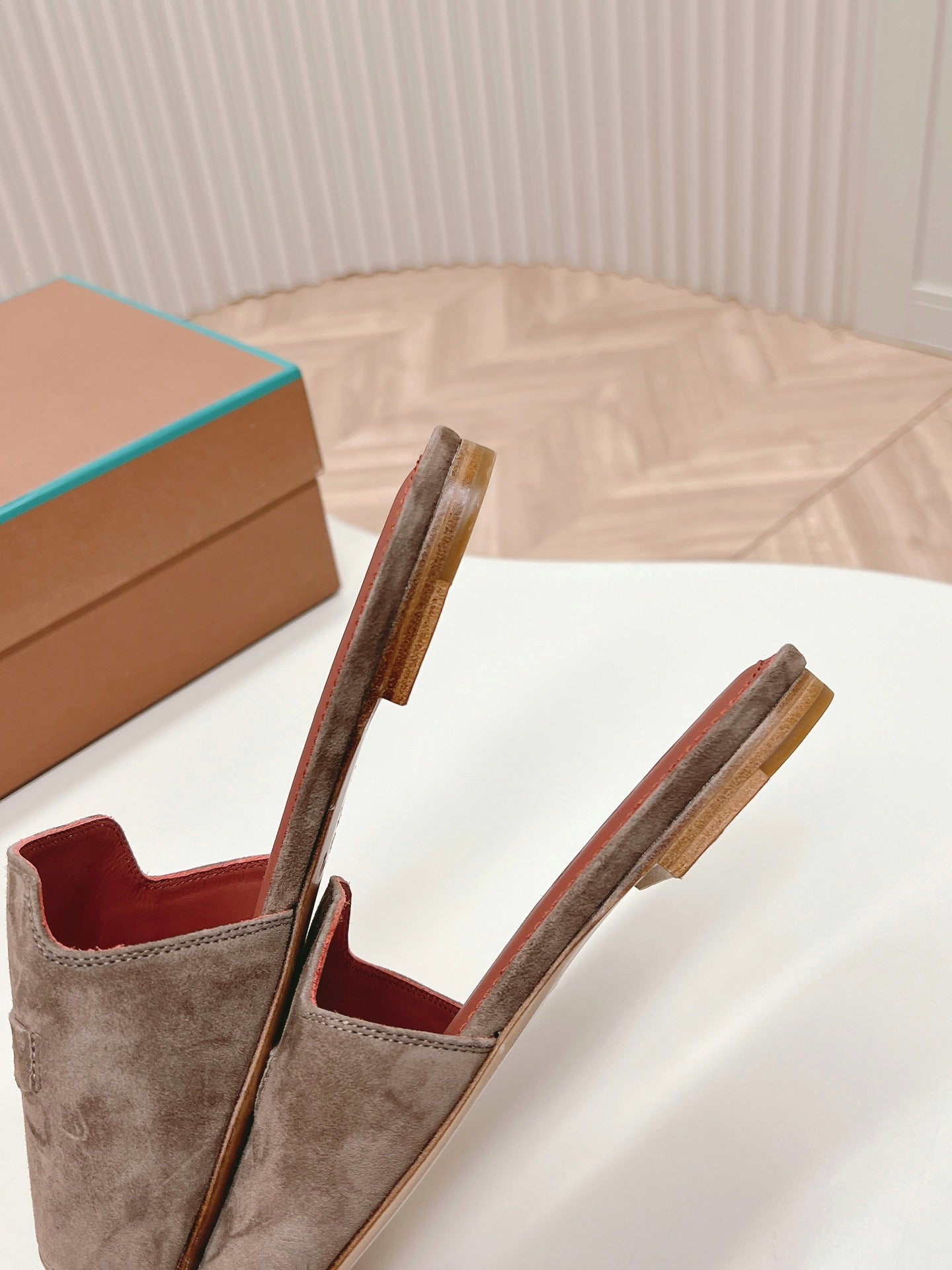 Loro Piana Grey White Suede Charms Walk Flat Mules