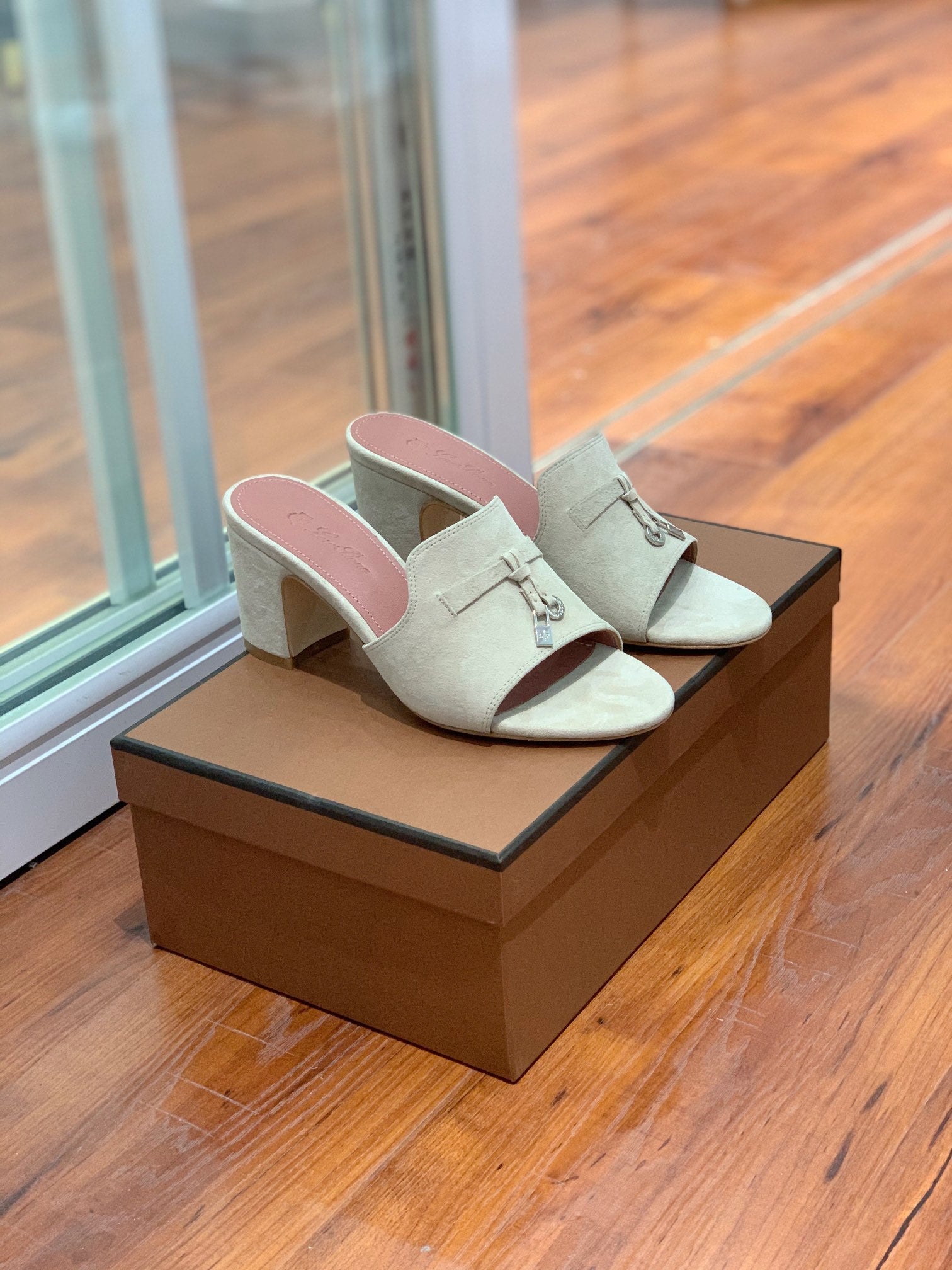 Summer Charms Mules 80 Taupe Suede Pink Lambskin