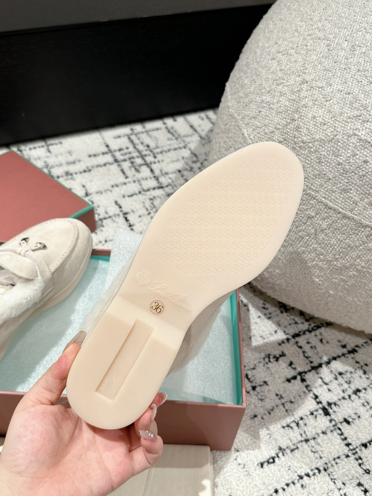 Loro Piana Beige White Suede Charms Walk Flat Mules